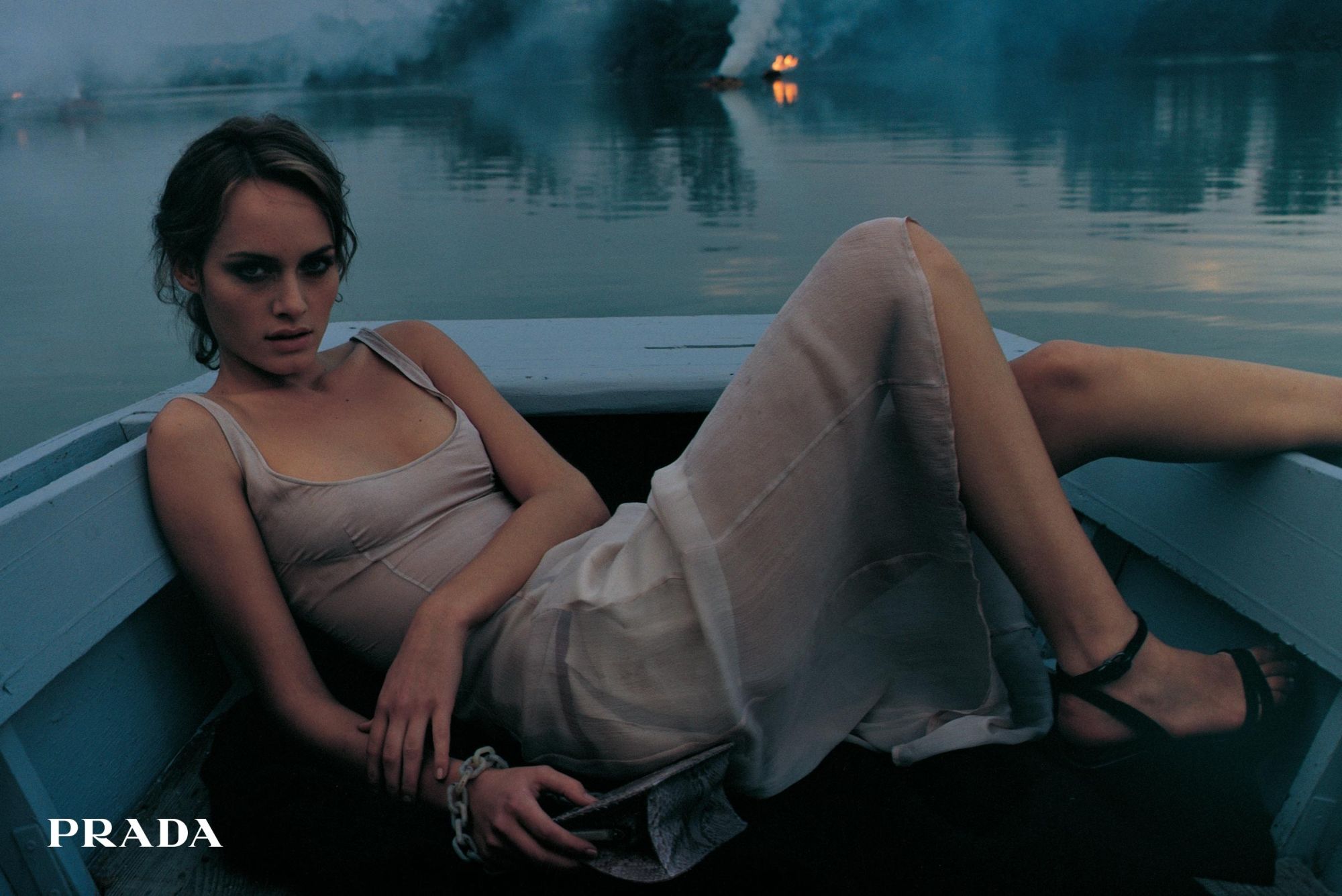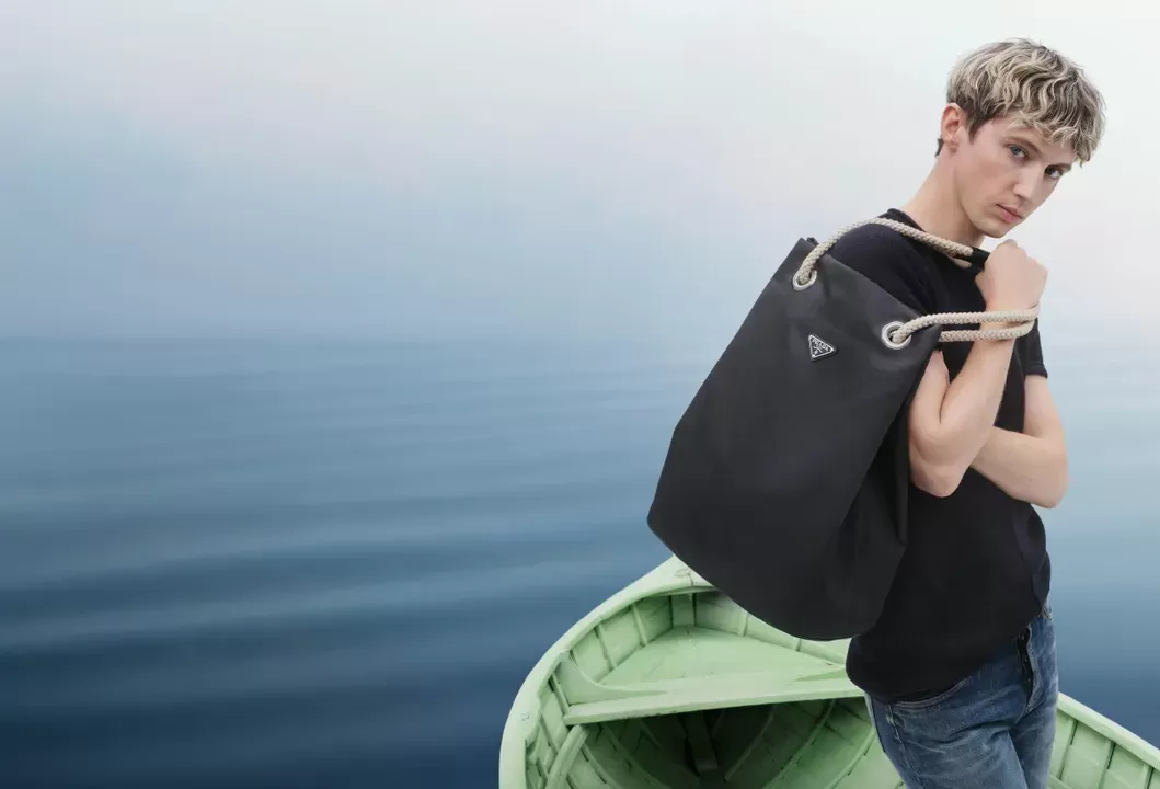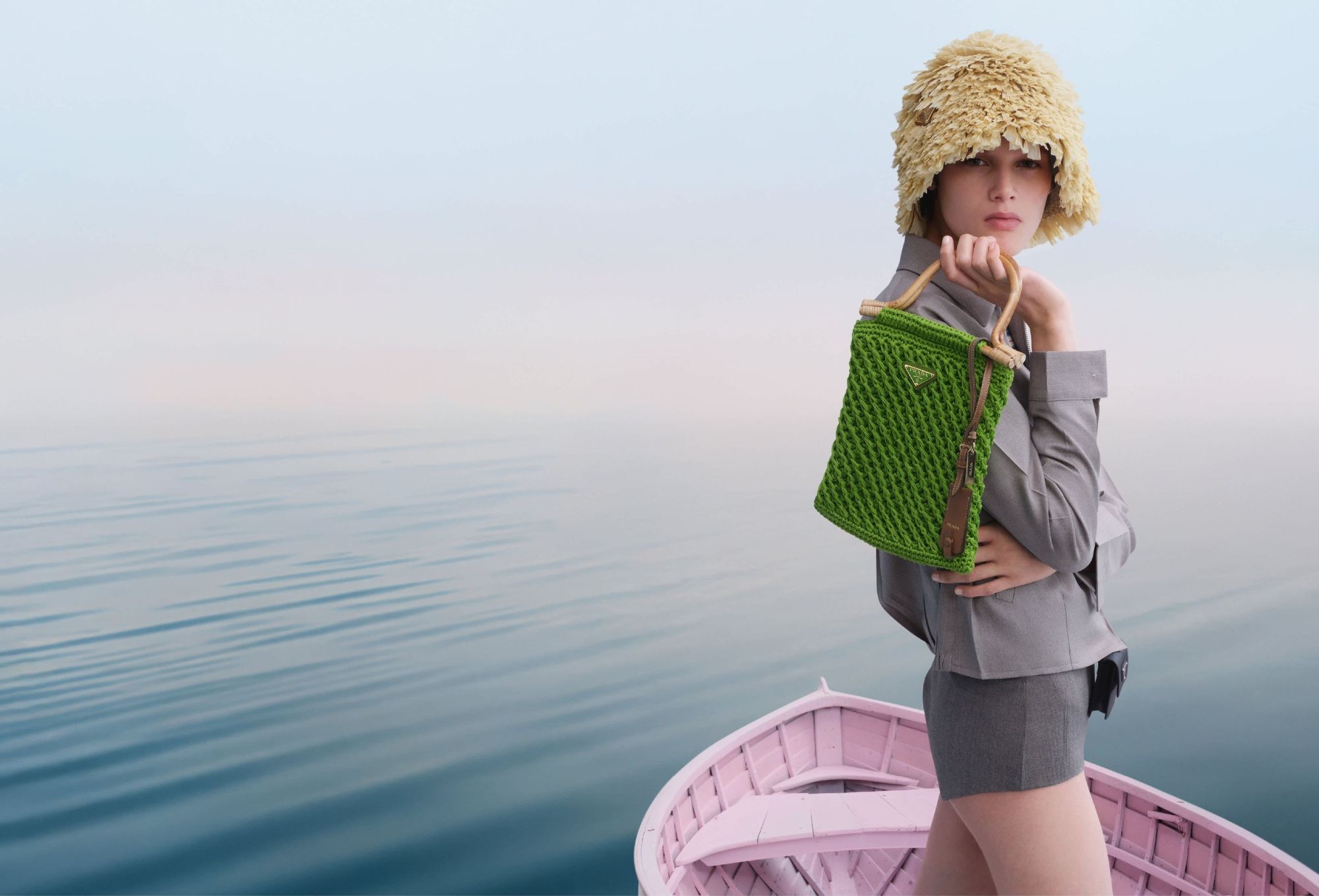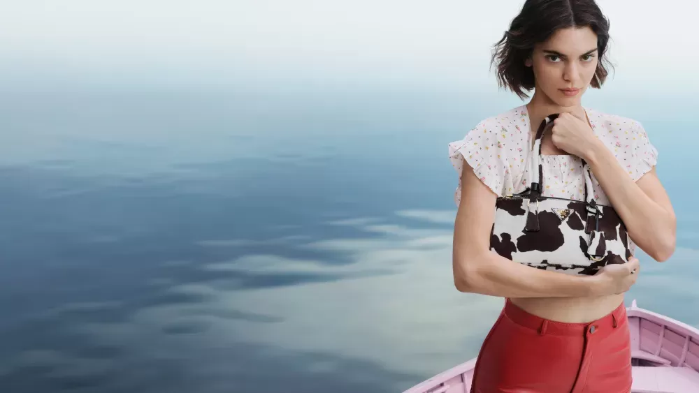 In 1997, Prada had already made the boat the central motif of its Fall/Winter campaign, immortalized by British photographer Glen Luchford. In front of the camera, model Amber Valetta seems to flee the chaos in the background aboard a makeshift boat. Shot on a privatized Tiber river for the occasion, the campaign exudes a dramatic tension, echoing the behind-the-scenes scale of the shoot. Two decades later, the motif reappears in a very different context. Photographed by Oliver Hadlee Pearch under the artistic direction of Ferdinando Verderi, the series features a dream cast. One after another, Hunter Schafer, Julia Nobis, Kendall Jenner, Lina Zhang and Troye Sivan sit in pastel-colored boats on a barely rippled sea. The horizon? Nonexistent. Water and sky merge into one. Stripped of its oars, the boat becomes a symbol of surrender, of ultimate freedom. By choosing the boat—the most basic form of a vessel—the Italian house creates a striking contrast with the silhouettes, sometimes minimalist, sometimes sophisticated. Like a ship, fashion takes us to unsuspected elsewheres.