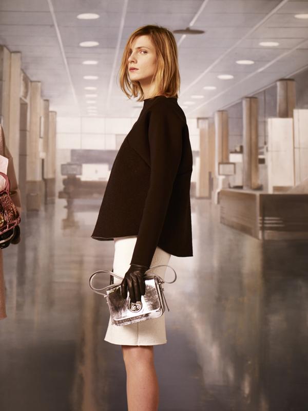 Accessories are bicolor black and white ankle boots and gloves, clutches and bags in the collection's colours, sometimes metallic with a drop lock.
