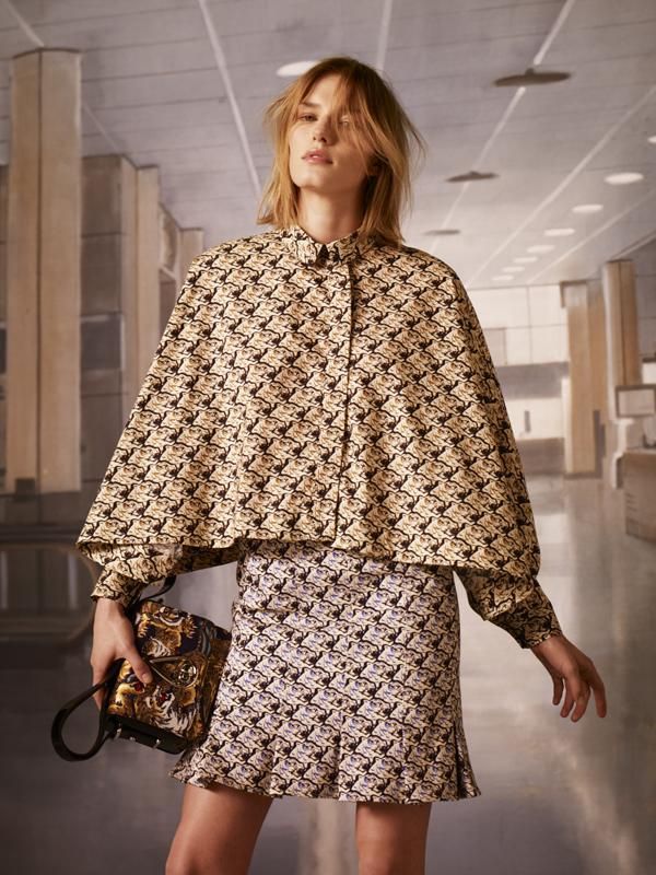 Prints and colours are very strong and vibrant: vivid red, strong black and white on the one hand, pale blue and pastel pink on the other. In the same way, creamy clouds and floral prints are opposed to ferocious tigers, dragons and trompe l'oeil pattern. All this marries very well with textures: delicate quilted satin goes with shearling, printed denim, neoprene and nubby wool without losing armony or coherence with cuts.