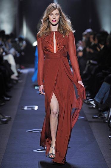 Autumn Furstenberg will not be gray, dull and boring. Life for her is a party! On the catwalk overlooking the retro style 70's, with its flared pants, the dizzying necklines, the belts, the red velvet and the door in the chest, especially that we find in many models in the collection, especially in dresses days with optical prints. Diane plays with materials, overlapping them, fills them with light, transparent, gold and silver, suggesting a look glam rock.