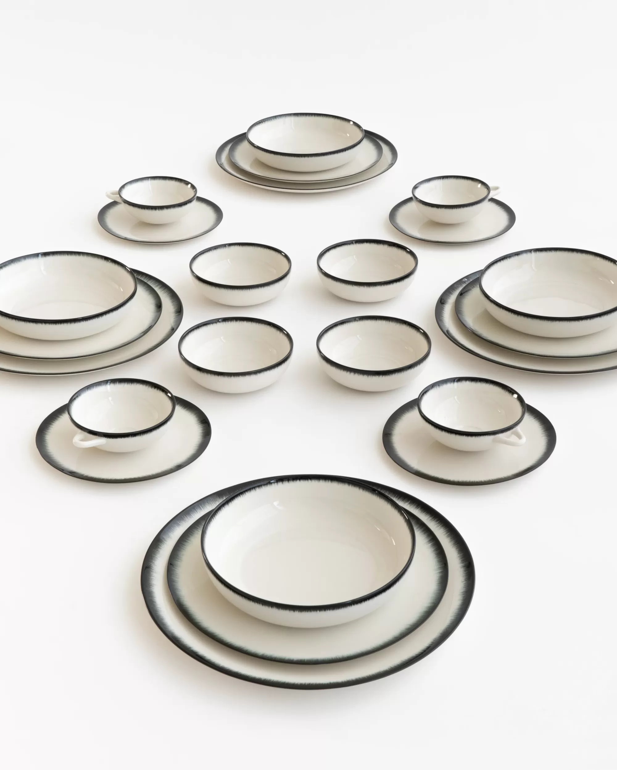 After stepping away from fashion in 2014, Ann Demeulemeester found a completely new form of aesthetic expression in the space of the dining table. In 2019, she launched a collaboration with the Belgian brand Serax, creating the collections Dé and Ra, hand-painted porcelain tableware, cutlery and glasses where minimalism and craftsmanship evoke the poetics of her fashion. In 2022, the partnership expanded to furniture, lamps, and home decor. This work was born precisely on the boundary between food and design and transforms the table into an intimately ritual and sensorial scenography. The project, strictly monochromatic and sculptural, confirms her radical sensitivity.