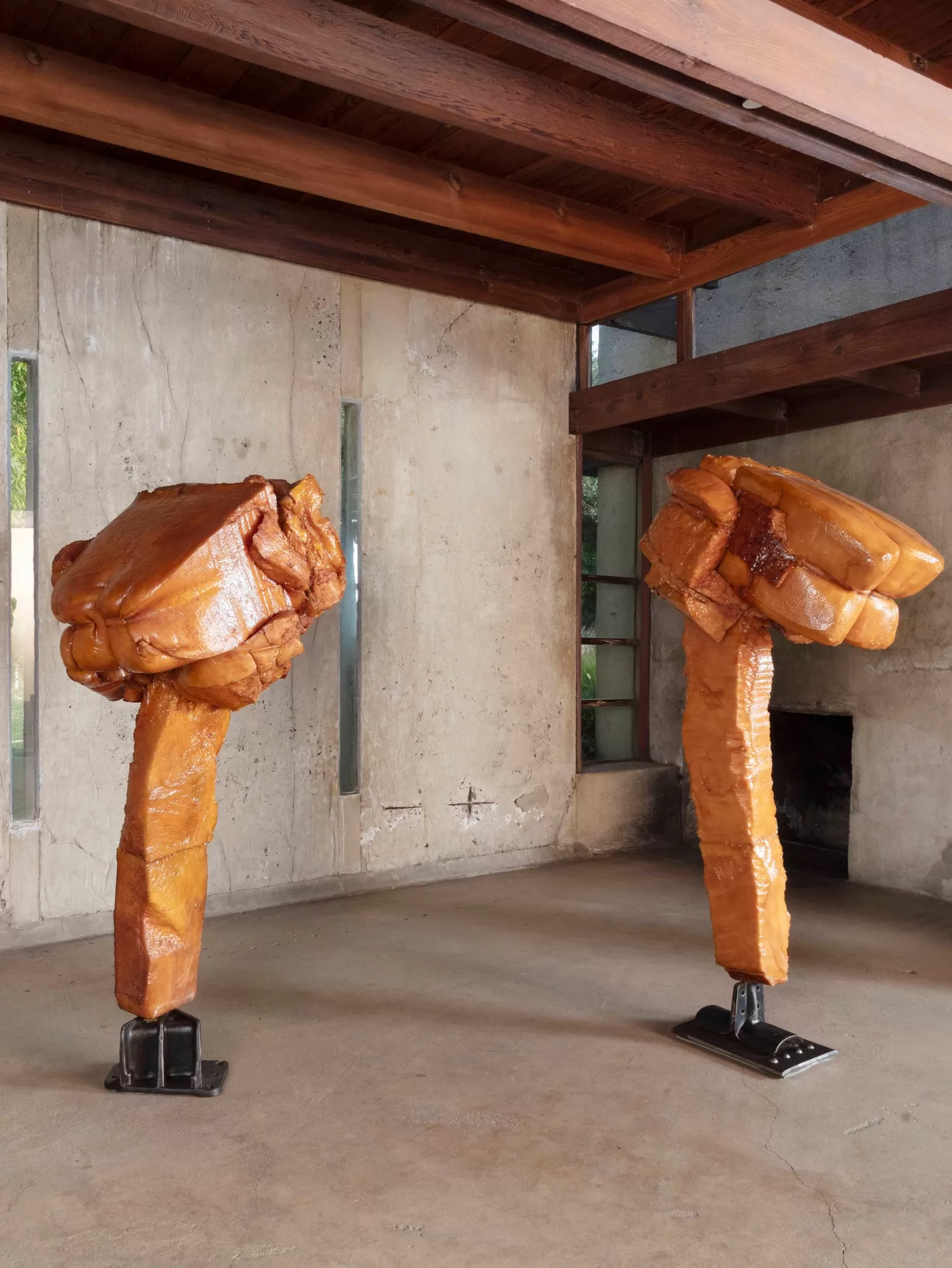 Helmut Lang is the first name that comes to mind when thinking of minimal radicalism in 1990s fashion, that axis that united everyone from the old continent to the streets of New York. Since 2005, he has been devoted to his artistic practice, which moves between installations and sculptures. His relationship with art—serious art—is very close and goes hand-in-hand with his personal and professional life: one of his best friends, as soon as he moved to New York in 1997, was Louise Bourgeois, who wore Helmut Lang pieces for the rest of her life, including the iconic white shearling coat immortalized in numerous portraits. The bond between Lang and art is visceral; just think of his long collaboration with Jenny Holzer for the New York store and advertising campaigns, and their sensory work exhibited together at the 1996 Florence Biennale curated by Germano Celant. His manipulations, which he experimented with almost in parallel to his design work, are material, powerful, and evoke Burri and the worn object. In recent years, his work has been exhibited at international institutions such as the Sandretto Re Rebaudengo Foundation in Turin in 2020, and in solo shows at the Sperone Westwater gallery in New York, which permanently represents him.