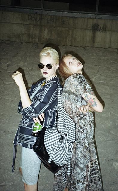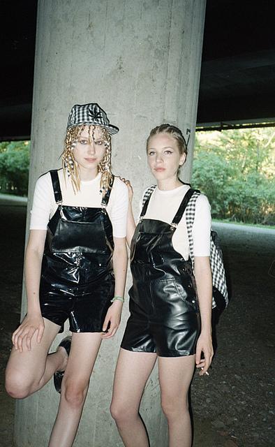 Meshit è il brand austriaco fondato nel 2009 da Ida Steixner e Lena Krampf, compagne di scuola al Fashion Institute di Vienna. Il nome scelto per la loro label deriva dal verbo “to mesh” e sottolinea la loro attenzione nel mettere insieme elementi diversi, nel combinare forme pulite e dettagli ricercati che danno vita ad un design unico. Meshit presenta una collezione estiva dichiaratamente ispirata agli anni 90, in cui lo stile grunge si unisce con quello hip hop. Ci sono salopette in pelle nera, maxi t-shirts, camicie a quadri e giacche stile baseball. Lo streetstyle è il protagonista.
