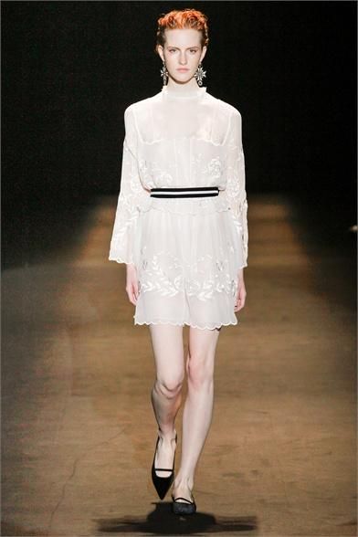 Identification and authenticity. More style and decision more truth in the clothes. The collection Alberta Ferretti fall/winter 2013-14 is the call to a style that is elegant, effortless elegance because natural instinctive and educated. «I am convinced - explains Alberta Ferretti - now the fashion needs of that authenticity that can come only from the recognisability of those offers. My fashion history is composed of chapters that speak of femininity, sensuality and lightness and on this basis. I built a collection that processes my style in a contemporary complexity that is updated in real time. And it is this call to authenticity and recognisability, concreteness, leading to the construction of an linear silhouette, developed through the construction of aircraft, light volumes, obtained with overlapping layers of chiffon. Suits, jackets and coats, built with the attention of typical Ferretti style tailoring, use performance fabrics such as velvet, silk glossy, the delicate chiffon layered, often used on tulle that imprisons embroidery. Very well calibrated colors, ranging from white and from black and grow in unusual shades of red, aubergine, purple, a delicate green cedar. Low and pointed shoes, alternate to high heels. Created to give the clothes a coherent movement with this quiet elegance, real, concrete, not shouted. Once again, effortless.