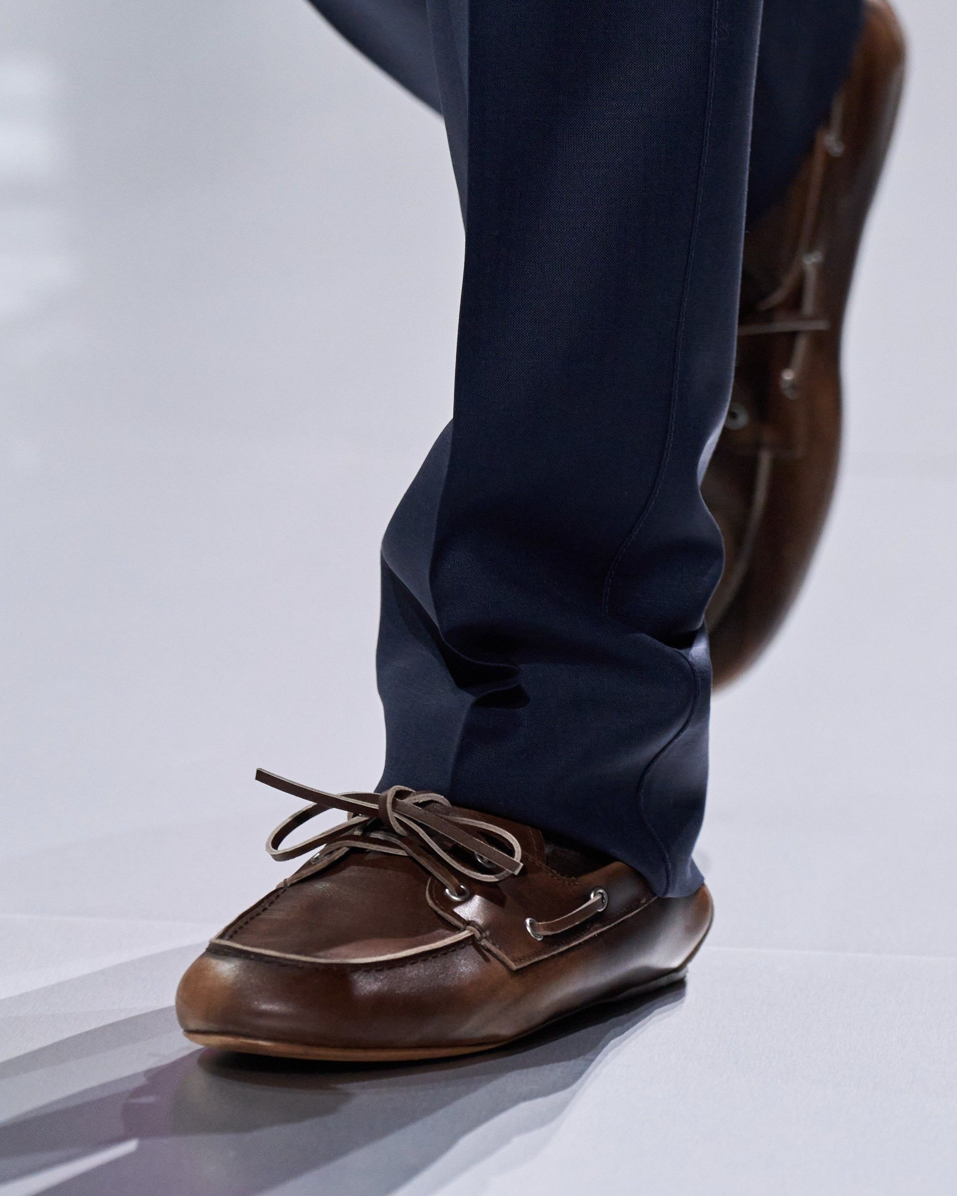 As anticipated by Miu Miu, the first signs of Fisherman Core’s rise in men’s fashion were felt in 2024, when in October of that year Drake was chosen as the cover star by the fishing magazine The Drake (which in English also means bait) – memes aside, by now we know that when a rapper embraces a trend, it’s checkmate. Afterwards, as reported by a Washington Post article, the American brand Kith collaborated with Columbia and a Japanese brand specialized in fly fishing, South2West8, on a lake-sport-inspired outerwear collection, while the brand Creek Angler’s Device continues to expand its fanbase thanks also to pop-ups in fashionable spots like New York’s Blue in Green.