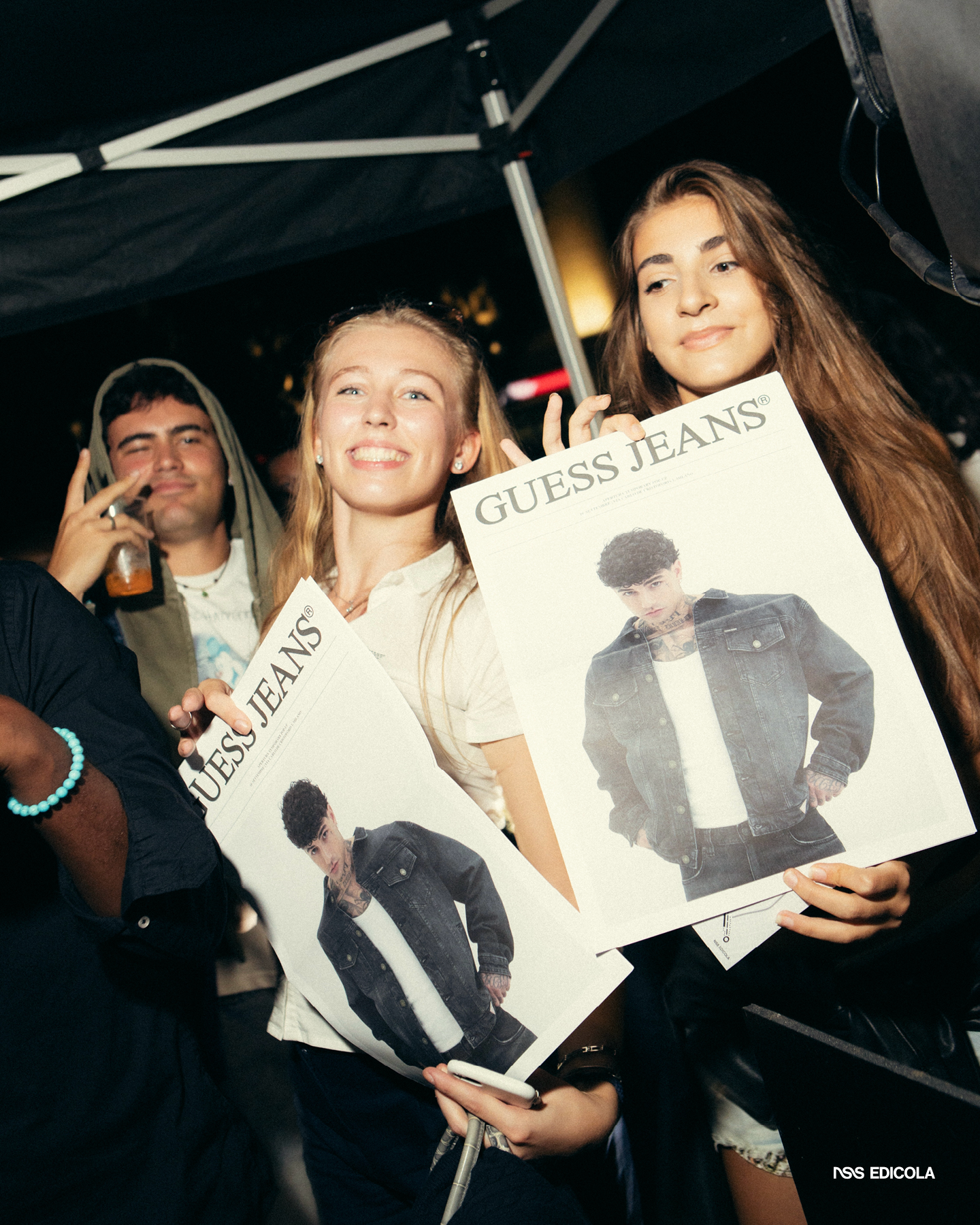 Yesterday, many fans gathered at the nss edicola in Piazza Buozzi to celebrate GUESS JEANS and their 40 years as leaders in the denim industry. The atmosphere was made even more special by the “Keep on Groovin’” DJ set with Carloalberto and Calliope, which got everyone dancing. Welcoming the brand’s community inside the nss edicola was an exclusive capsule of merch that included a limited-edition tote bag, patches, a keychain, and a newspaper telling the story of the brand up to its latest campaign with Tony Effe. After the event, guests who received a tote bag could head to the GUESS JEANS Denim Studio – Corso Comoin Via Carlo de Cristoforis 1 in Milan to show the voucher found inside it and customize their tote bag. Amid music, energy, and smiles, the evening turned into a moment of celebration and sharing that marked the beginning of a new season for the iconic brand led by Nicolai Marciano.