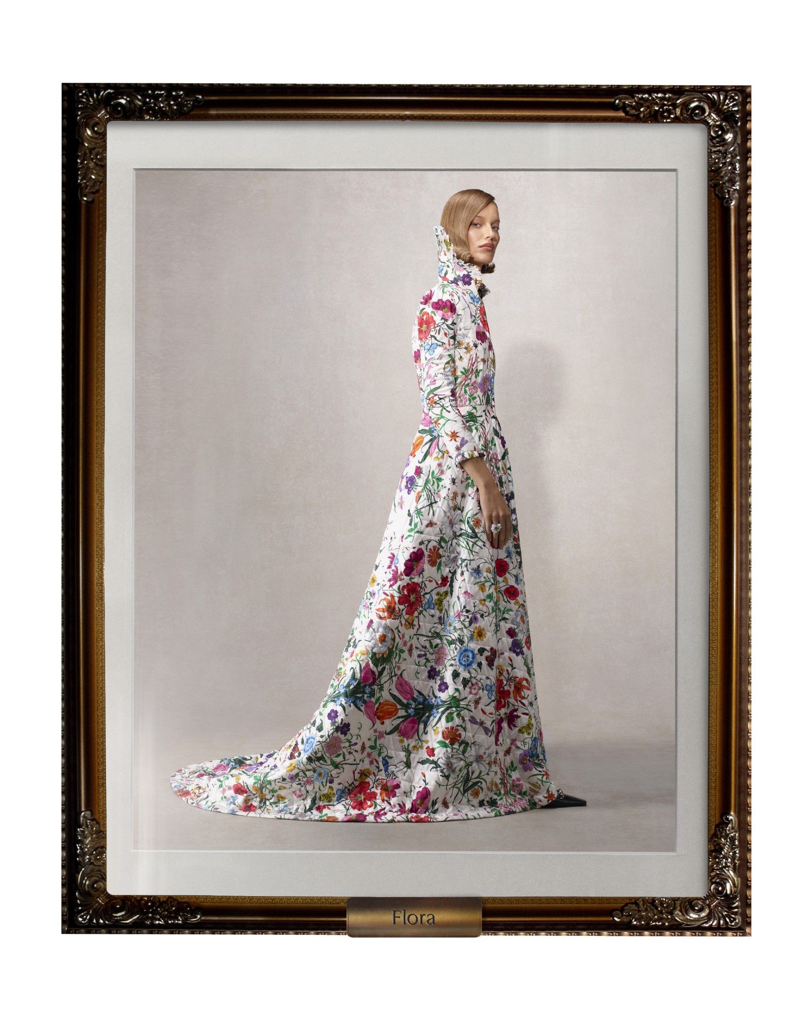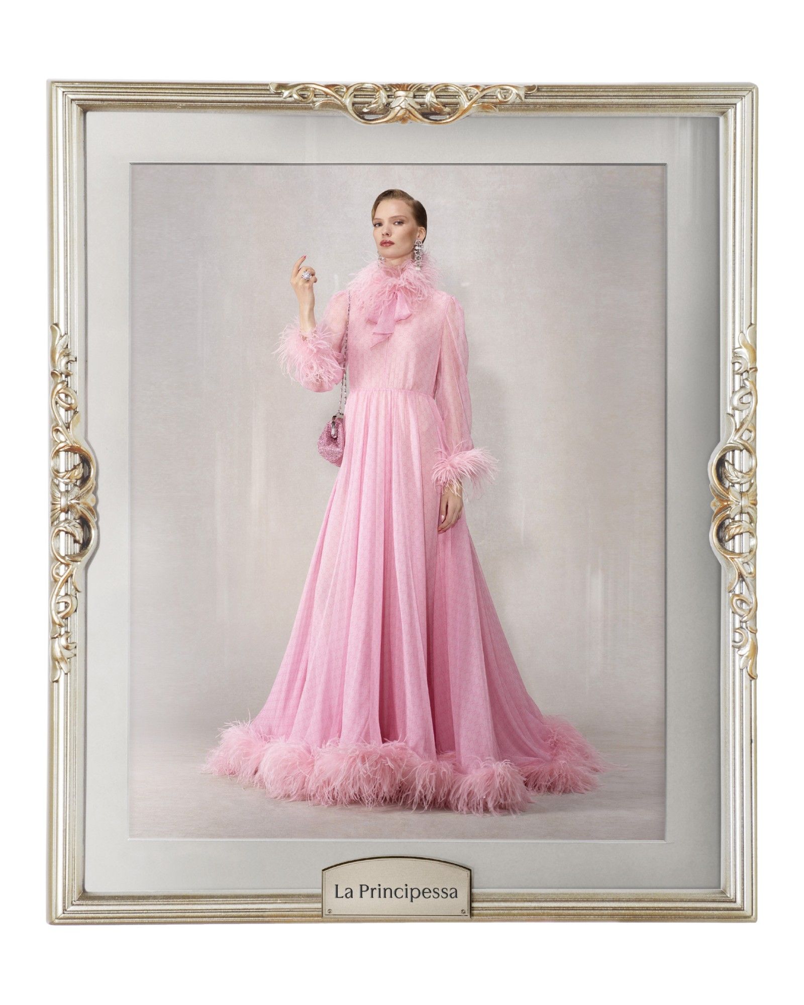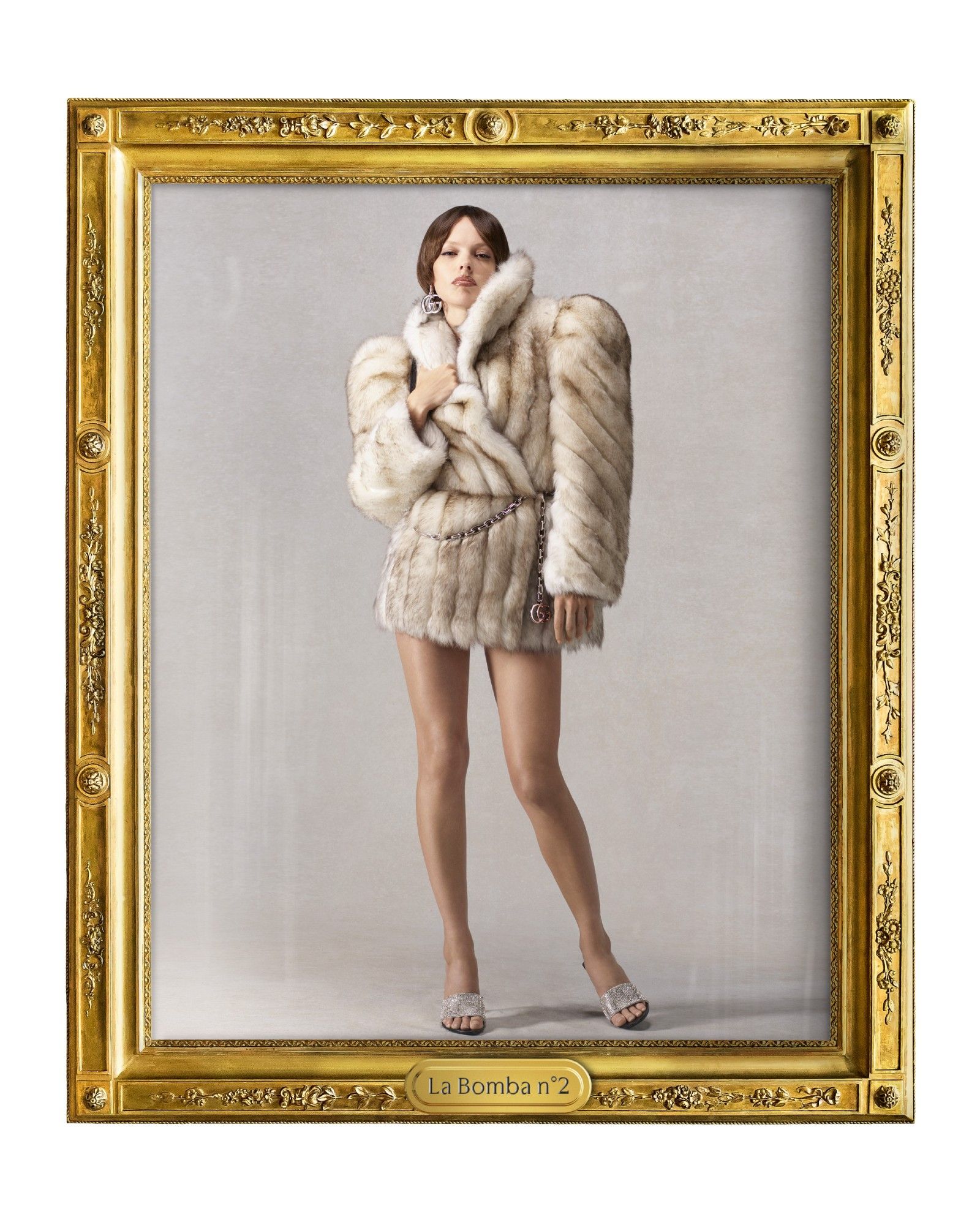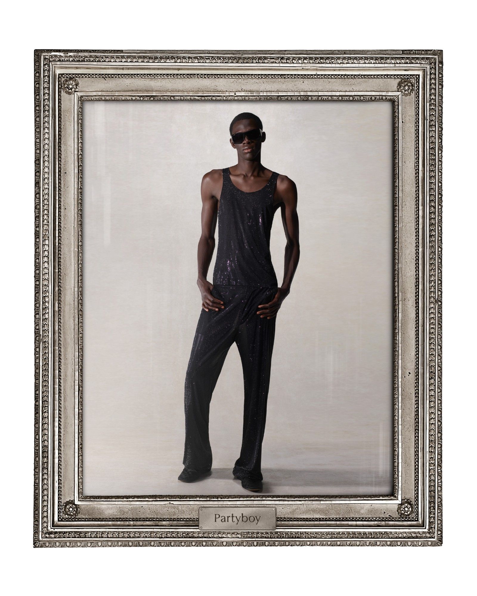 Individually, the garments are very classic, presented with Demna's volumes and attitude, and with styling that is both elegant, delightfully camp and swaggering with a very Tom Ford-esque mischief, though softened by a narrative framework that is not serious but rather that of a sparkling comedy. It is no coincidence, then, that the new collection is literally presented within a series of frames—elements that emphasize the new context in which these looks are placed. The frame makes the picture: an operation particularly aligned with Demna's mindset, who over his ten years at Balenciaga has been adept at guessing what makes the brain of a generation like ours tick, one that is chronically online.