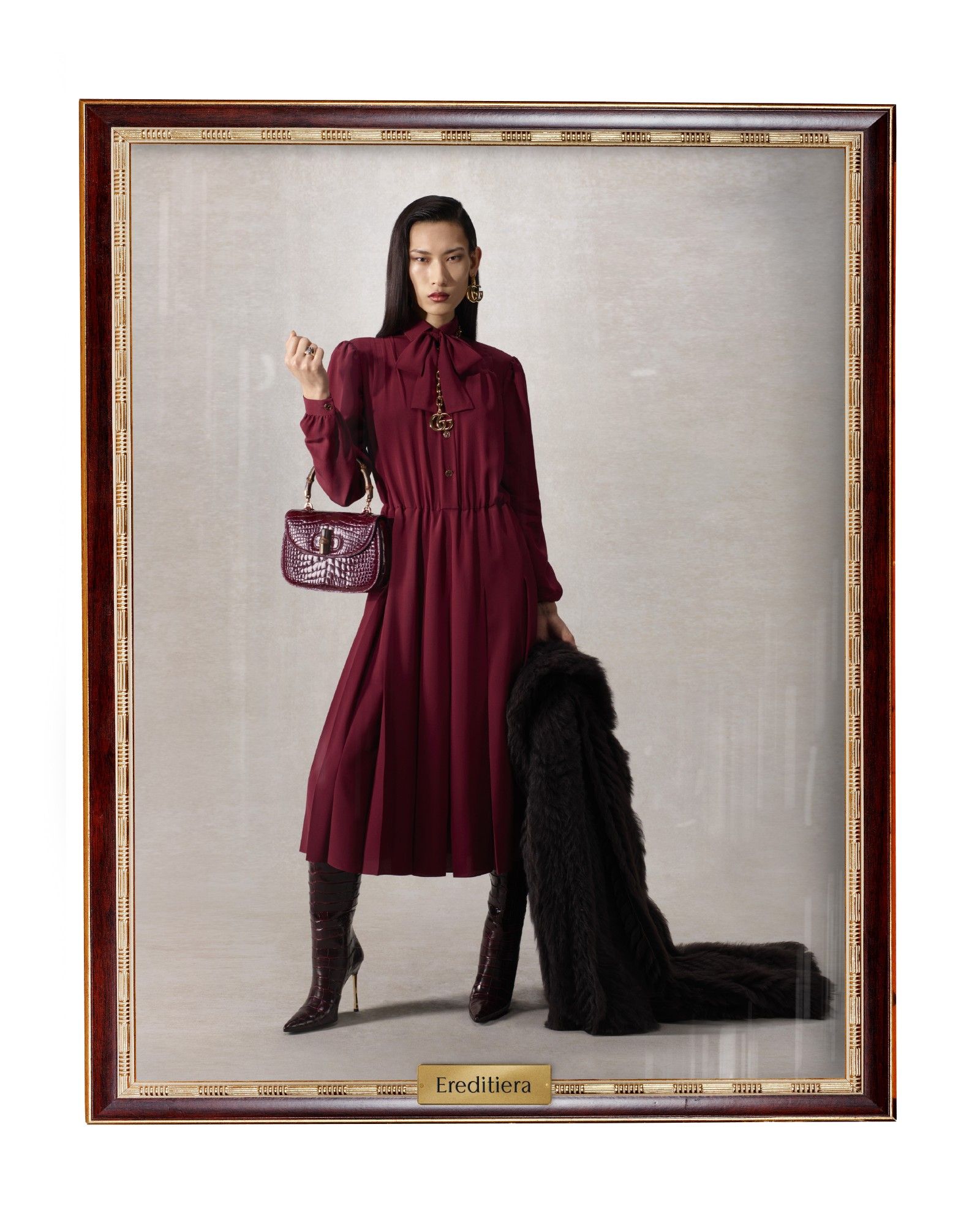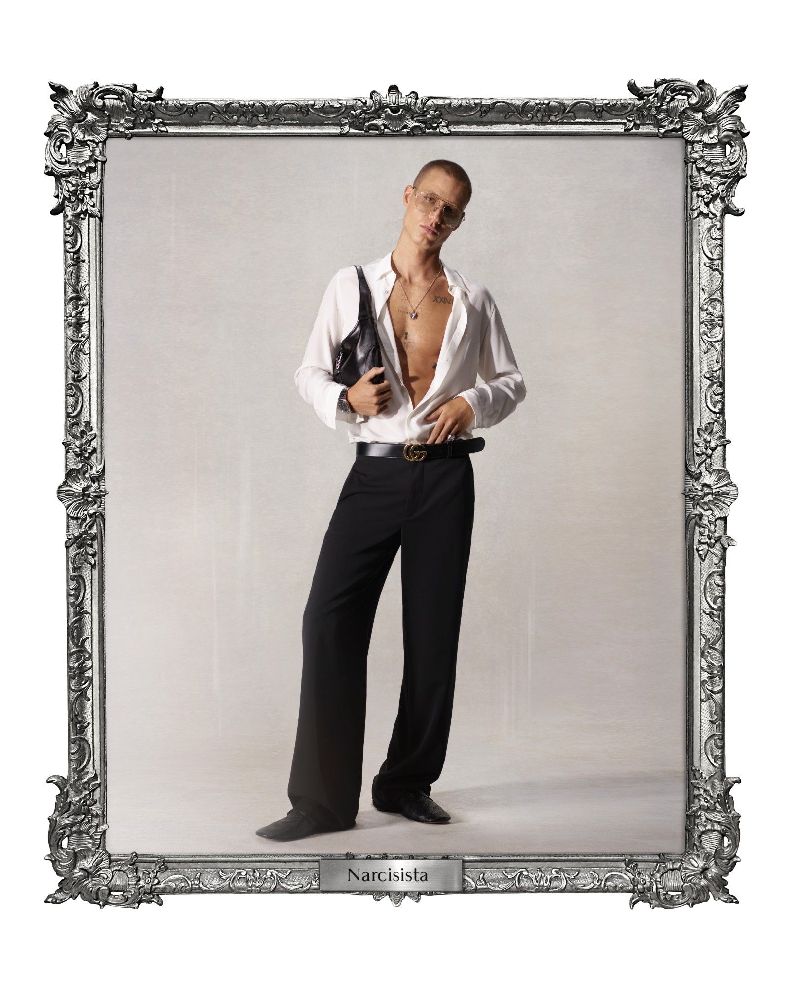 Everyone was waiting for it, and finally it arrived. Demna's first collection for Gucci was not presented with the classic show (for that, we'll have to wait until February) but with a film that will be shown to the press today and a lookbook titled "La Famiglia". With Demna's usual ironic flair, the lookbook is presented as a series of framed portraits, each dedicated to an Italian archetype that is stereotyped just enough to be, in fact, authentic: anyone who works in the rarefied worlds of fashion, art, design, or anyone who is simply rich enough has already seen these characters wandering through Montenapoleone, across the dancefloors of La Boum or at the restaurant of Casa Cipriani. On paper, it's about sprezzatura and unattainable refinement, but the photos and especially their titles instead showcase the complacent irony of a reality amplified through the lens of humor. Gucci has returned to being real.