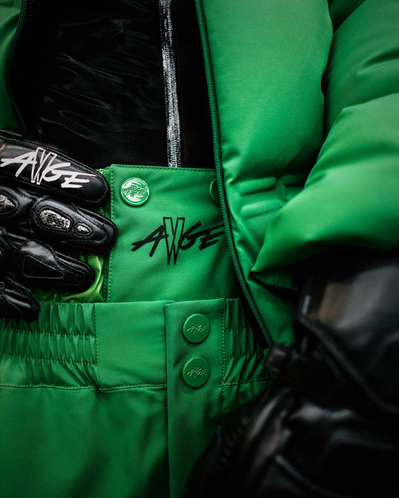 At the heart of the collection, monochromatic designs burst into a vibrant palette of fiery reds, deep indigos, and emerald greens, paying homage to the playful spirit of vintage ski wear. These bold hues interplay with black and white silhouettes, creating a dynamic contrast that captivates the eye and infuses energy. Functionality reigns supreme with sturdy zippers, practical pockets, and ergonomic cuts. But it’s the chromatic shock that makes each piece a statement. Picture a parka that not only keeps you warm but lights up the night like a beacon. Rocky’s signature details seal the deal: bold graphic prints, with the provocative phrase "Don't Be Dumb"—a nod to his upcoming album—adorning trouser pockets. Intertwined AWGE and Moncler logos embellish high-waisted designs, completed by asymmetrical layers that evoke his iconic wardrobe, blending streetwear with high fashion. The visual presentation elevates everything to a sensory level.