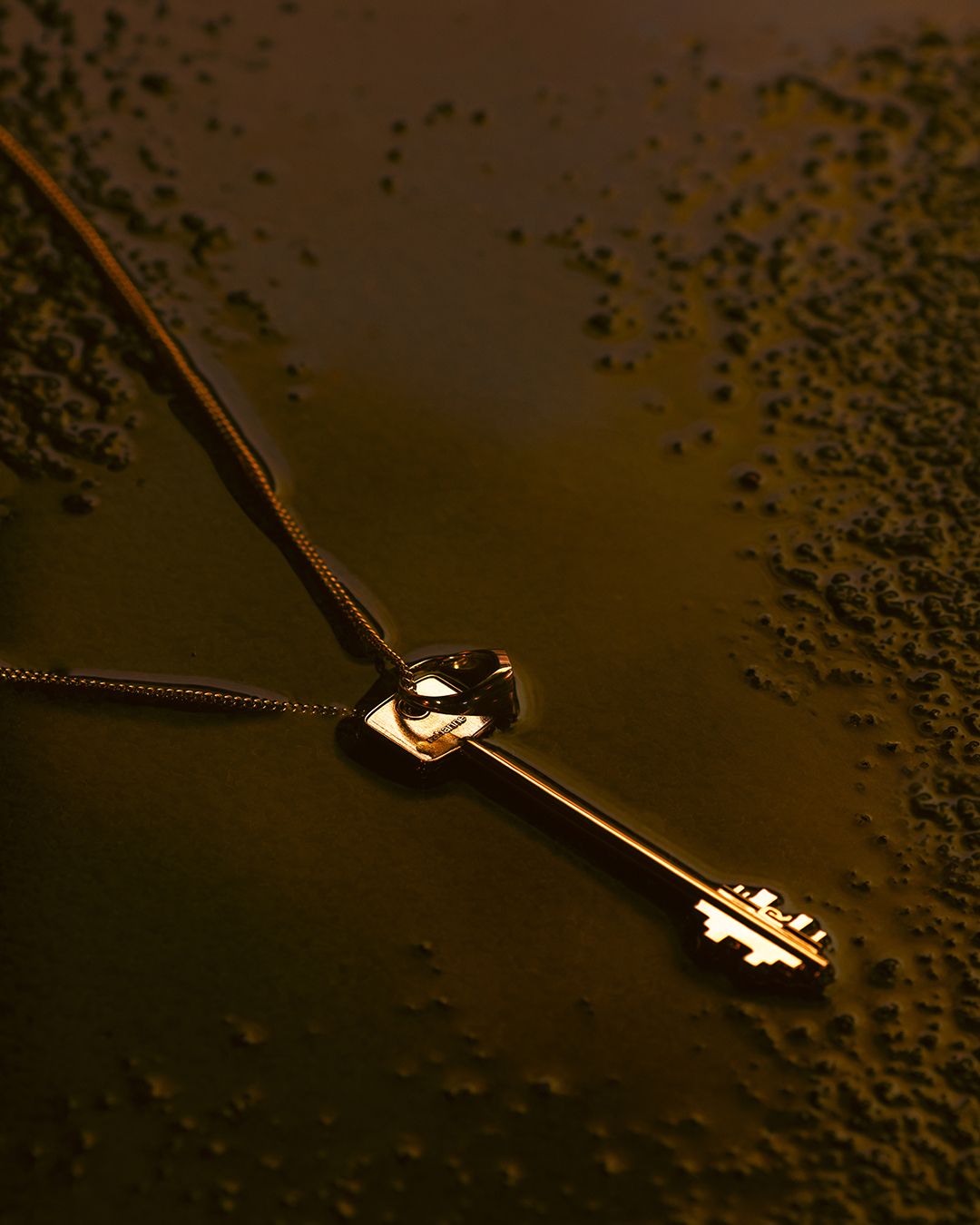 The color palette, composed of apricot, glass green, burgundy, deep blue and lilac, finds a balance between warm and cool, illustrating this duality. To anchor these ethereal silhouettes, the Maison offers military boots laced to the top, reinforcing the idea of protection, while Mary Janes worn with sparkling socks bring a touch of grunge and an allusion to the past. The collection ends on a poetic note: an old-fashioned key worn as a pendant. This universal symbol of security and secrecy reminds us that strength lies not in what we show, but in what we keep precious. It is an invitation to let go at the right moment, to unlock something that, for now, remains unknown. In a constant dialogue between what we keep for ourselves and what we choose to reveal, for an elegance both grounded and luminous, the FW25 collection of Maison Rabanne is a true invitation to pay more attention to our inner energy. As for us, we fully intend to listen to it all winter.