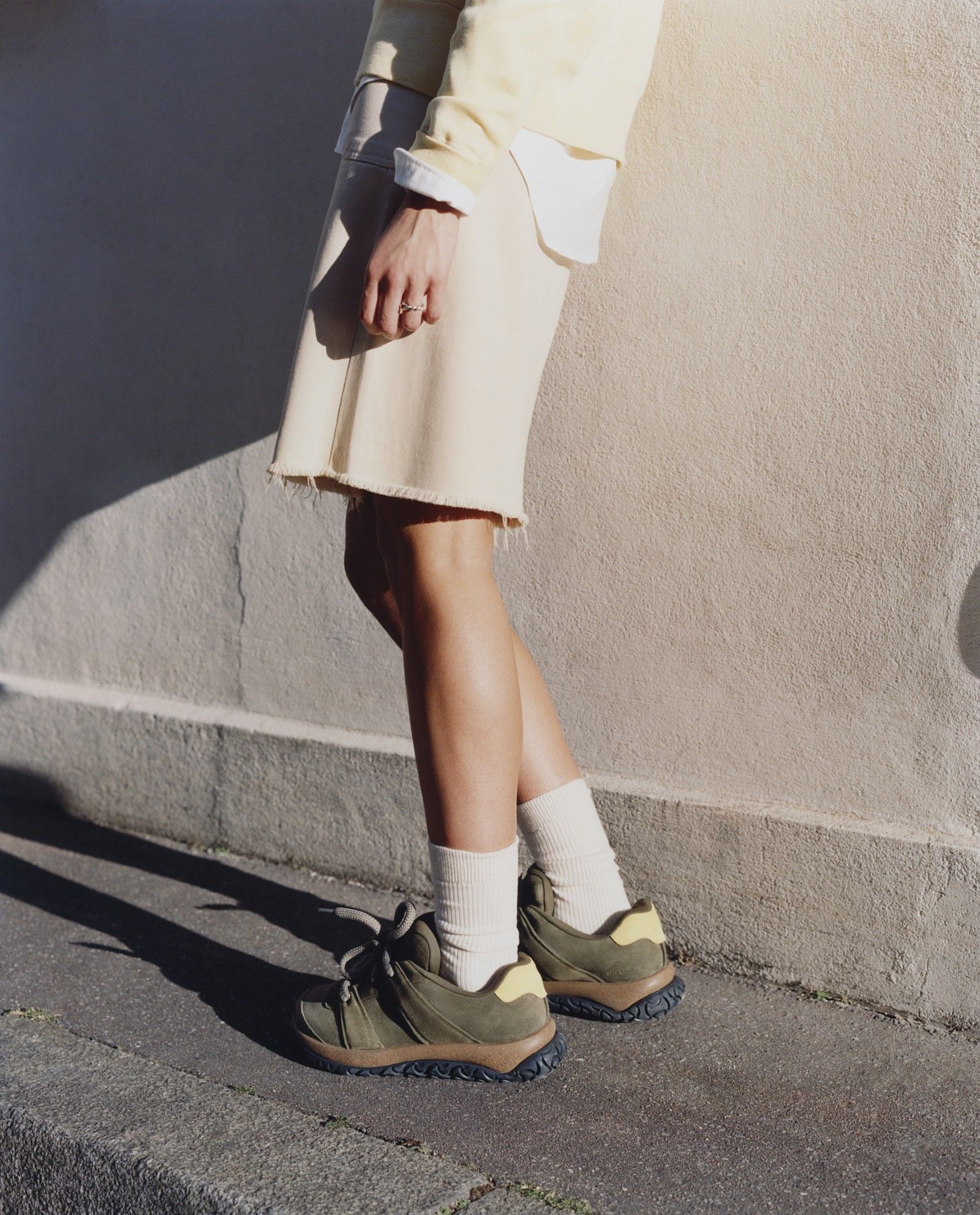 The collection consists of three unisex variants in premium suede, each a balance between heritage and modernity, with the Blue Footbed for supreme comfort. The Uerzell model presents itself as a sculptural mule slip-on with thin laces and visible cork midsole, ideal for effortless urban transitions in taupe, lime, and bordeaux colors. The Stroedt, on the other hand, is an essential low-top laced with a single upper strap, embodying refined sobriety for everyday life in tones of black, white, and lime. Finally, Goerlitz emerges as a bold silhouette with amplified proportions, thick laces, and double strap, offering a decisive presence with deep texture in black, thyme, and mink colors.