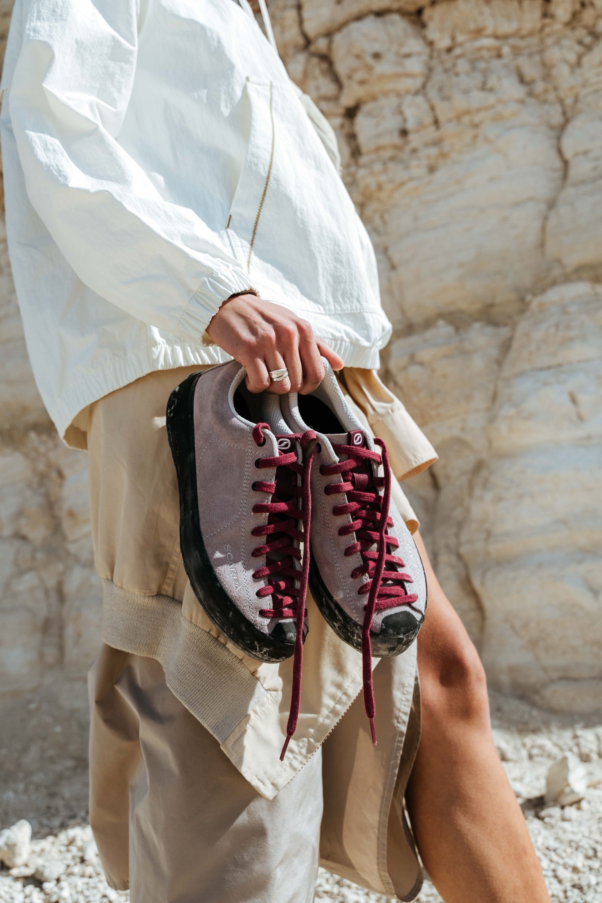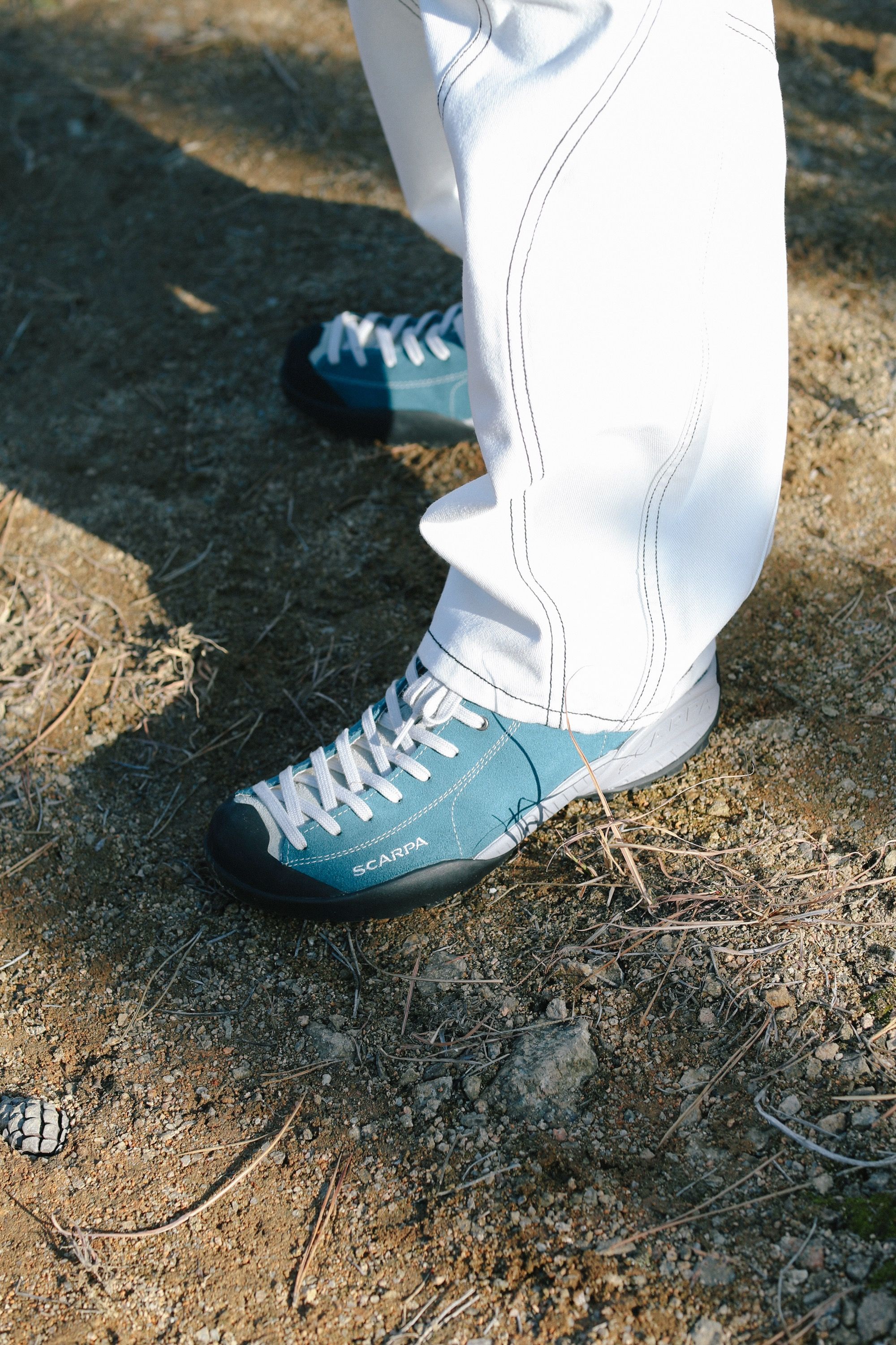 The key example of how “super-laced” shoes have now fully entered the fashion world comes from Jacquemus, the French brand that went viral over the past year thanks to its ultra-soft tennis shoes with exaggerated laces, reprised in the Maison’s collaboration with Nike for a new edition of the iconic Moon. But what makes the toe-length laces of shoes like the Mojito and Jasper such an attractive element for fashion brands? «This feature allows for a customized fit and better control,» explains Jeroen Meijer, marketing manager at Keen. As Cristina Parisotto, creator of Scarpa’s Mojito, also notes, laces that extend all the way to the toe in a climbing shoe are essential for greater safety and support of the foot, characteristics that sparked Parisotto’s inspiration years ago. The Mojito, she says, «was born from my desire to create a shoe that didn’t exist, a shoe for the new nomads.»