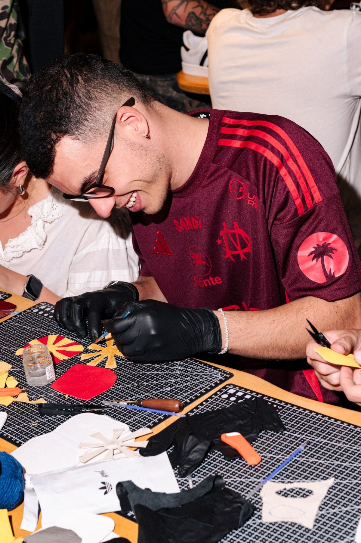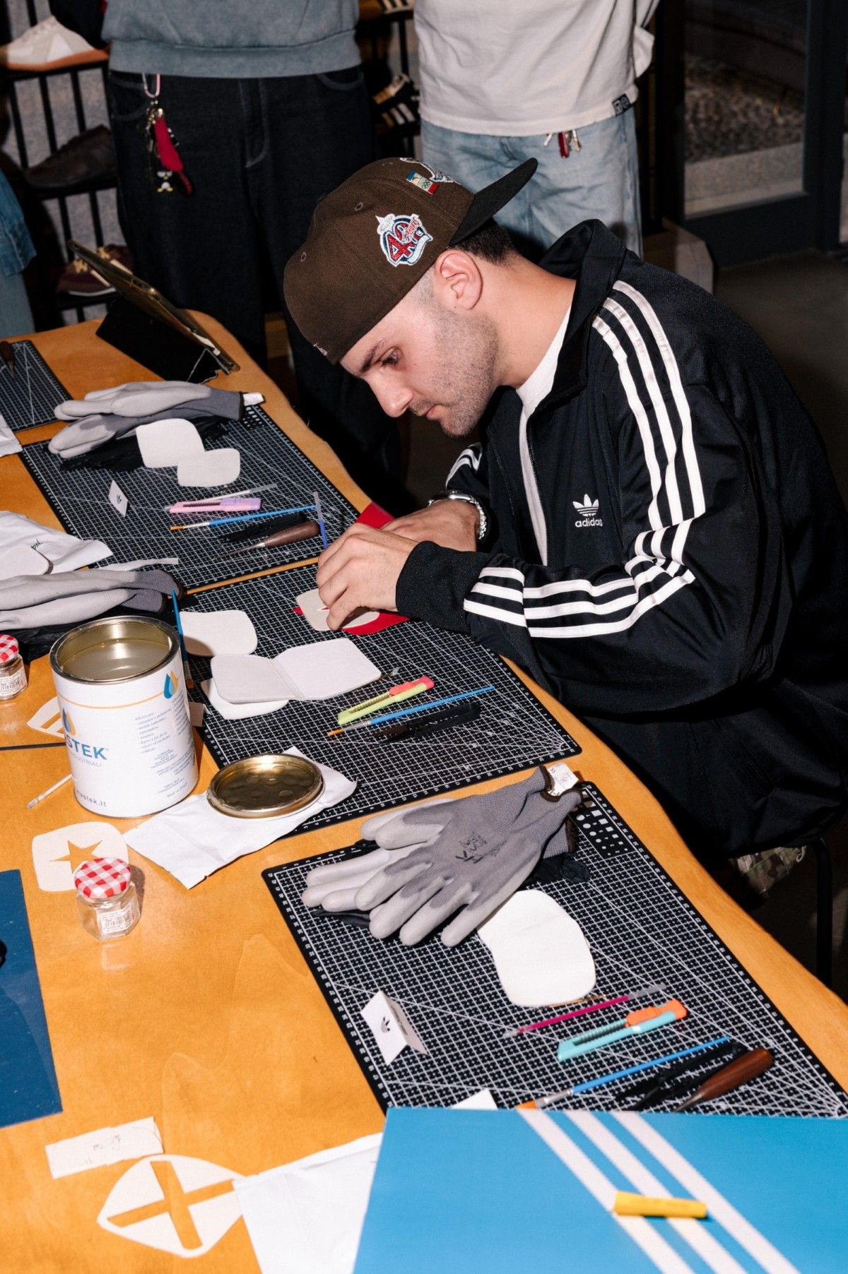 In the afternoon, the workshop guided by the same Di Lernia was then held. Open to a limited number of adidas community members, the workshop saw participants customize the tongues of their own sneakers, shaping and decorating them with custom details ranging from minimalist engravings to more lively patterns. The day then closed beautifully with an informal party that went on until early evening. Here, the adidas community, made up of collectors, emerging artists, and simple enthusiasts, gathered to toast the intersection between art, music, and sneaker culture. The soundtrack, curated with playlists ranging from classic hip-hop to contemporary beats, recalled the heritage of the Superstar, adopted by generations of musicians and skaters from the 70s to today.