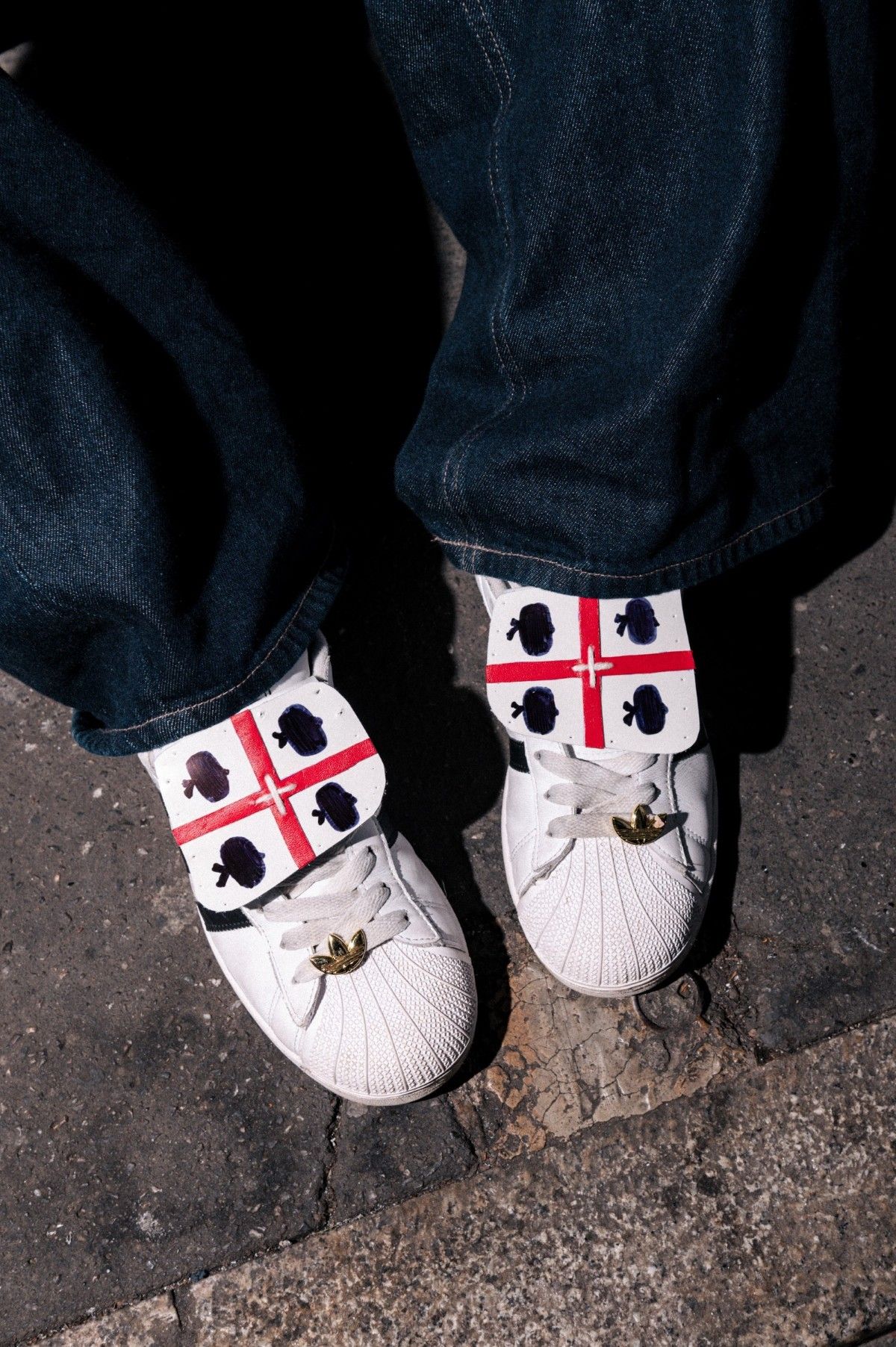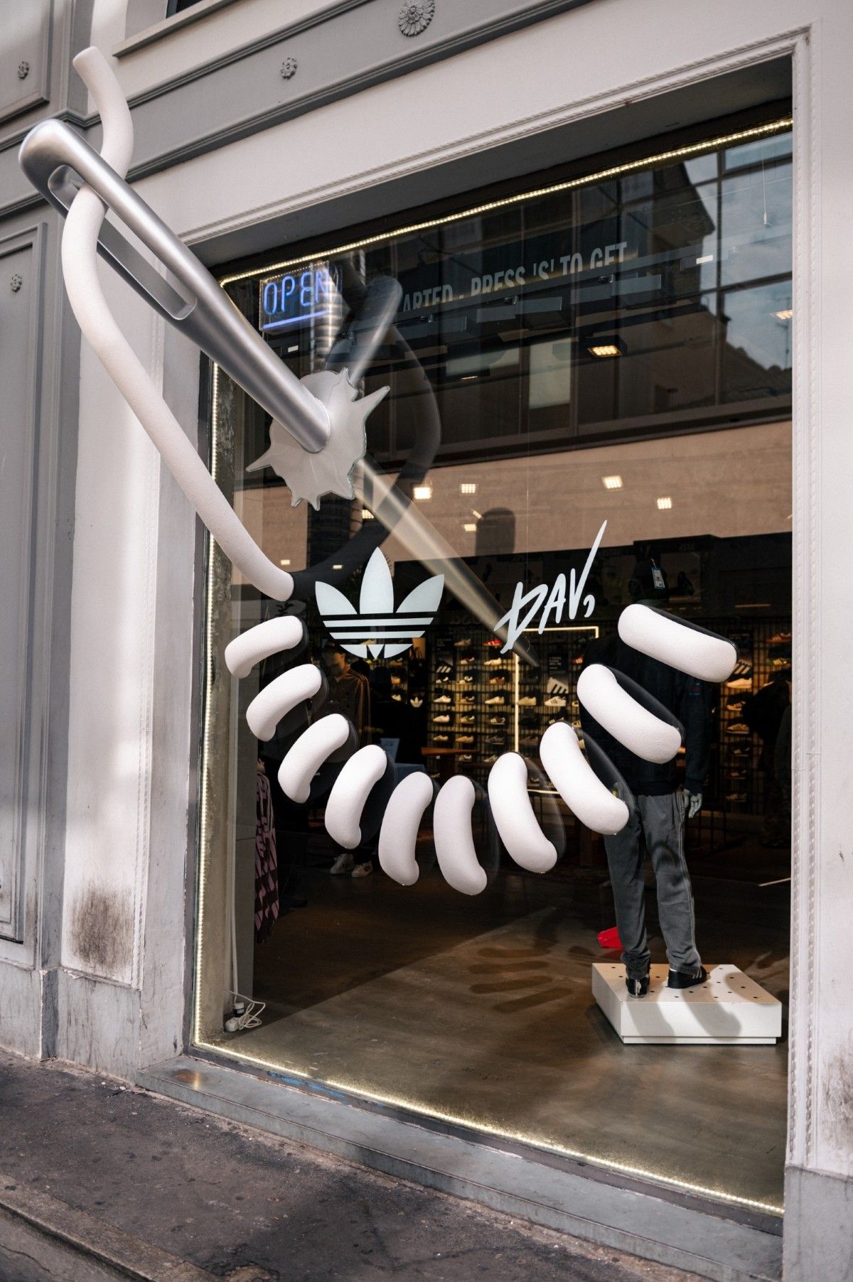 The new FW25 season has finally begun and adidas Originals has kicked off a series of celebratory events for its iconic Superstar shoe, a symbol of a heritage that unites sport, art, and streetwear. The most recent is the Milan event held last Wednesday at the brand's store on Via Tocqueville, which became a moment of true interaction with the community, centered on creativity and personalization. The event saw the store come alive thanks to a three-dimensional window display curated by Davide Di Lernia, a talented Italian customizer and designer born in 2000 from Barletta in Puglia, who, for adidas, created an installation inspired by his creative approach, centered on essential symbols like a needle and thread, which evoke the artisanal craft at the base of every personal transformation.