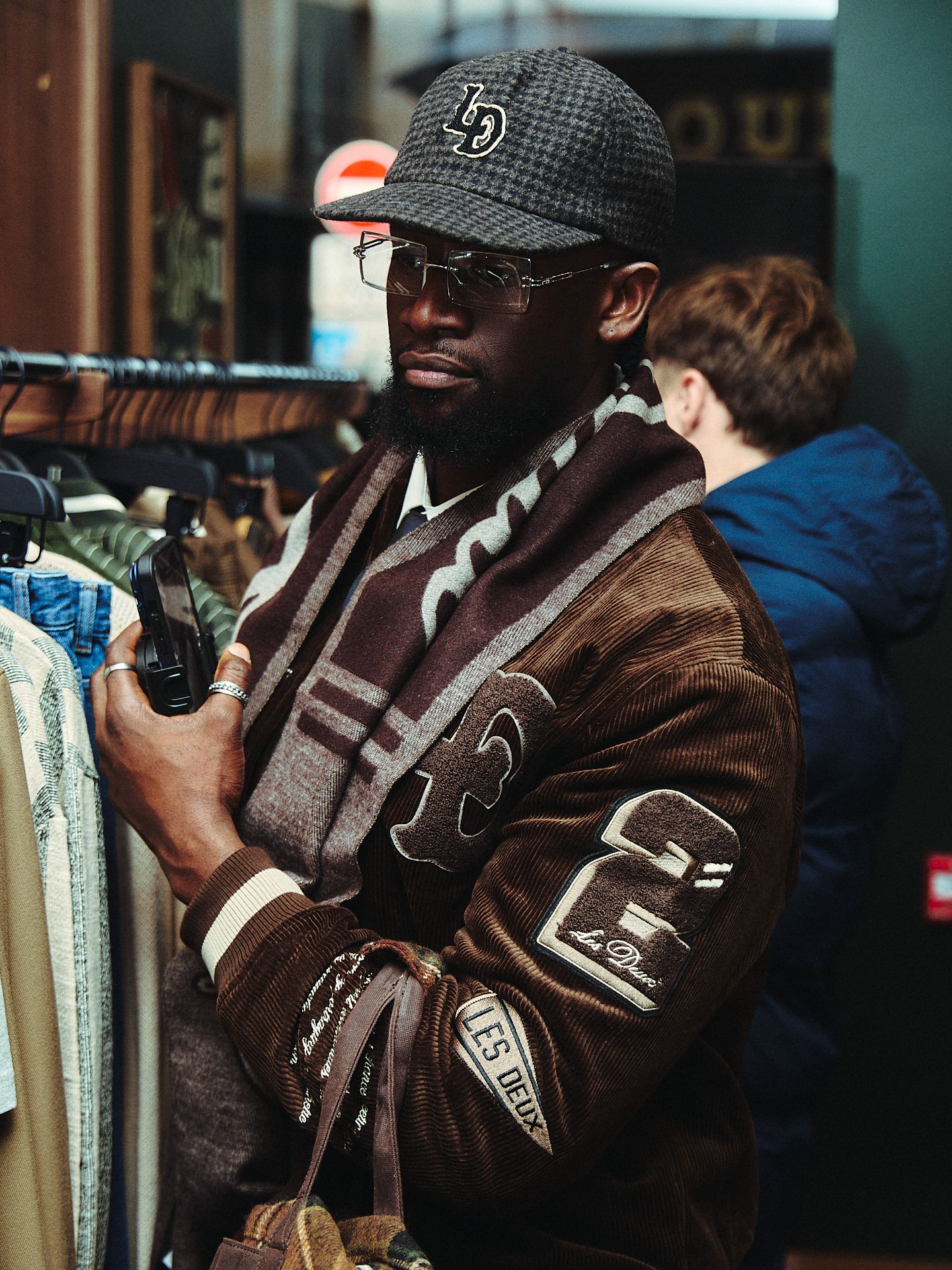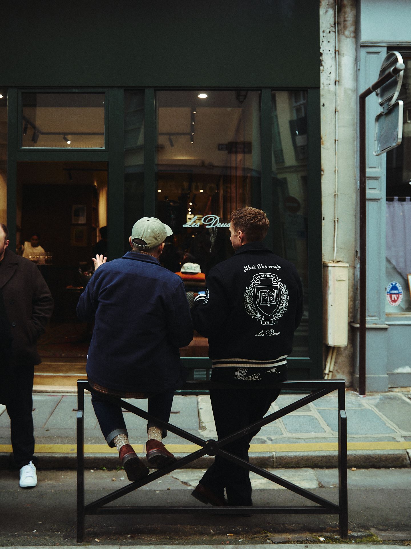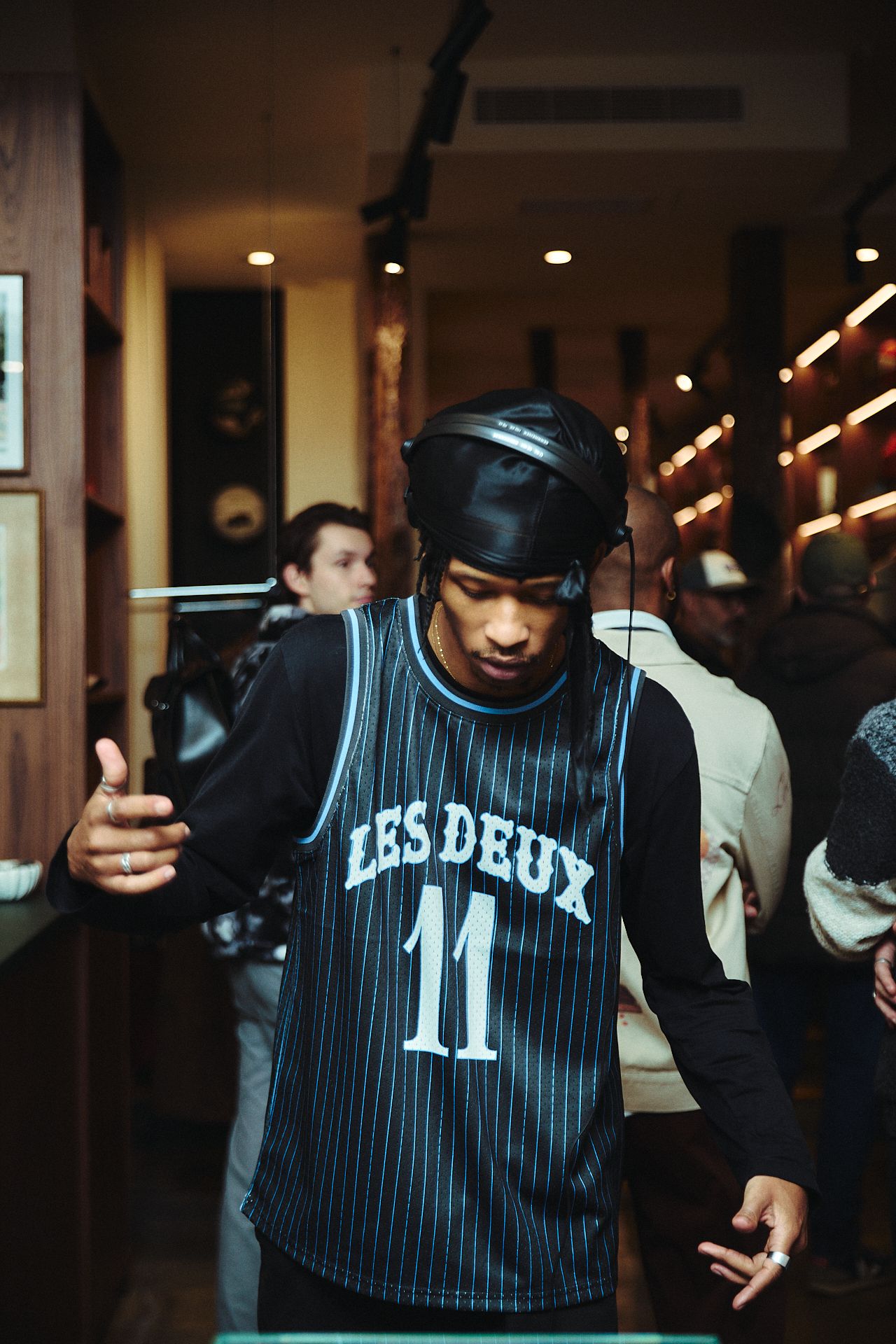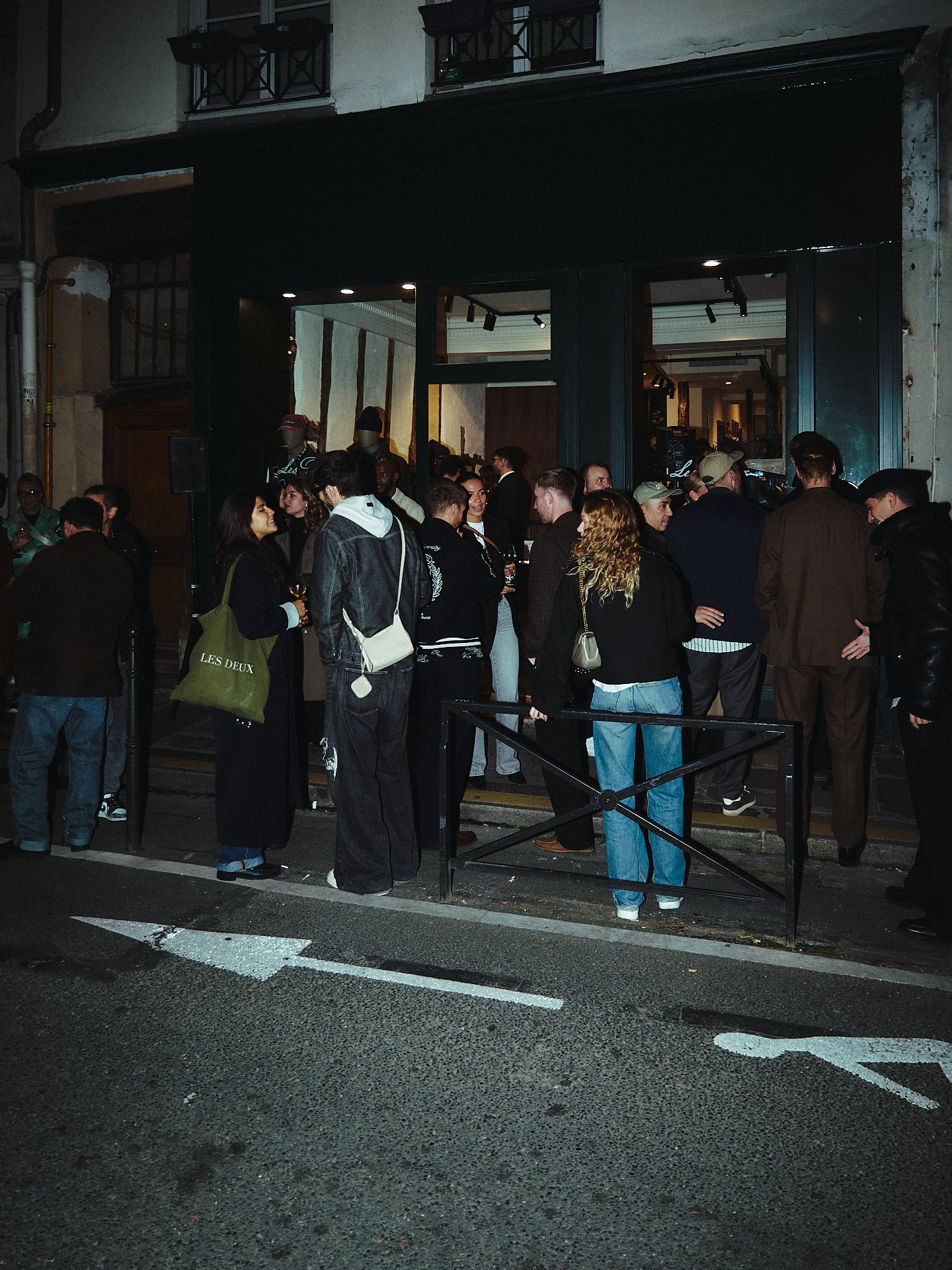The launch event attracted an audience of enthusiasts, curious onlookers, and brand community members, with live music and drinks, as well as limited-edition pieces available exclusively on-site. Outside, a vintage car loaded with basketballs symbolized the brand's playful welcome to the Parisian neighborhood, turning the inauguration into a shared festive moment. The Winter 2025 collection, debuting right here, features textured outerwear, relaxed tailoring, and pieces influenced by classic sportswear, inviting visitors to immerse themselves in the Les Deux universe.