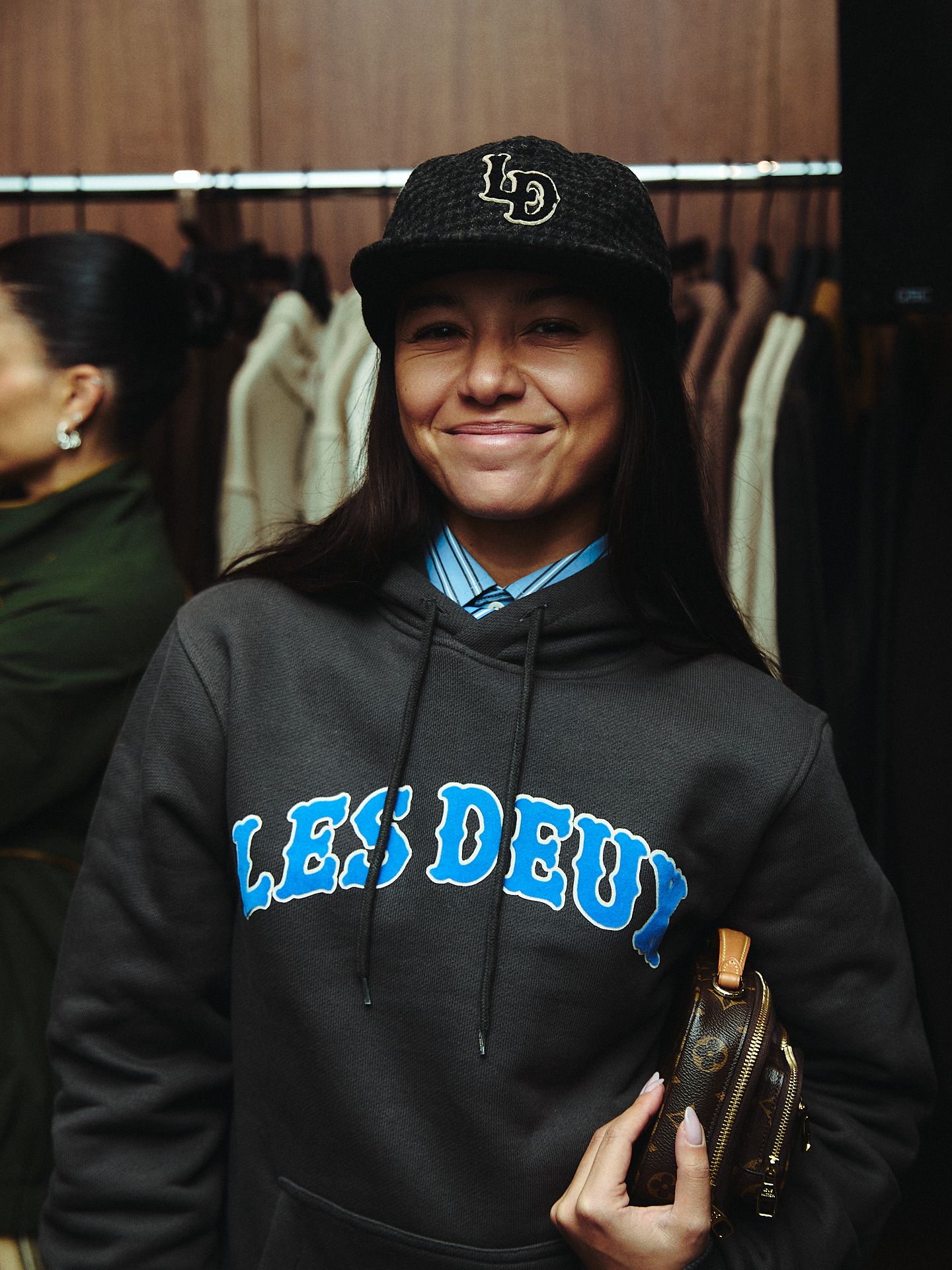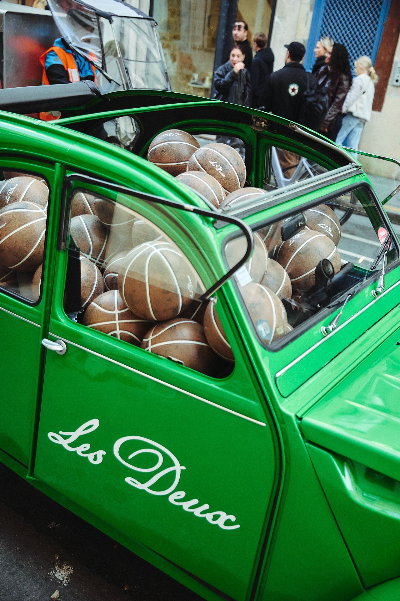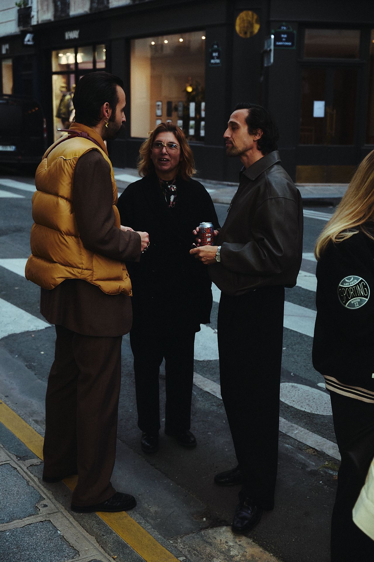 The launch event attracted an audience of enthusiasts, curious onlookers, and brand community members, with live music and drinks, as well as limited-edition pieces available exclusively on-site. Outside, a vintage car loaded with basketballs symbolized the brand's playful welcome to the Parisian neighborhood, turning the inauguration into a shared festive moment. The Winter 2025 collection, debuting right here, features textured outerwear, relaxed tailoring, and pieces influenced by classic sportswear, inviting visitors to immerse themselves in the Les Deux universe.