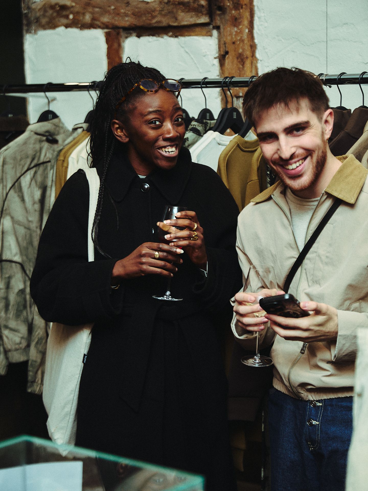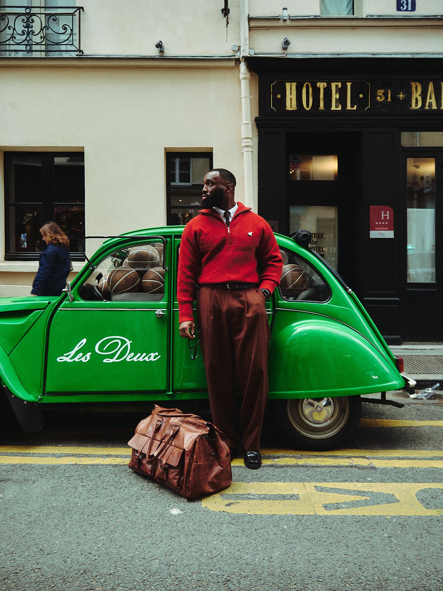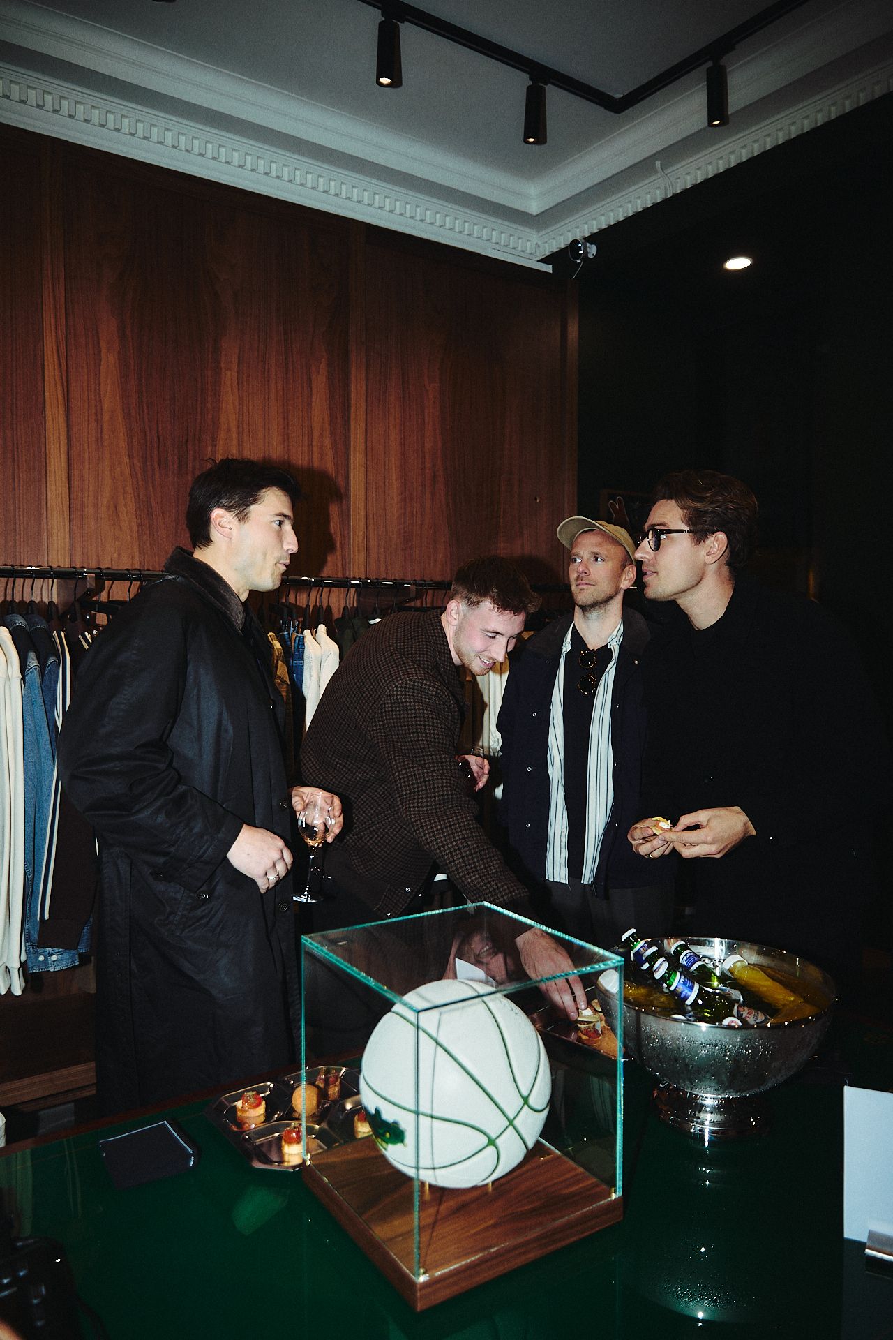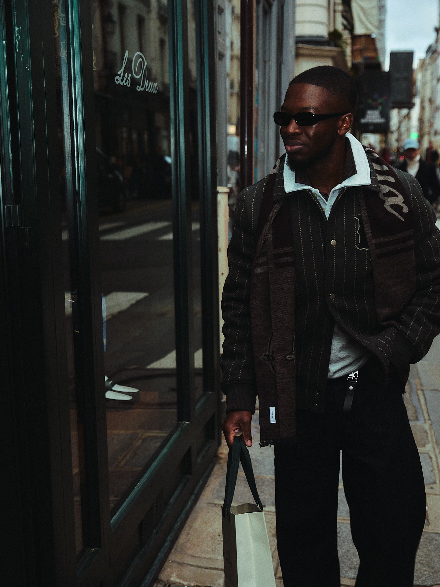 The launch event attracted an audience of enthusiasts, curious onlookers, and brand community members, with live music and drinks, as well as limited-edition pieces available exclusively on-site. Outside, a vintage car loaded with basketballs symbolized the brand's playful welcome to the Parisian neighborhood, turning the inauguration into a shared festive moment. The Winter 2025 collection, debuting right here, features textured outerwear, relaxed tailoring, and pieces influenced by classic sportswear, inviting visitors to immerse themselves in the Les Deux universe.