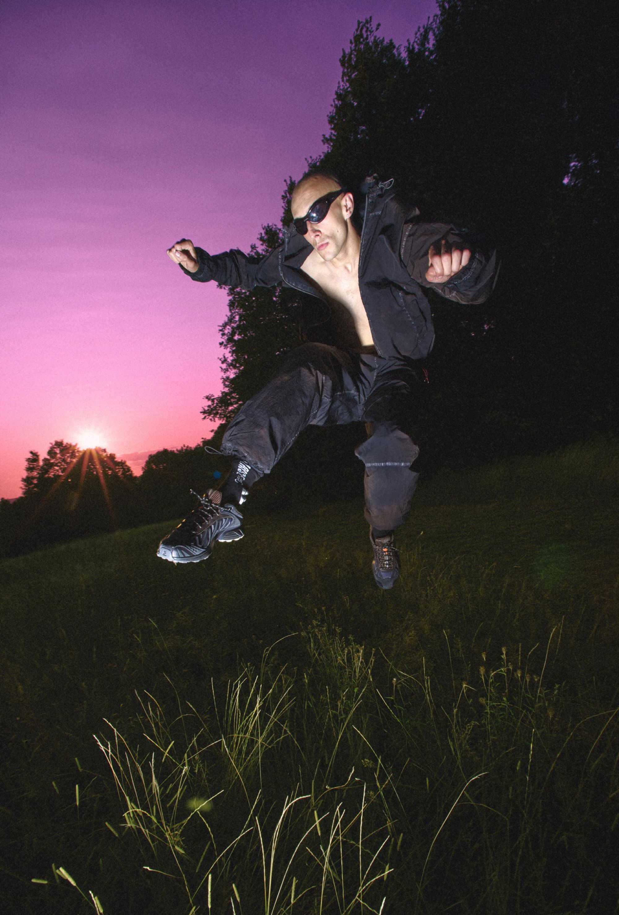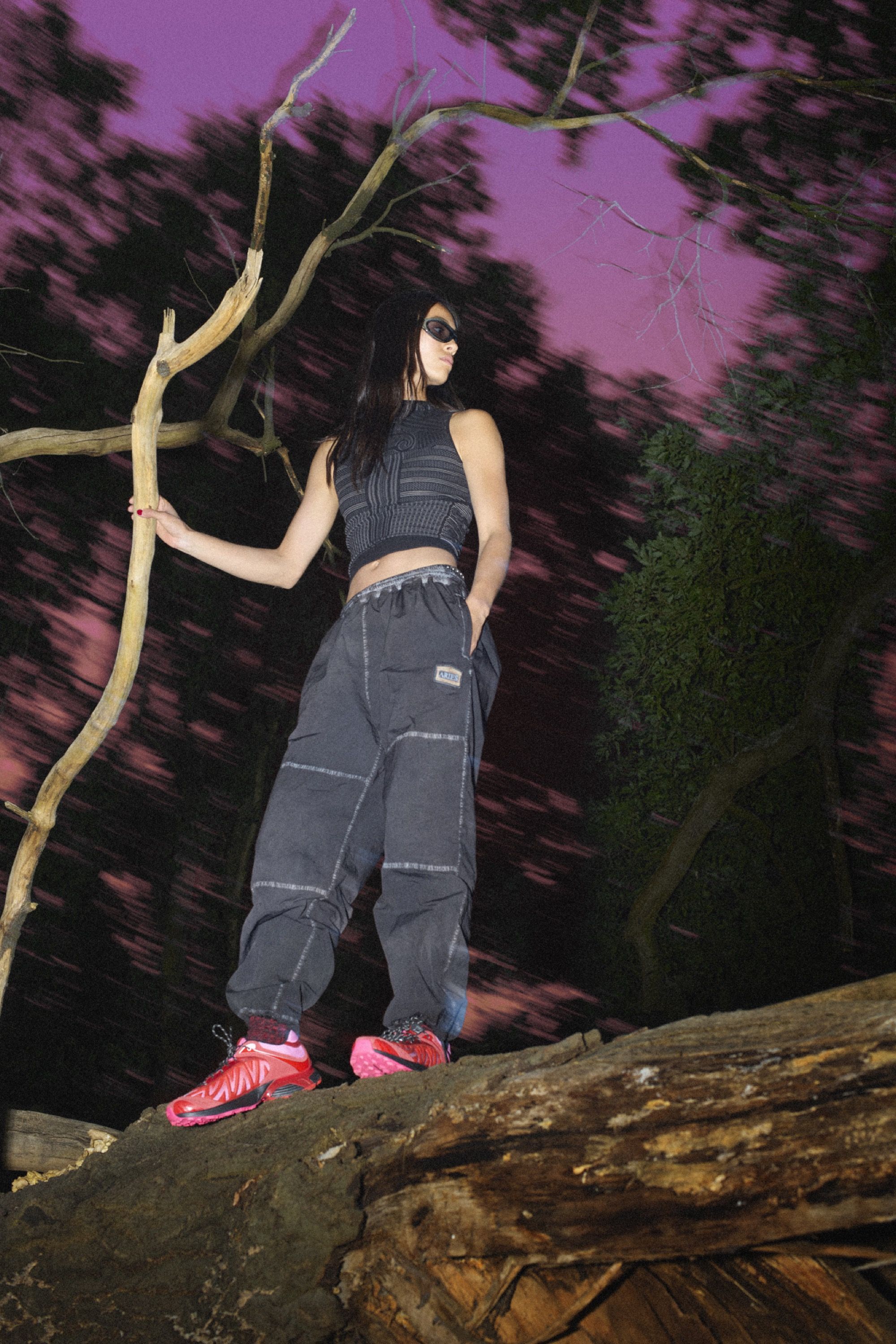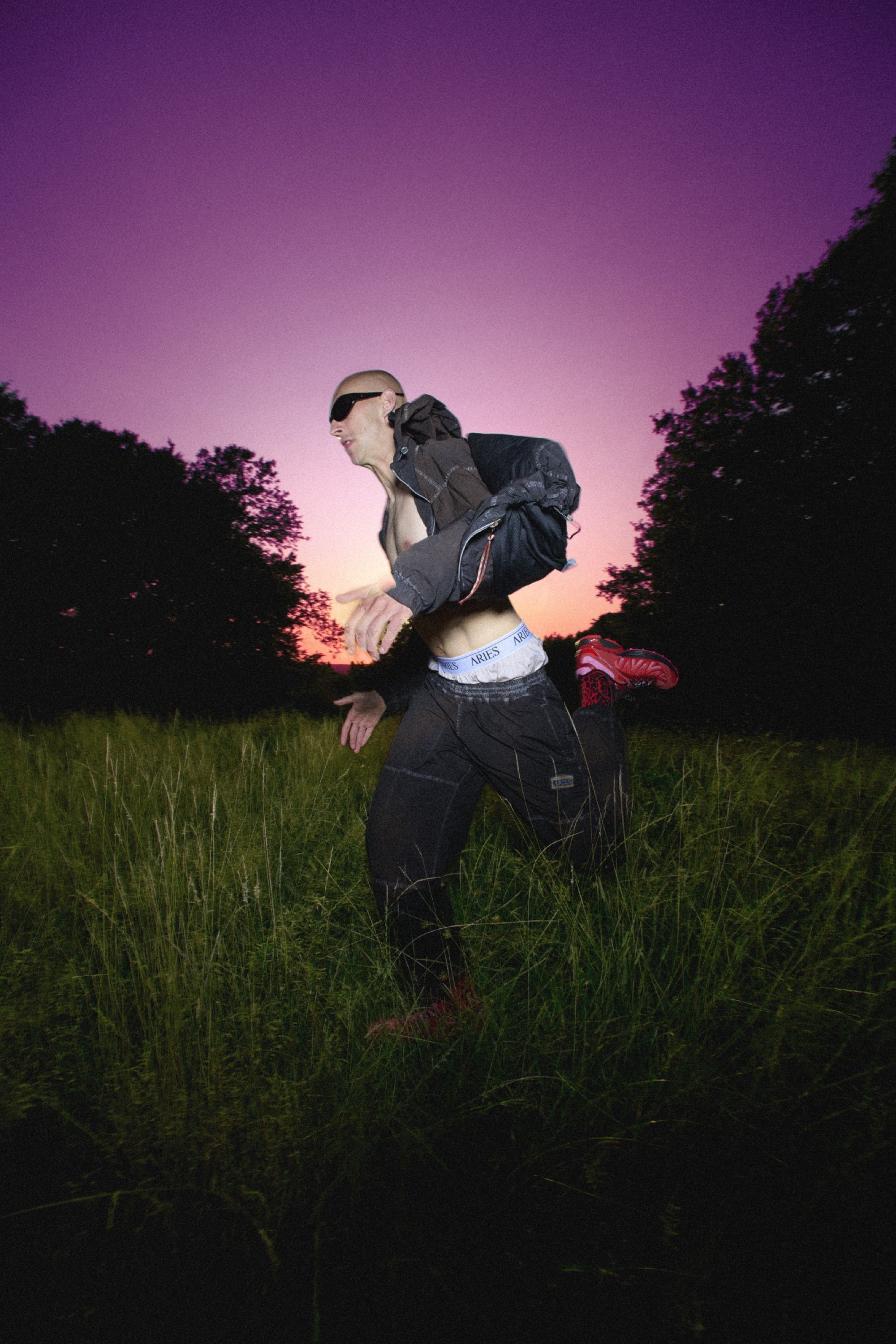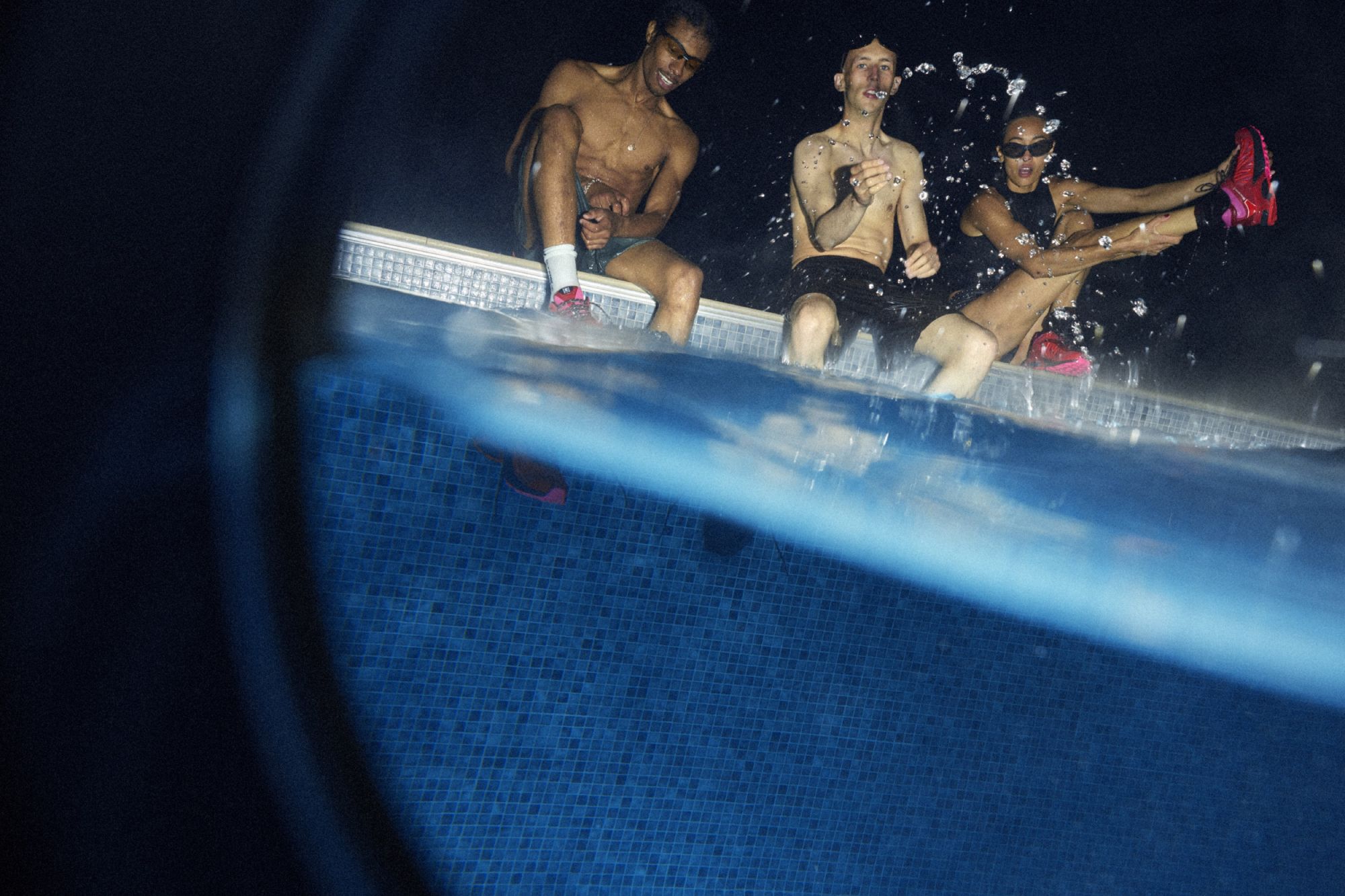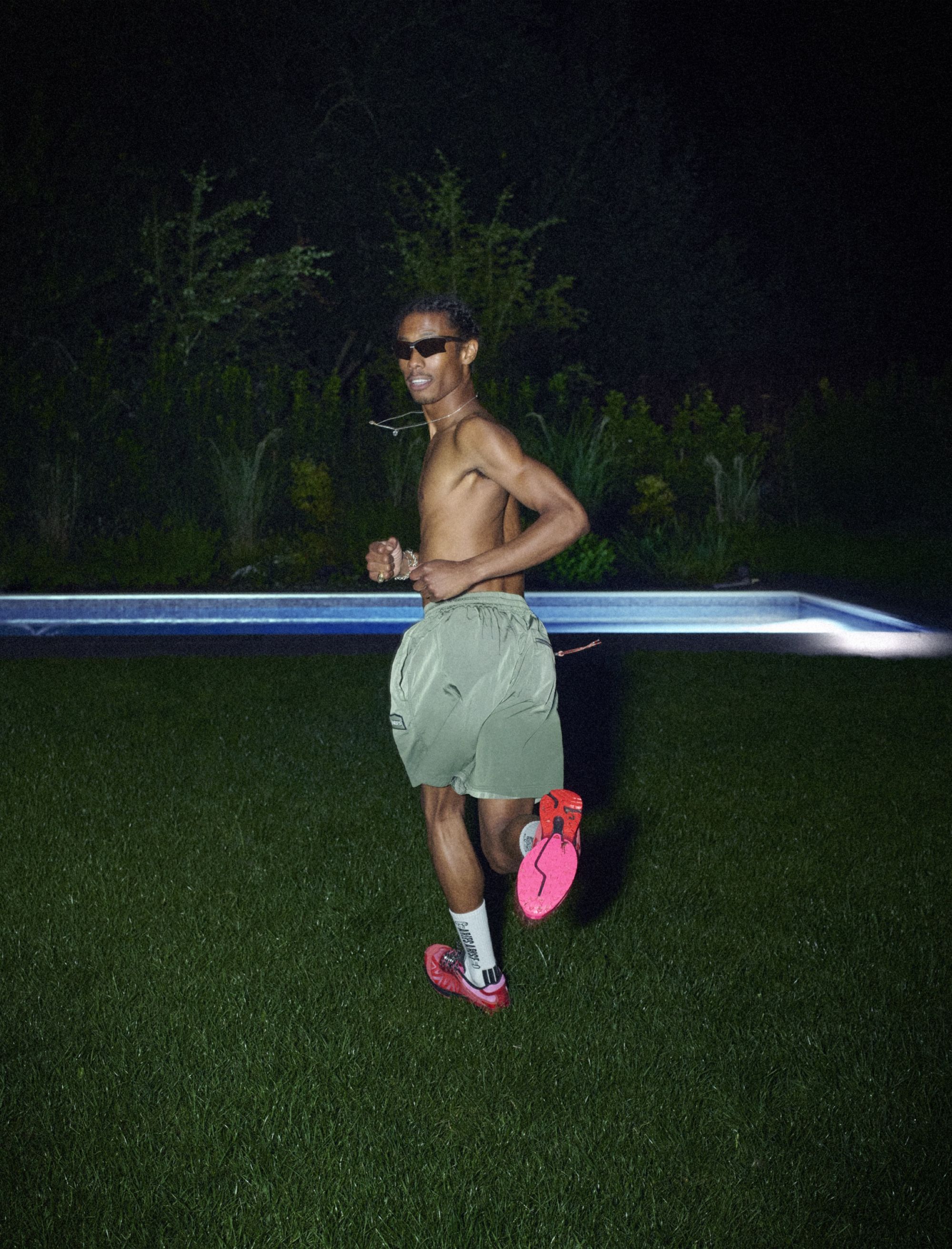 Framing the debut is a campaign shot by Rollo Jackson, cult documentarian of the underground scene and one of the most authentic visual voices in contemporary culture. His eye captures the meeting of fashion and sport in a suspended landscape: moonlit woods, shimmering water, protagonists moving between elegance and instinct. It is a sensory tale, a flow of style and energy that runs in perfect harmony.