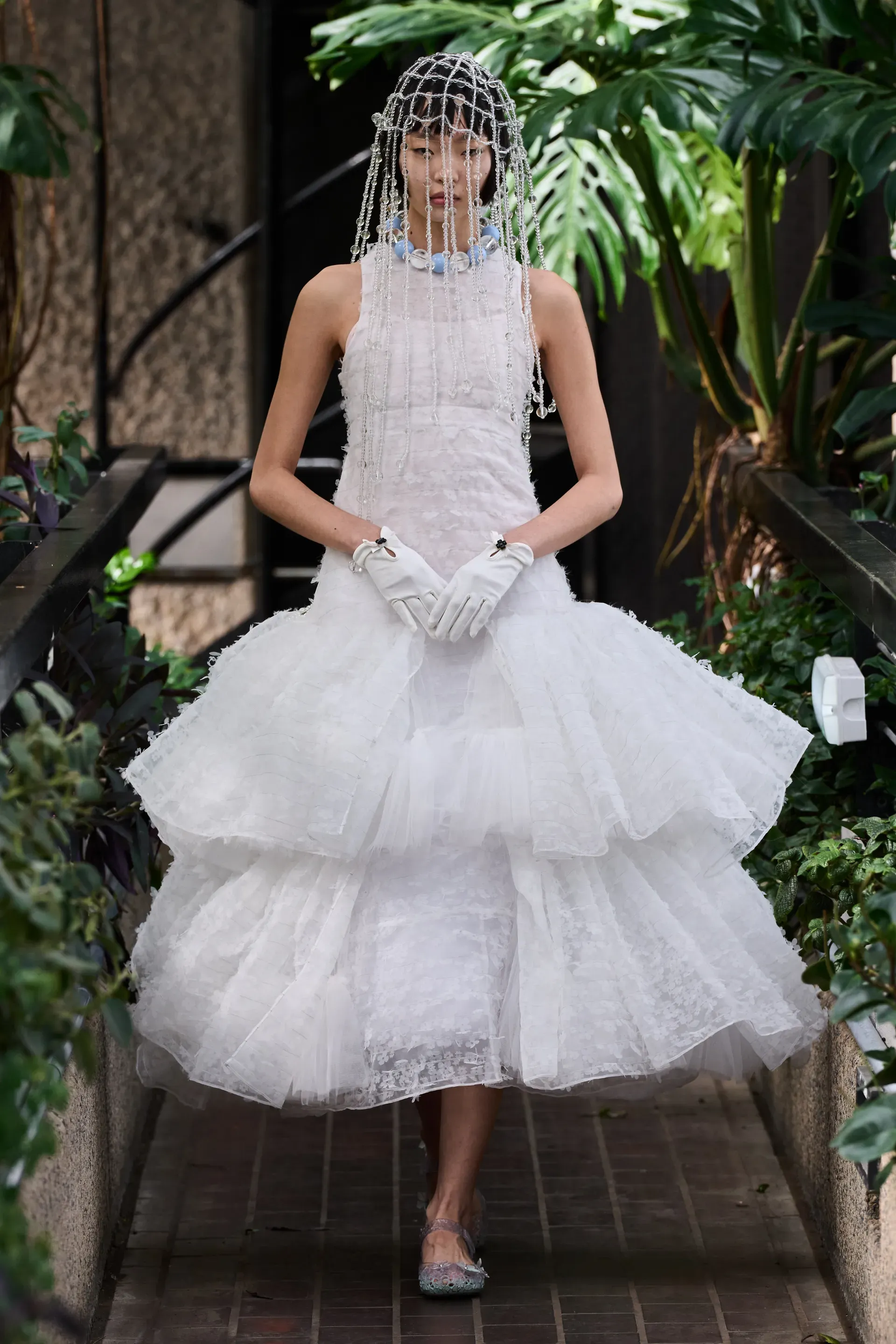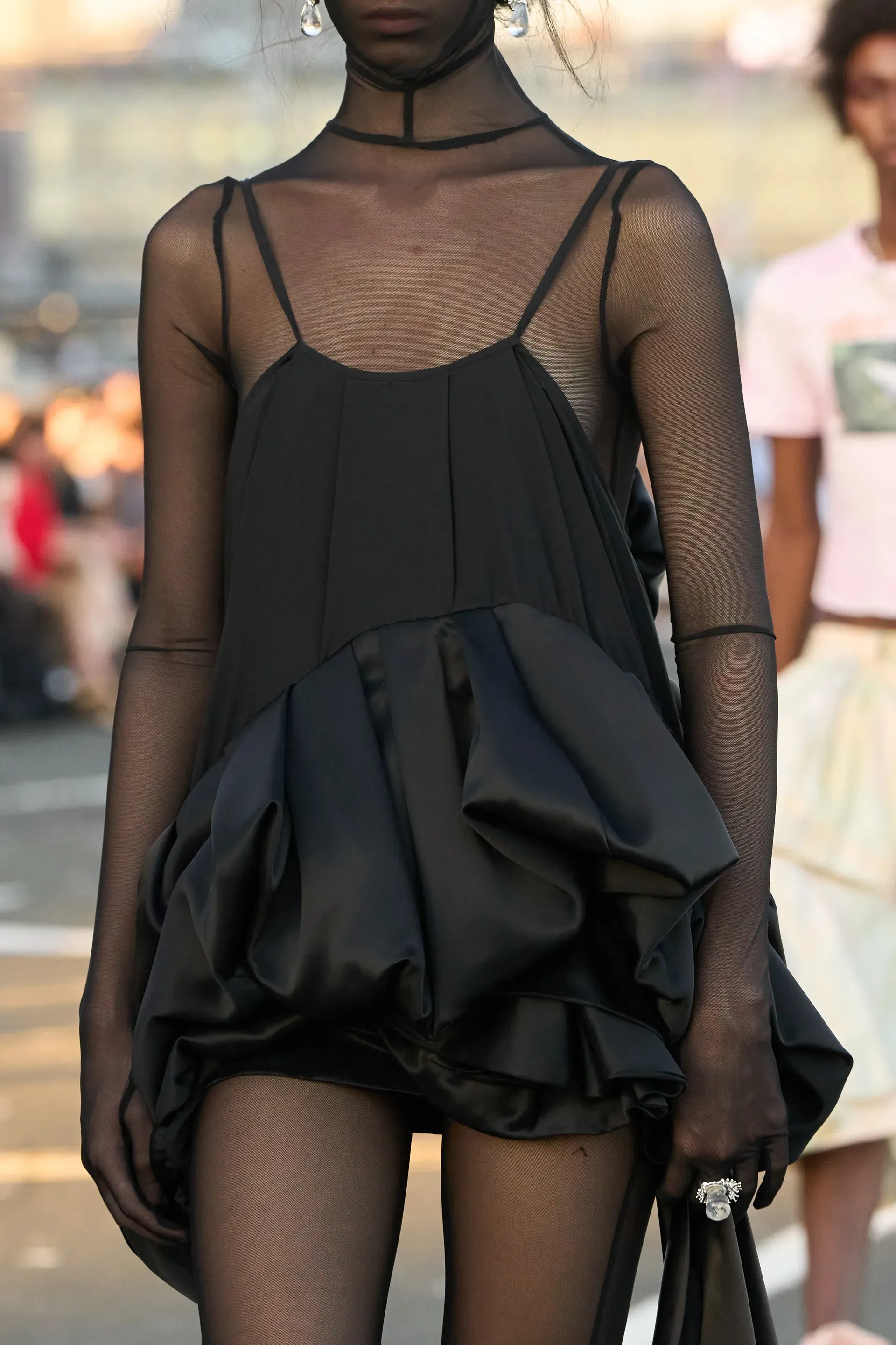 There have been two types of opera gloves on the latest runways: leather ones, very tall, often up to under the shoulders, which in some cases end up becoming an extension of the dress (we saw it well with Pierpaolo Piccioli's new Valentino, but also from MM6 and Dilara Findikoglu) or in transparent version, in gauze or lace, which appeared in shows with very different tones like Luar and Simone Rocha.