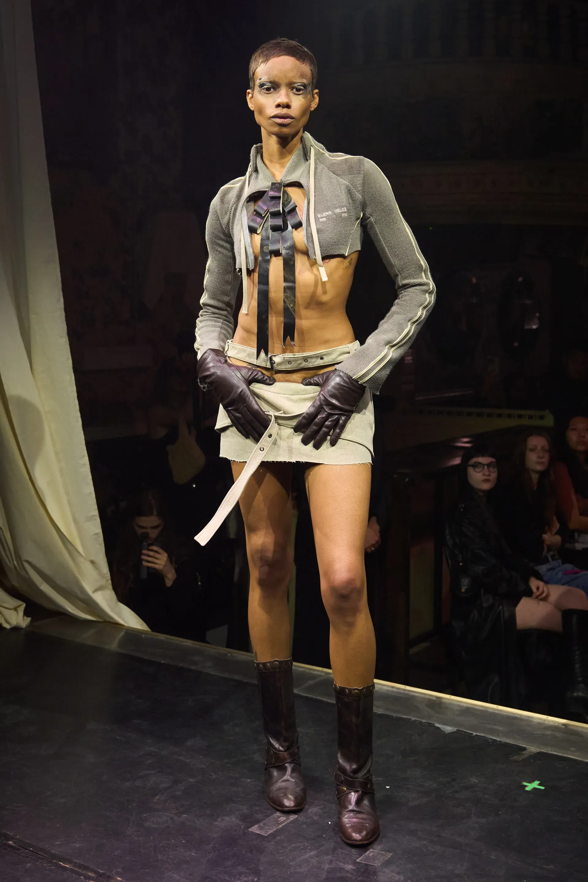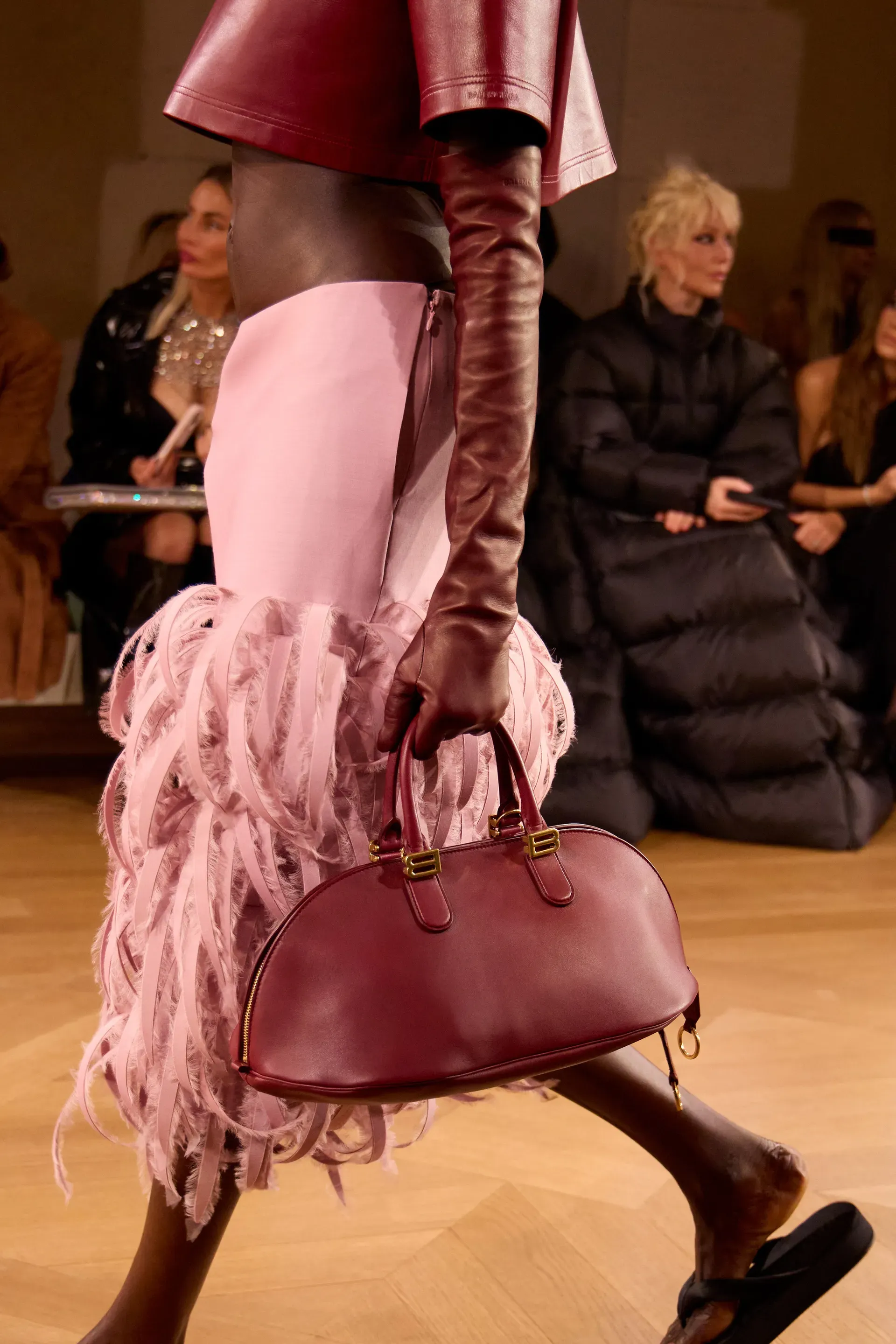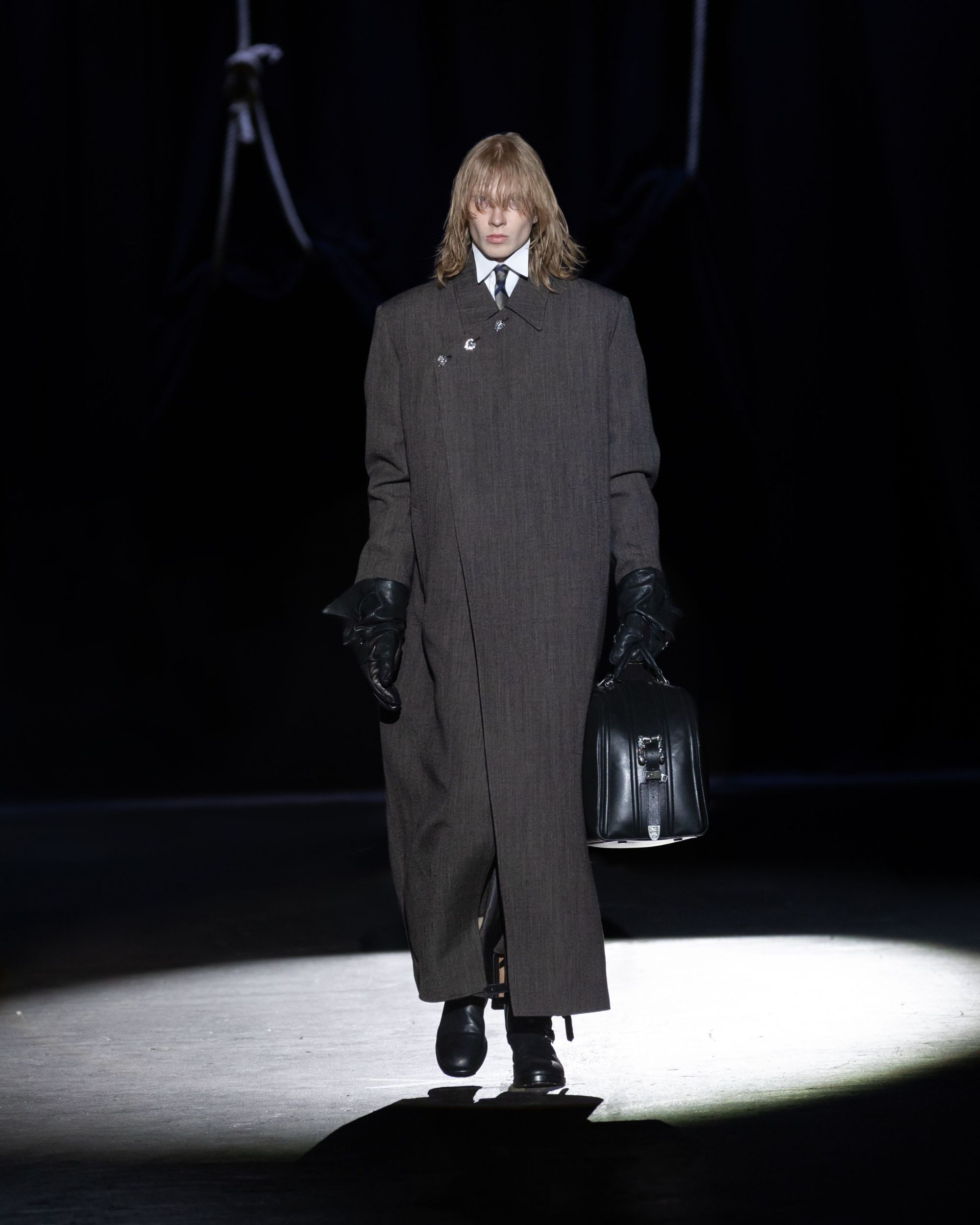 In both cases, the glove interacted with the rest of the look through overlaps with other elements that highlighted it. No longer a simple cover but part of the broader “mechanism” of the final look. A detail also seen in the FW25 shows of Auralee, Enfants Riches Déprimés and Tom Ford. Its reduced dimensions (we're talking obviously about look details) are compensated by the fact that hands are usually one of the most evident parts of another person. The fetish charm of the glove also concerns the meanings of hiding them.
