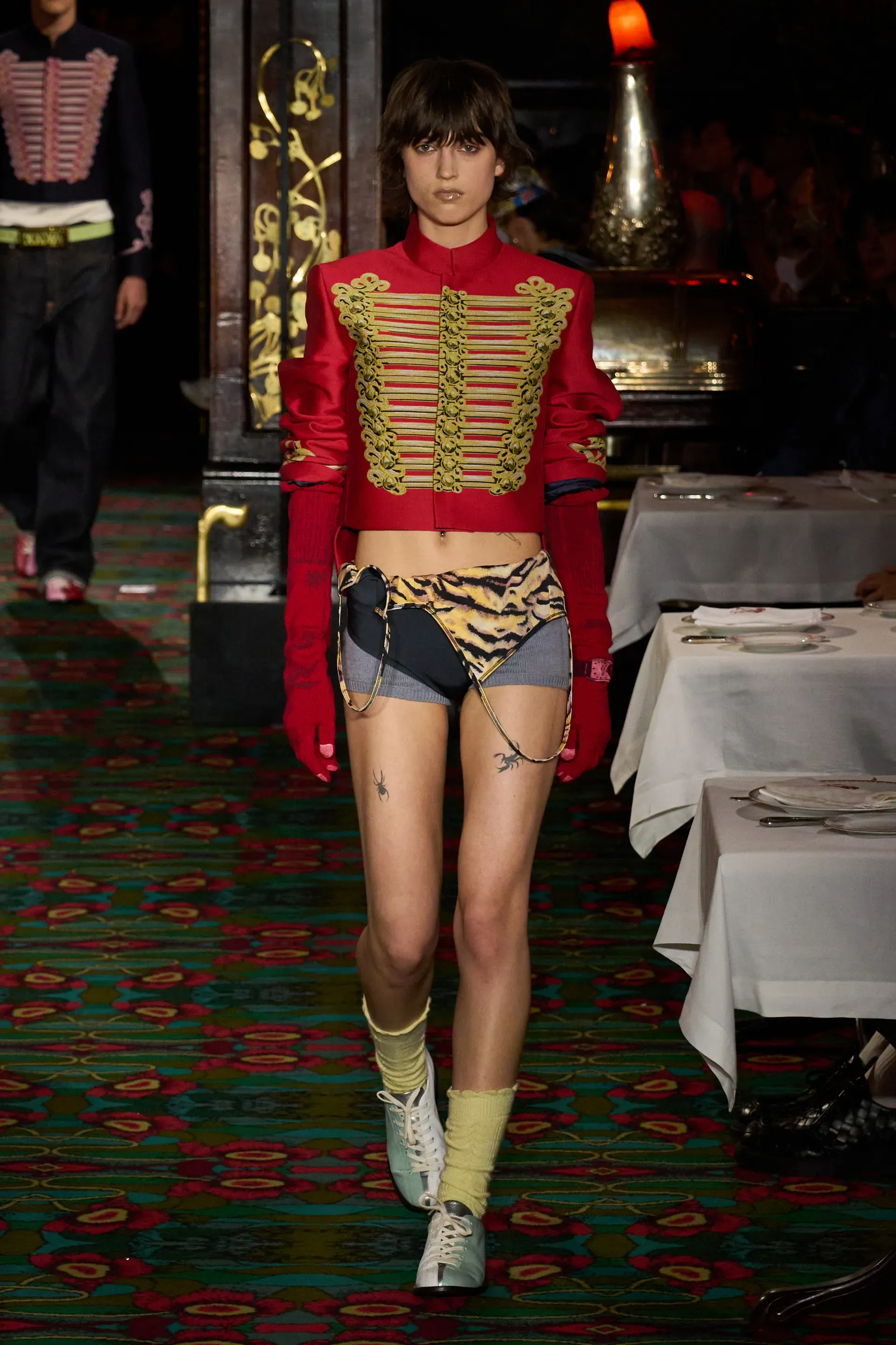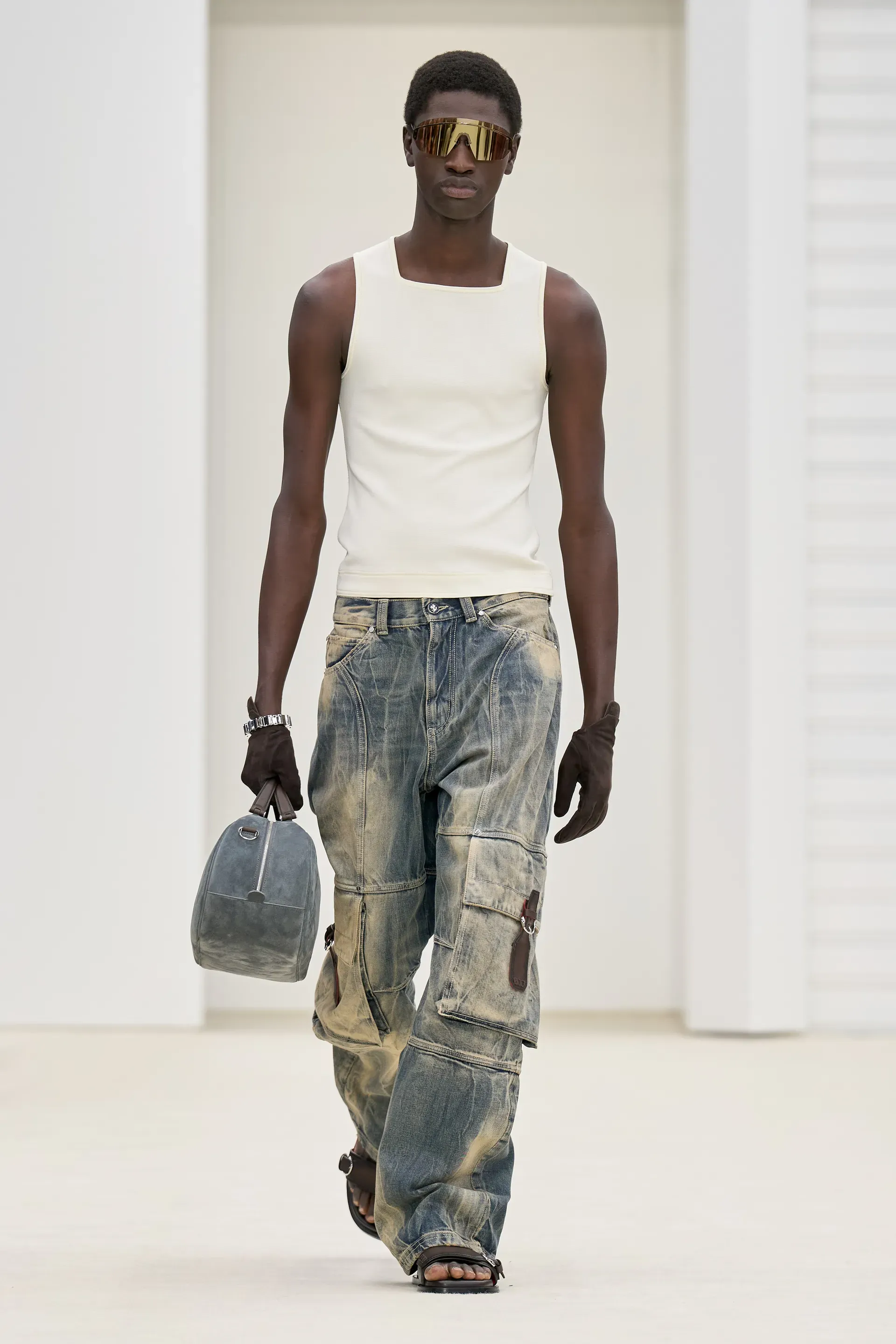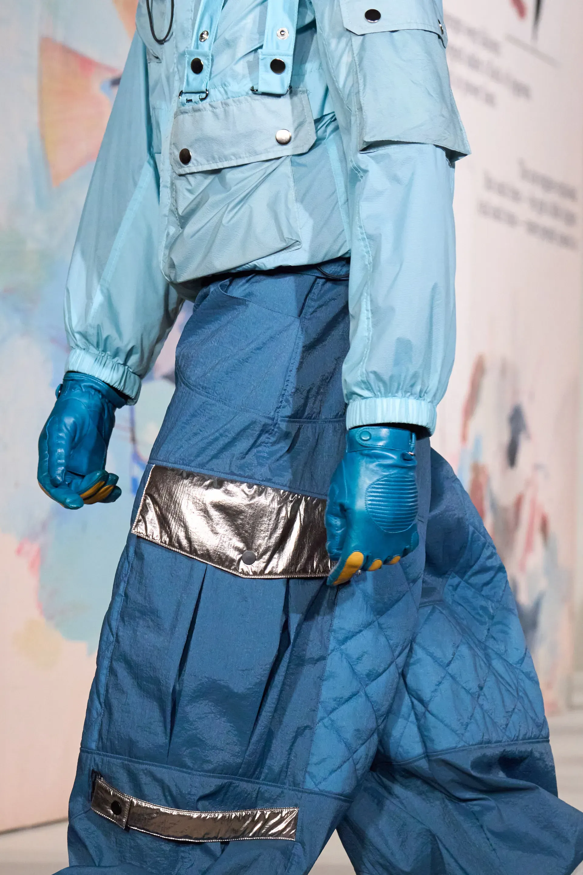 In both cases, the glove interacted with the rest of the look through overlaps with other elements that highlighted it. No longer a simple cover but part of the broader “mechanism” of the final look. A detail also seen in the FW25 shows of Auralee, Enfants Riches Déprimés and Tom Ford. Its reduced dimensions (we're talking obviously about look details) are compensated by the fact that hands are usually one of the most evident parts of another person. The fetish charm of the glove also concerns the meanings of hiding them.
