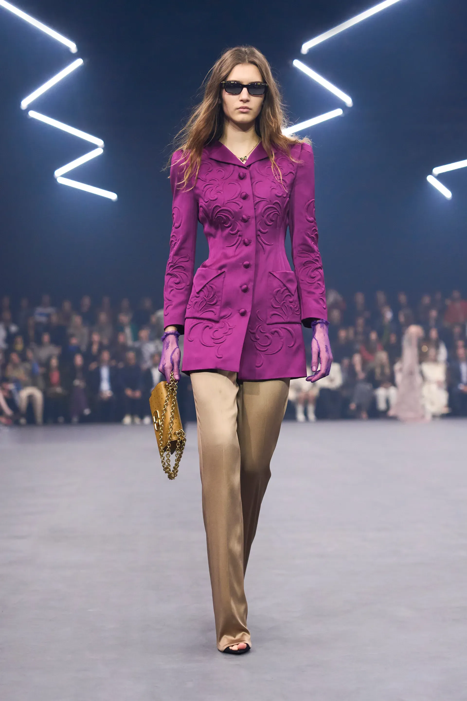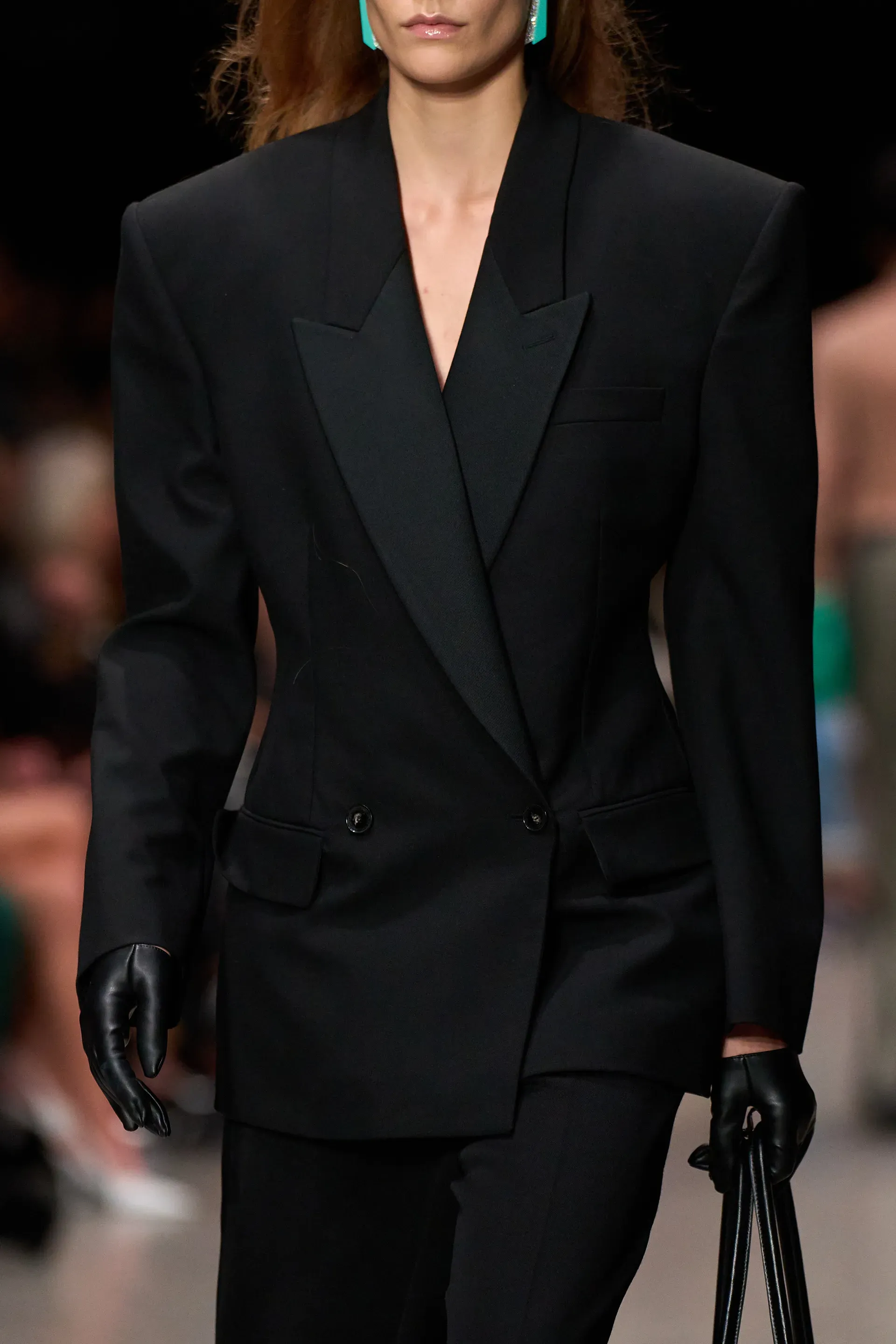 In the men's FW25 show of Saint Laurent, the one with formal suits dropped into gigantic cuissards or paired with leather pants, all the models wore slightly longer-than-normal black leather gloves, but their presence was highlighted by the fact that the shirt cuff was longer and rolled up over the jacket sleeve. A "crumpled" effect that often returned to give movement to monochromatic or formal looks. For the subsequent women's show, the trick returned, but this time the glove was flared, with a slightly vintage line, and this time it was the dress sleeve that slipped inside it.
