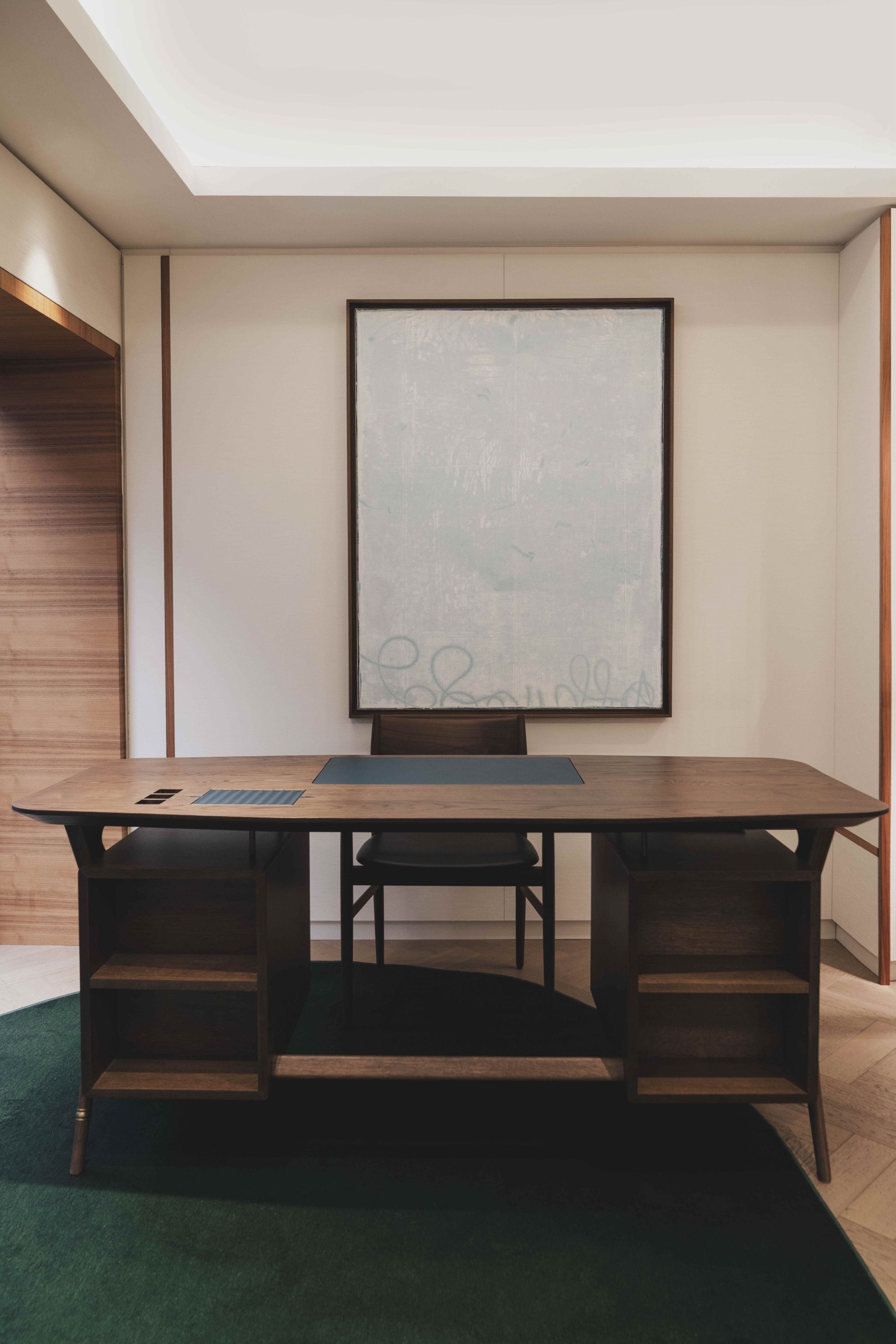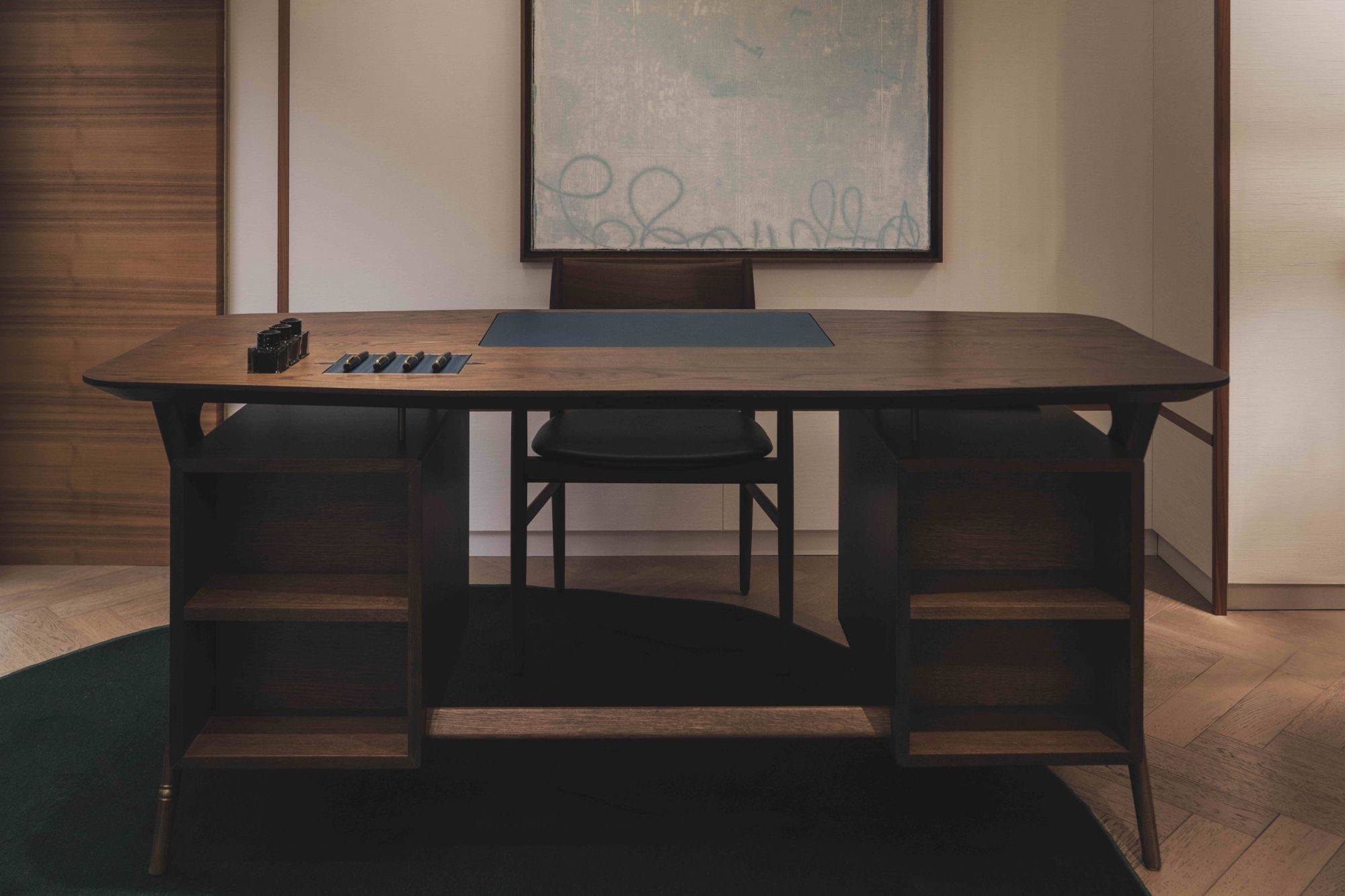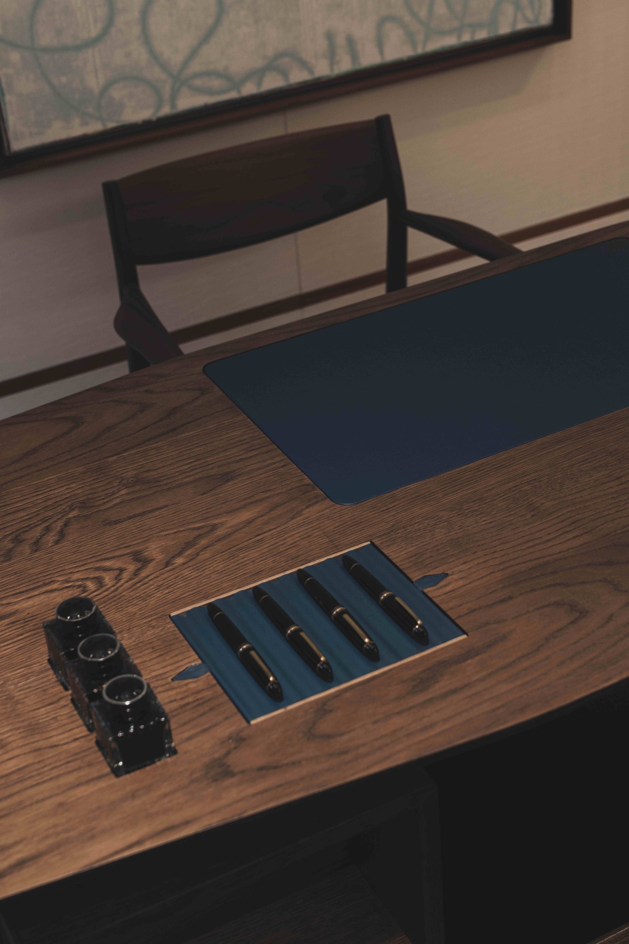 The journey also coincides with the presentation of the new Montblanc Desk, designed by Marco Tomasetta: a desk that transforms the creative space into an object of high craftsmanship. Soft lines inspired by 1950s Italian design, American and European oak, leather inserts from the Soft Collection, lined drawers with a key lock, and a poetic detail—the three Meisterstück rings reinterpreted on one of the legs. «A desk is not a piece of furniture,» says Tomasetta. «It is a space where inspiration takes shape.»