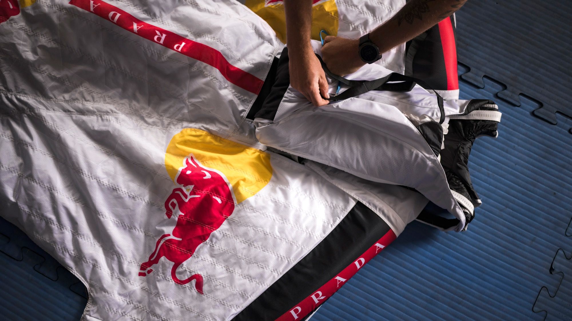 The new adrenaline-fuelled collaboration between Prada Luna Rossa and Red Bull With a wingsuit for pilot Peter Salzmann