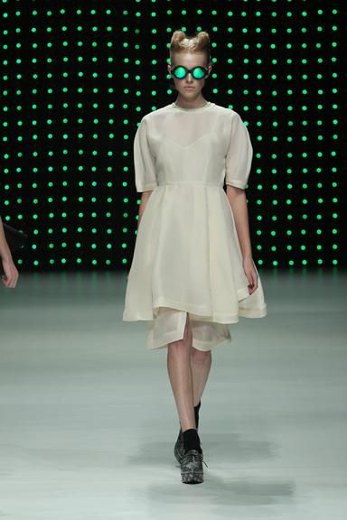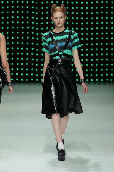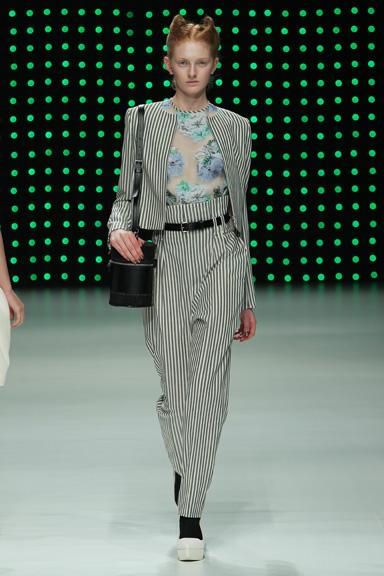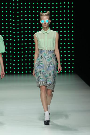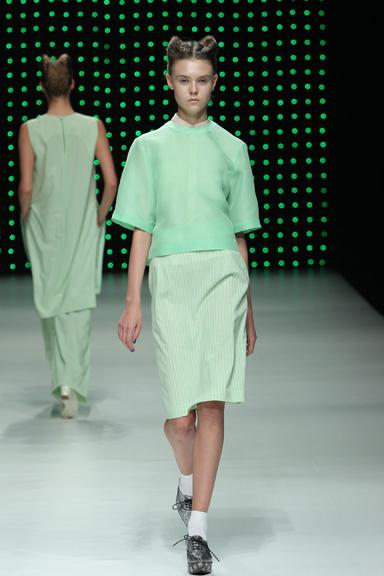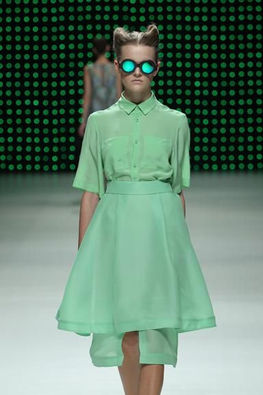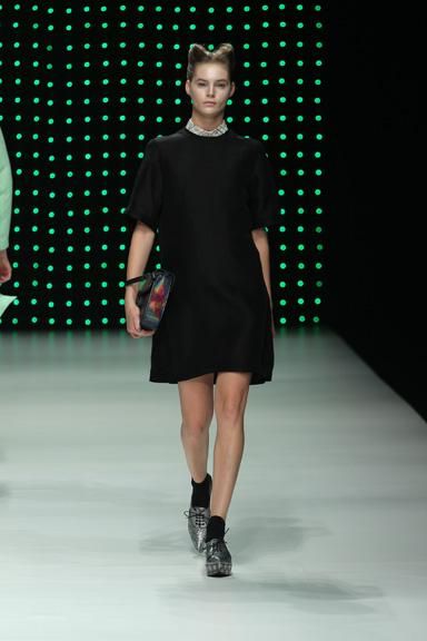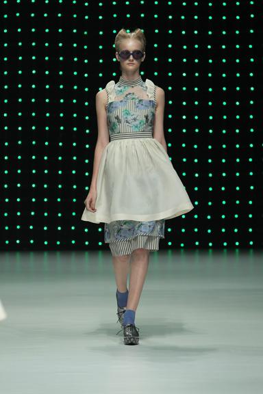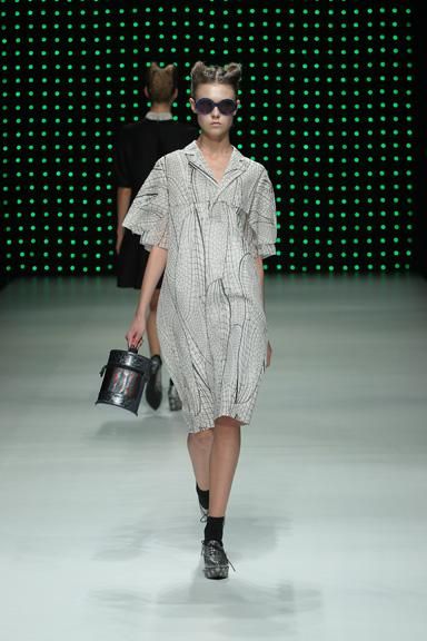 G.V.G.V. è un marchio giapponese fondato nel 1999 da Mug, giovane fashion designer diplomata alla Kusawa Design School. Il brand è ormai diventato una delle più interessanti realtà nipponiche, grazie ad una visione di moda in cui convivono linee e forme femminili e più androgine. Un look un po’ tomboy è anche quello della collezione estate 2013,Insectopia, che si ispira, per la scelta dei tessuti, delle stampe, dei colori e delle silhouettes, agli insetti delle foreste tropicali. Il nero, il verde sorbetto e l’arancione sono i protagonisti assieme a delle stampe che richiamano il mondo selvaggio delle foreste. Se le forme riprendono quelle delle pupe, i tessuti, iridescenti, splendono come il corpo di uno scarabeo, introducendo un mood lievemente futurista. G.V.G.V. riesce nel difficile compito di farci amare gli insetti o, almeno, una parte di essi.