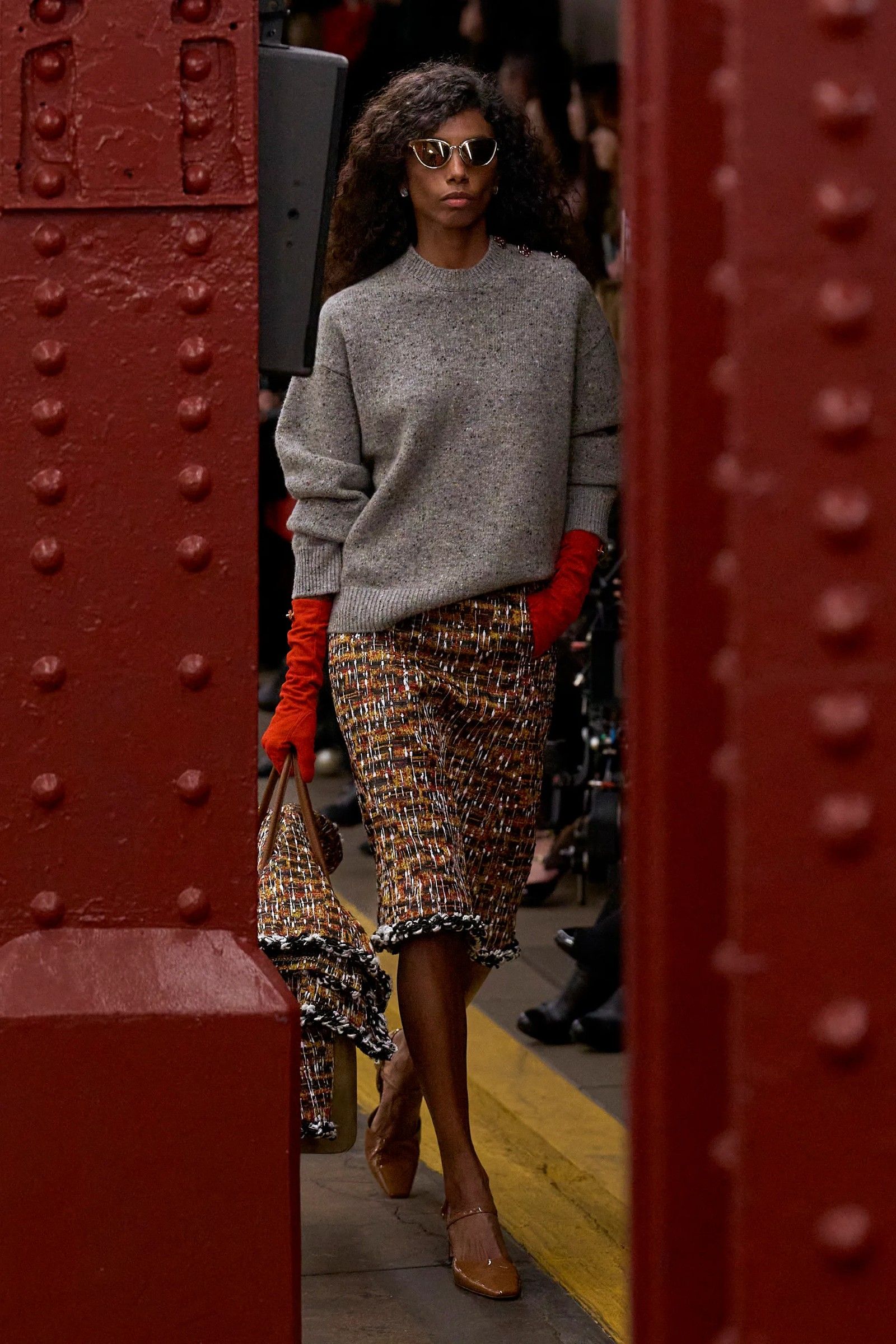 In that sense, the opening look was symbolic: a beige quarter-zip, jeans, pearls, and of course a chain-strap bag. But the standout detail was the classic Chanel tweed jacket — not worn, but nonchalantly tossed over the bag. As if to say that in this new phase of the brand, the classics remain classics, but comfort gets its say too. Chanel for every day, every day for Chanel.