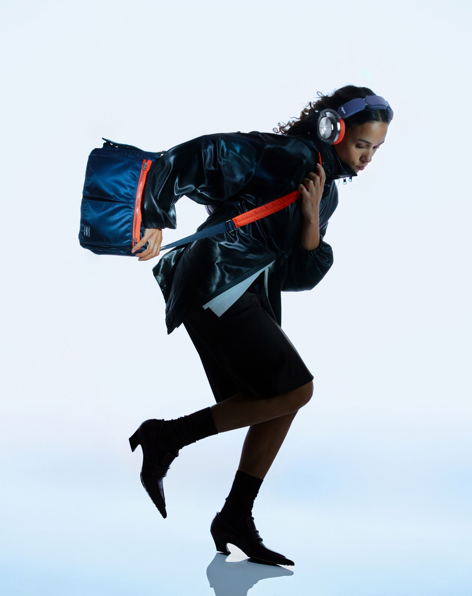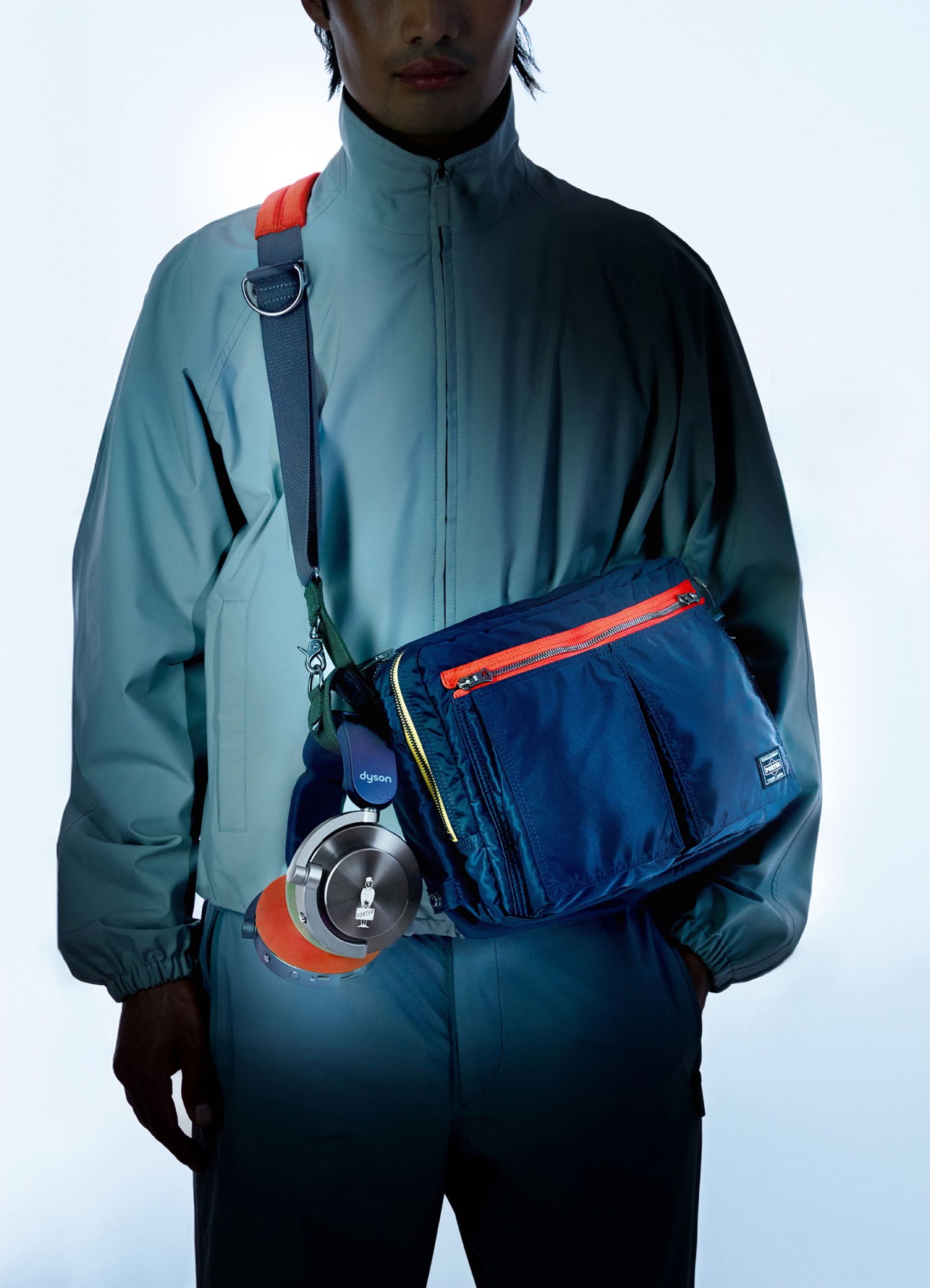 As Dyson points out, the collaboration represents a special page in the history of the British company. «Since they're all handmade, Porter only produces 5000 to 10 thousand bags a year. We're so lucky to be able to have 380». The uniqueness of the collaboration goes beyond production numbers: the headphones, equipped with customizable elements such as the pads, match the bag, which echoes the device’s orange, blue, and yellow tones. All elements, from the palette to the very silhouette of the headphones and bag, contribute to the retro-futuristic design bridging the late '80s and early '90s that Dyson has always been passionate about. «They really stand out when you wear them on the street, there's something simple yet fun and well-engineered about them. I guess these three things create a retro feel that's also contemporary», explains Jake Dyson, adding that the union between high tech and aesthetics has always been an integral part of the electronics company’s DNA.