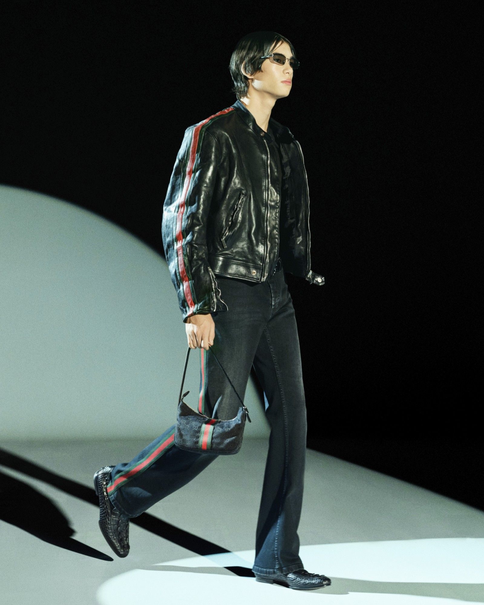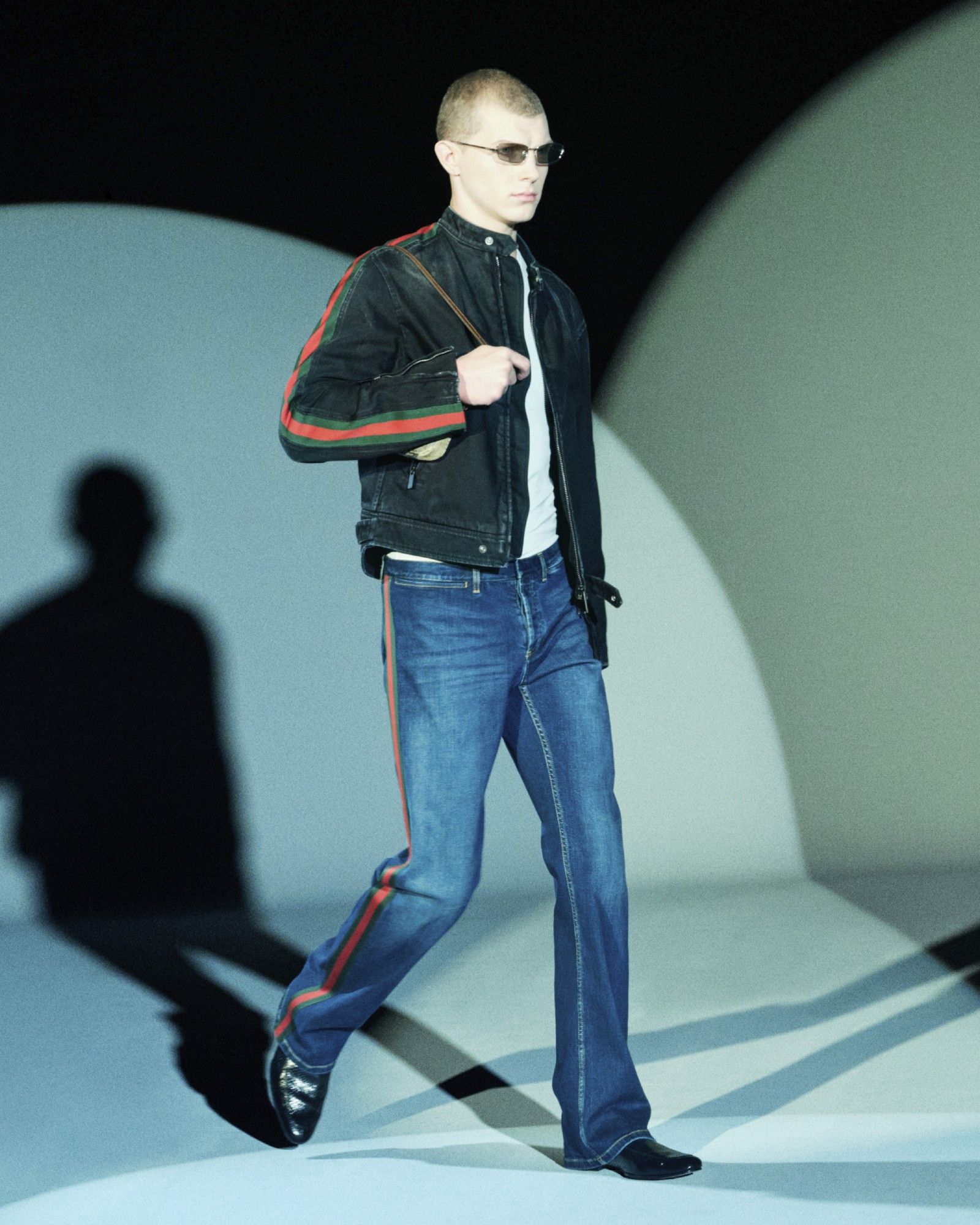 - The collection is built on a systematic deconstruction of Gucci classics: many jackets and tailored suits abandon buttons in favour of minimal clips, jeans eliminate visible seams, pockets and closures, coats acquire the lightness of a peignoir, travel suits the comfort of pyjamas, and evening dresses the impalpable consistency of underwear.