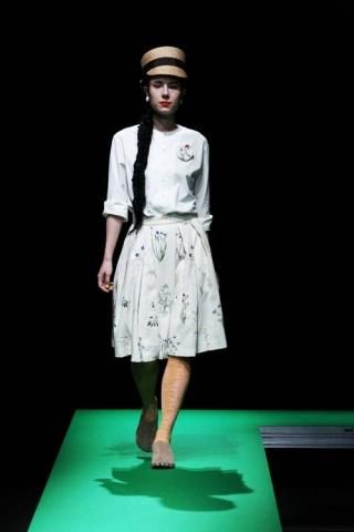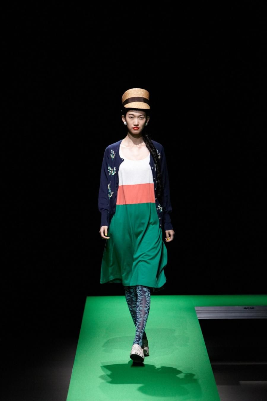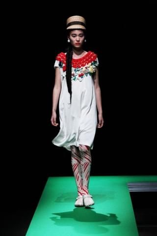 Everlasting Sprout, a Japanese emerging brand known for its special knitwear, presents Grass on the Roads, the spring-summer 2013 collection. An eccentric style that is often chosen and worn by many IT Asian girls on many streetblogs: a mix between a boho and a retro taste where strong colors and numerous layerings of cardigan, dresses, trench coats, skirts and cargo pants reinforce the label’s distinctive trait. Stripes, polka dots and flowers constitute the decorative centre that takes a childlike flavour and animates the creations of Everlasting Sprout. Soft lines, belts cinched at the waist, straw hats on the head make the models on the catwalk seem lively and romantic girls who are wavering between bohemian and bon ton looks. A warm seasons to be lived with joy and happiness.