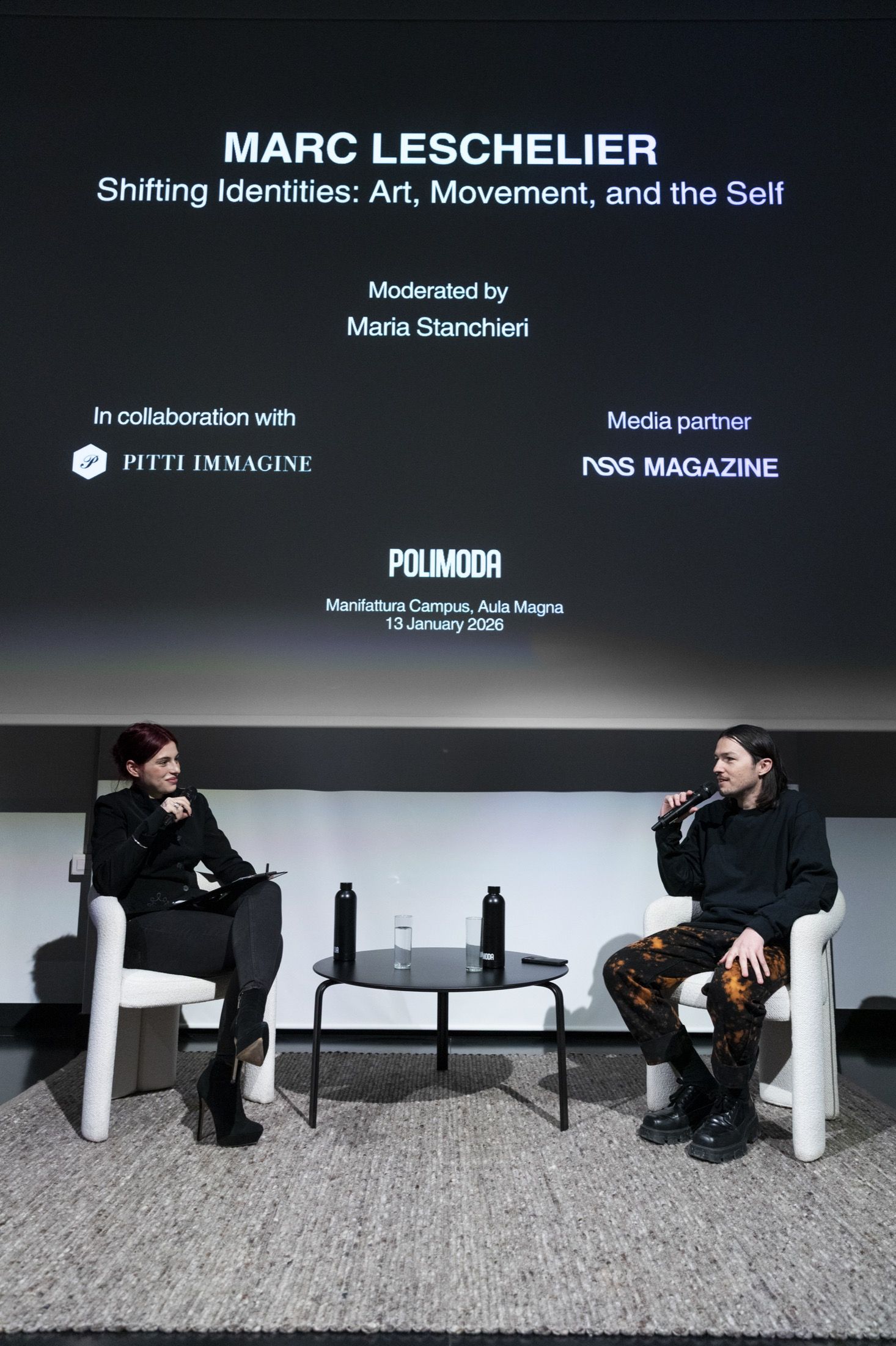 On the occasion of Pitti Uomo 109, Polimoda presented The Designer & The Artist, an activation that took the form of two guest lectures dedicated to the relationship between movement, identity, and creative transformation. Acting as a common thread between the two talks was the moderation by the editorial team of nss magazine, which shaped a cross-disciplinary dialogue between fashion, art, and architecture, far removed from promotional logic and closer to research and critical analysis. The Polimoda student community participated enthusiastically, asking questions related to the topics covered in the lectures.
