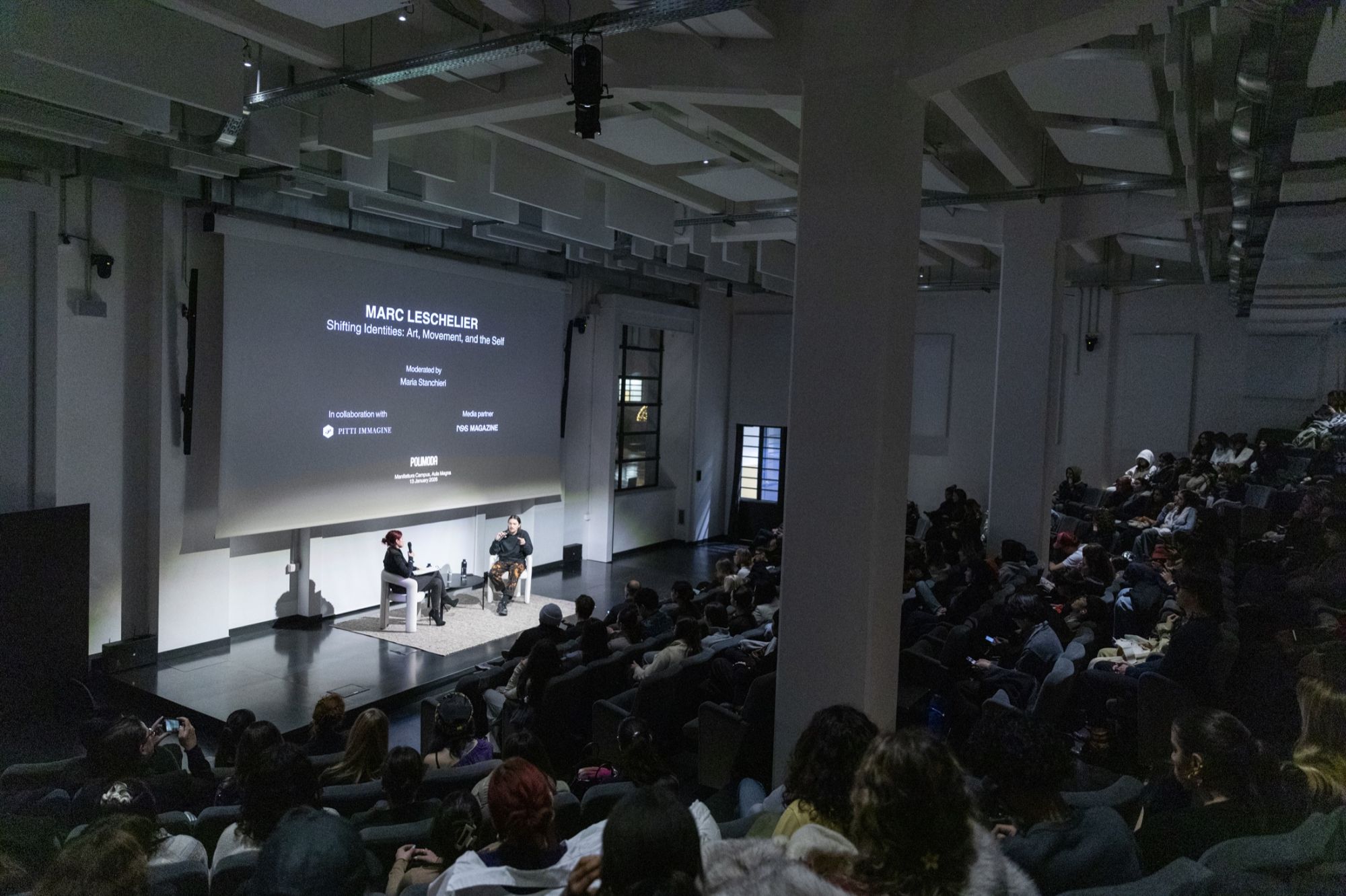 On January 13rd Shifting Identities: Art, Movement, and the Self by Marc Leschelier took place. The lecture, which officially opened the Pitti Uomo 109 week at Polimoda, explored a practice that rejects the idea of completion. The artist’s work focuses on construction sites, raw materials, and temporary structures, treating intermediate phases of building as spaces charged with meaning. The aesthetics of the unfinished emerged as a tool to reflect on identity as a fluid entity, constantly redefined by movement and context. During the talk, Leschelier addressed themes such as architecture as an inherited choice, building as a performative act, architecture as a form of resistance, and gesture as a device of transformation, questioning the role of the artist today and the origins of his intervention Ancient/New Site.