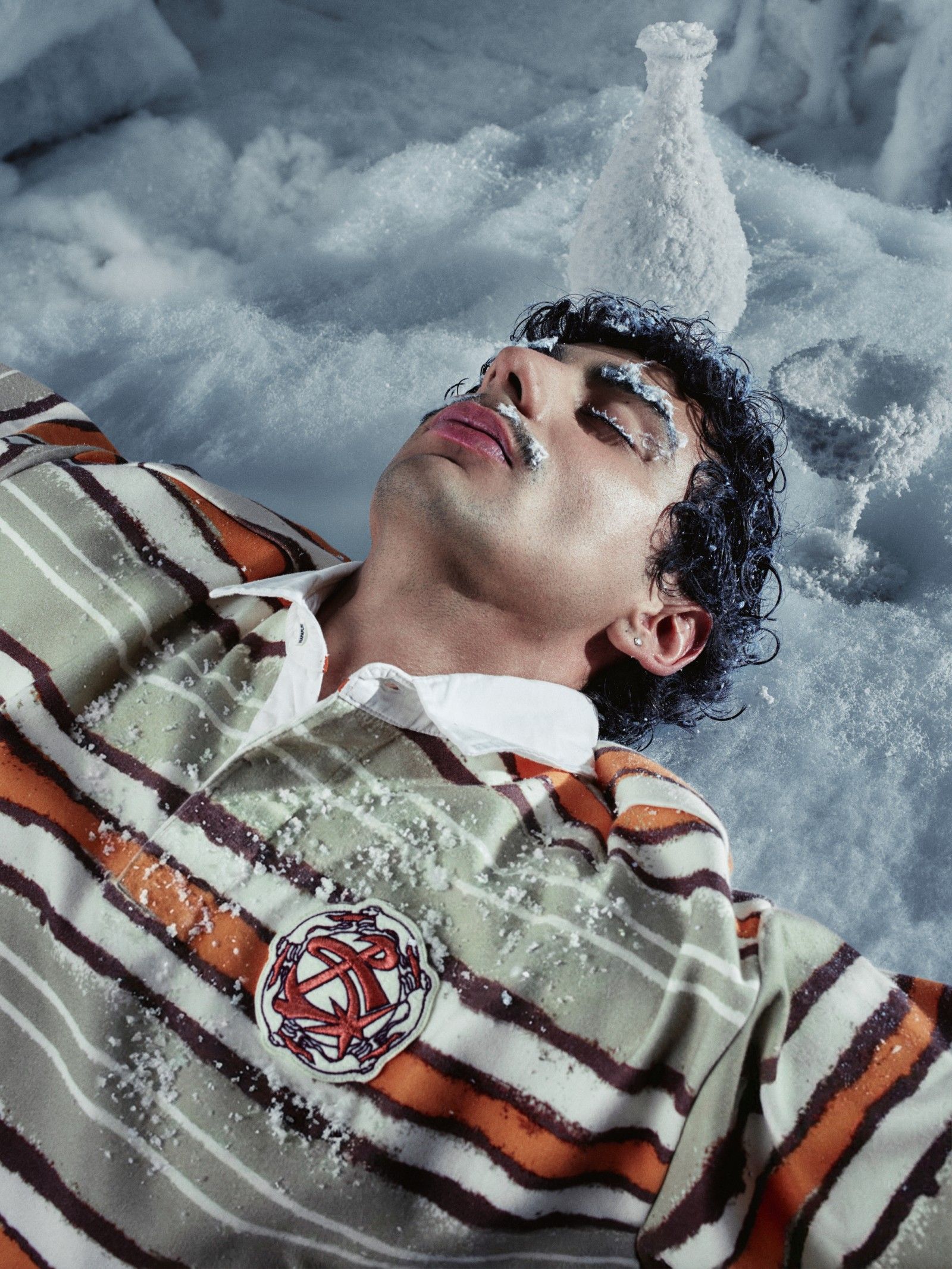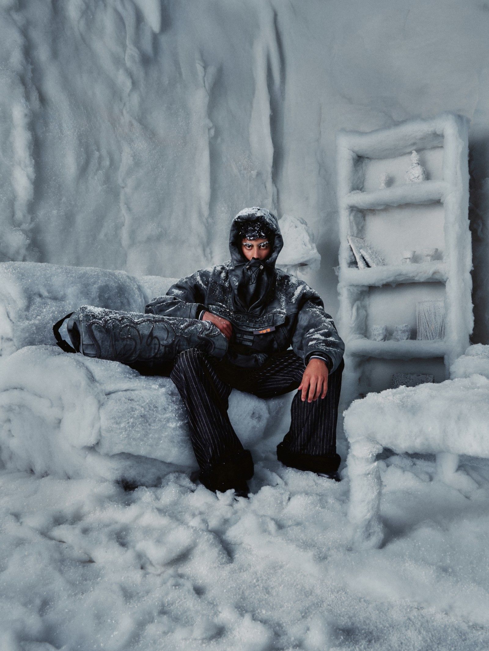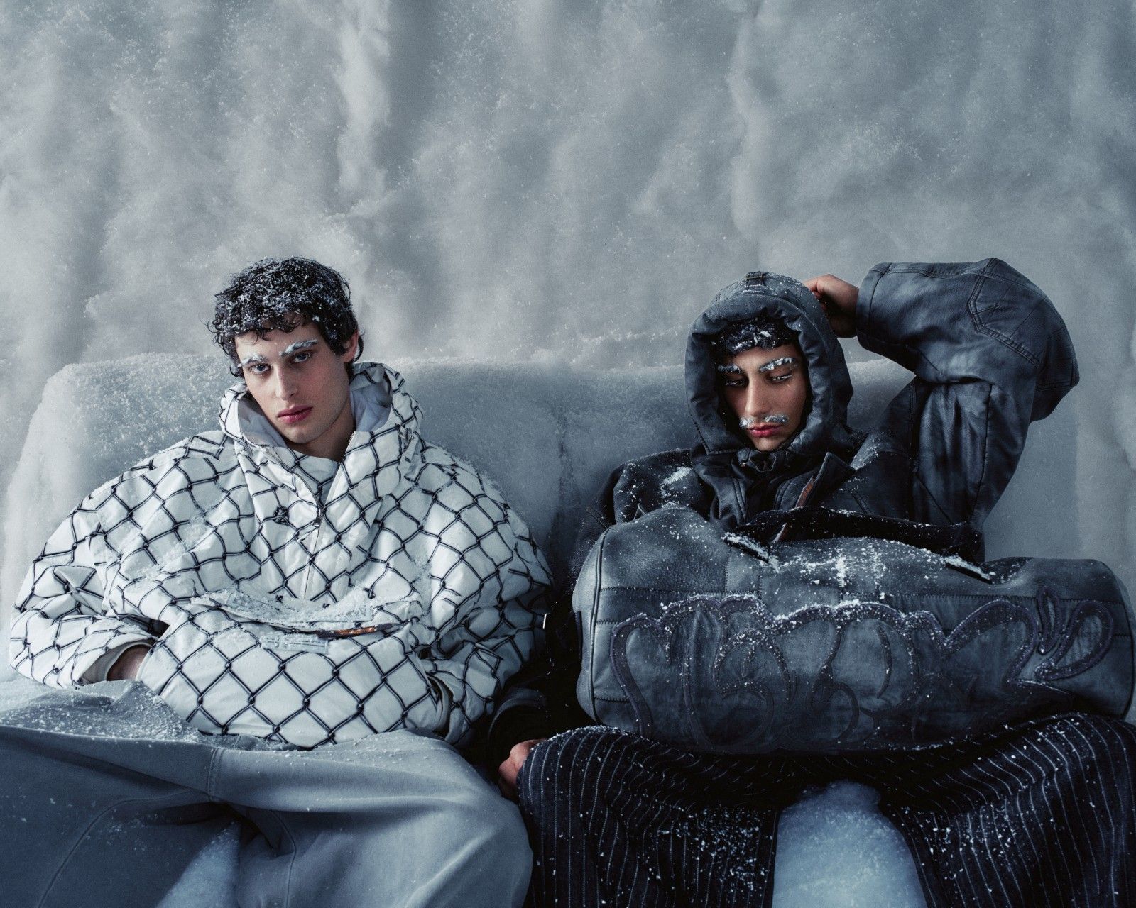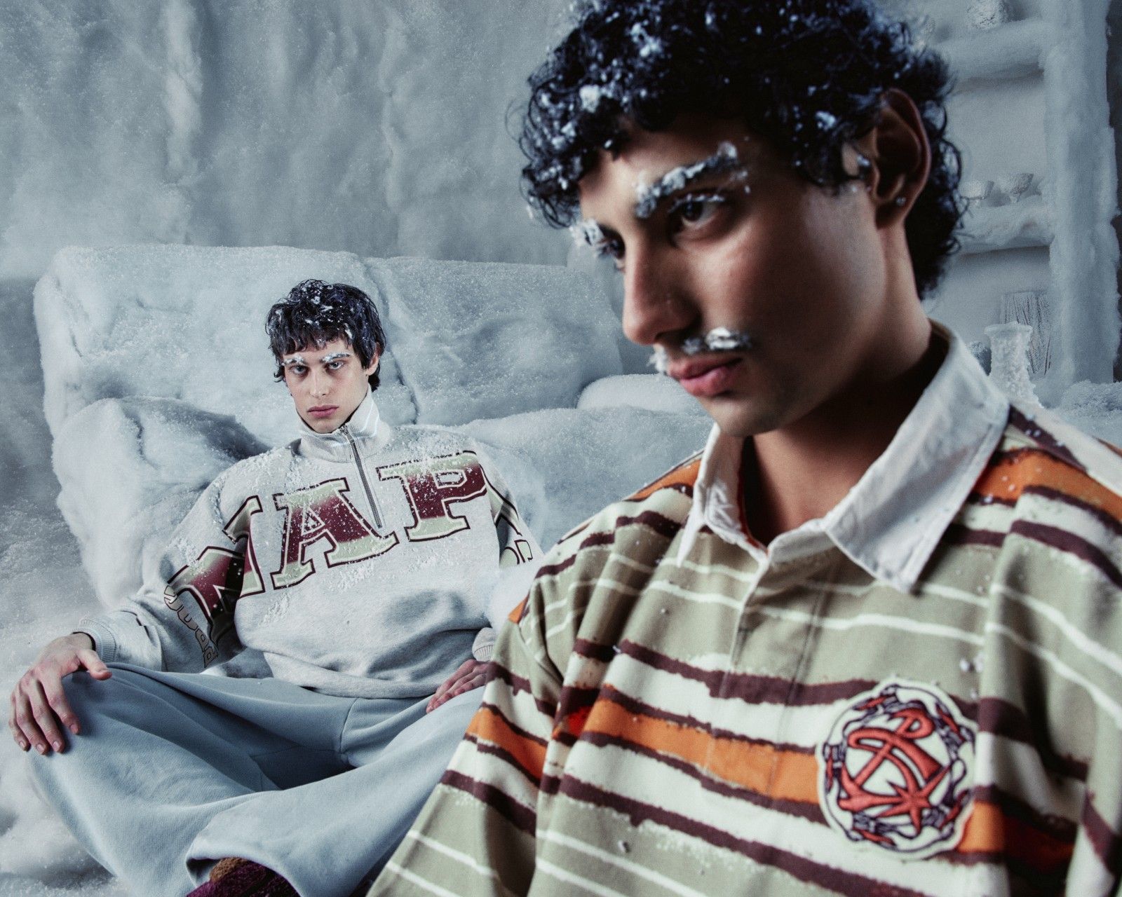 The outcome is a collection built entirely around tension and contrast. Napapijri’s signature pieces—such as the Skidoo, Rainforest, and Bering models—serve as the foundation and are radically reinterpreted. Classic silhouettes expand into oversized volumes, proportions are inverted, cuts become asymmetrical or deconstructed. A traditional striped polo gains urban edge through technical inserts and unexpected finishes. Outerwear pieces like jackets and anoraks preserve Napapijri’s engineering precision while adopting a more aggressive aesthetic, featuring pronounced layering, oversized zips, and texture play that bridges pure functionality with high fashion.