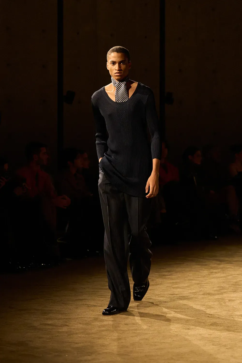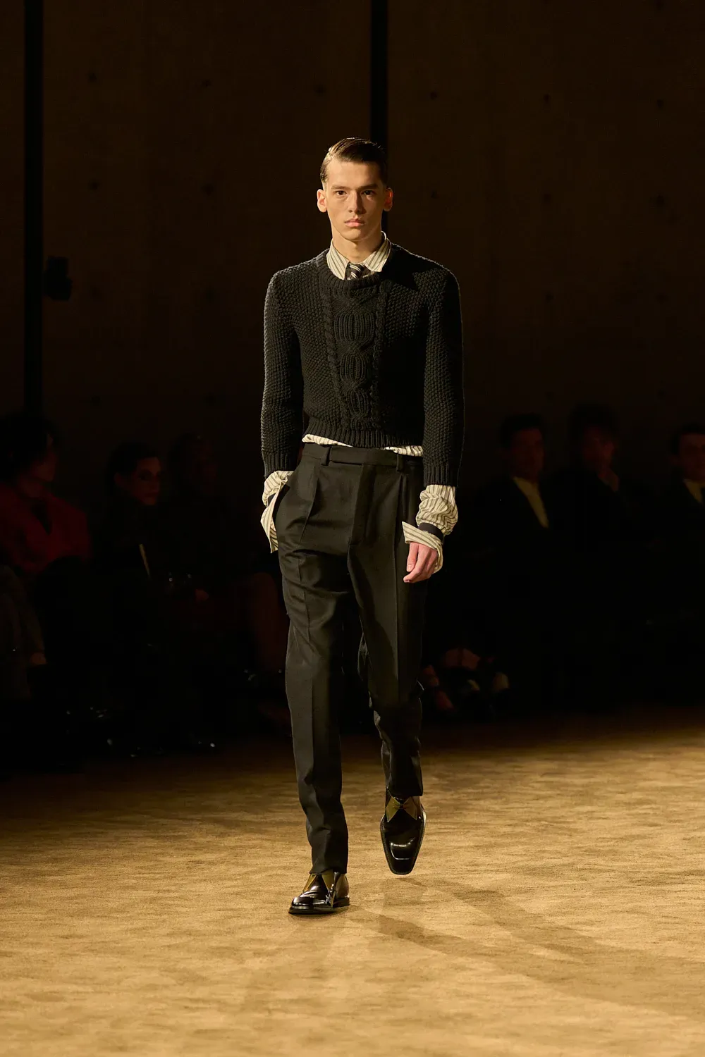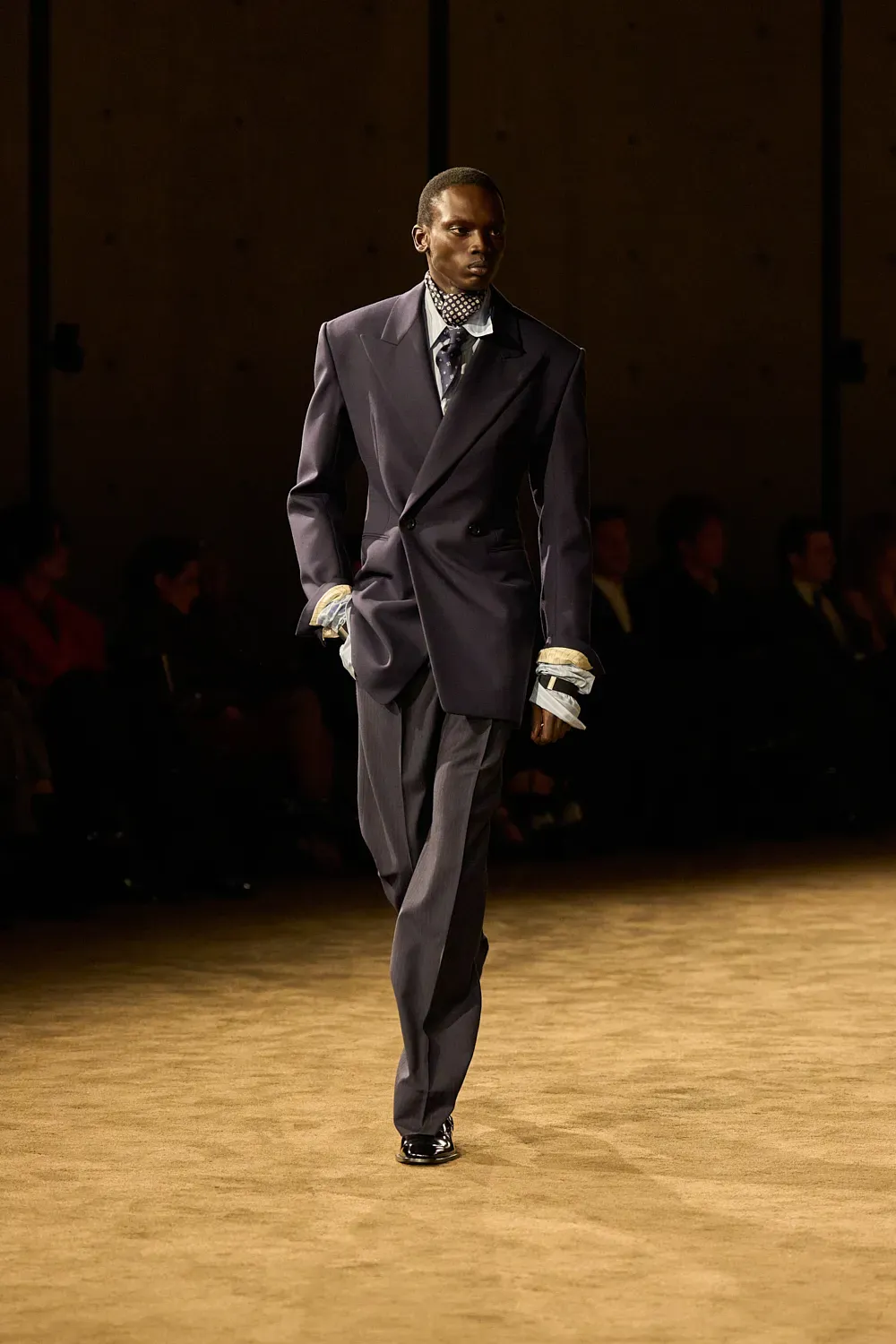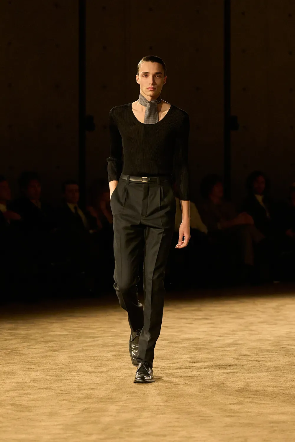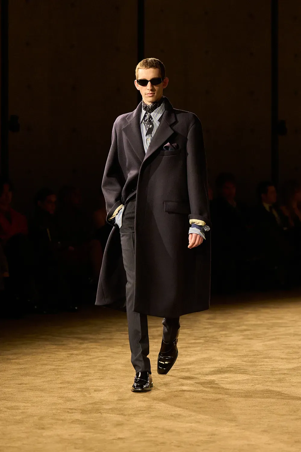 Almost ten years after the start of his creative direction, Vaccarello has finally established and consolidated the ideal look of his man. It is a look, as we said at the beginning, very precise yet open to many different options within its relative limitations. And yesterday it was all on display in the front row: the suits, the fur accents, the sunglasses, the ties and even a whole series of darkly vivid colors that can adapt to almost any personality. Making a suit not look boring is a real feat, which fashion observers often overlook.