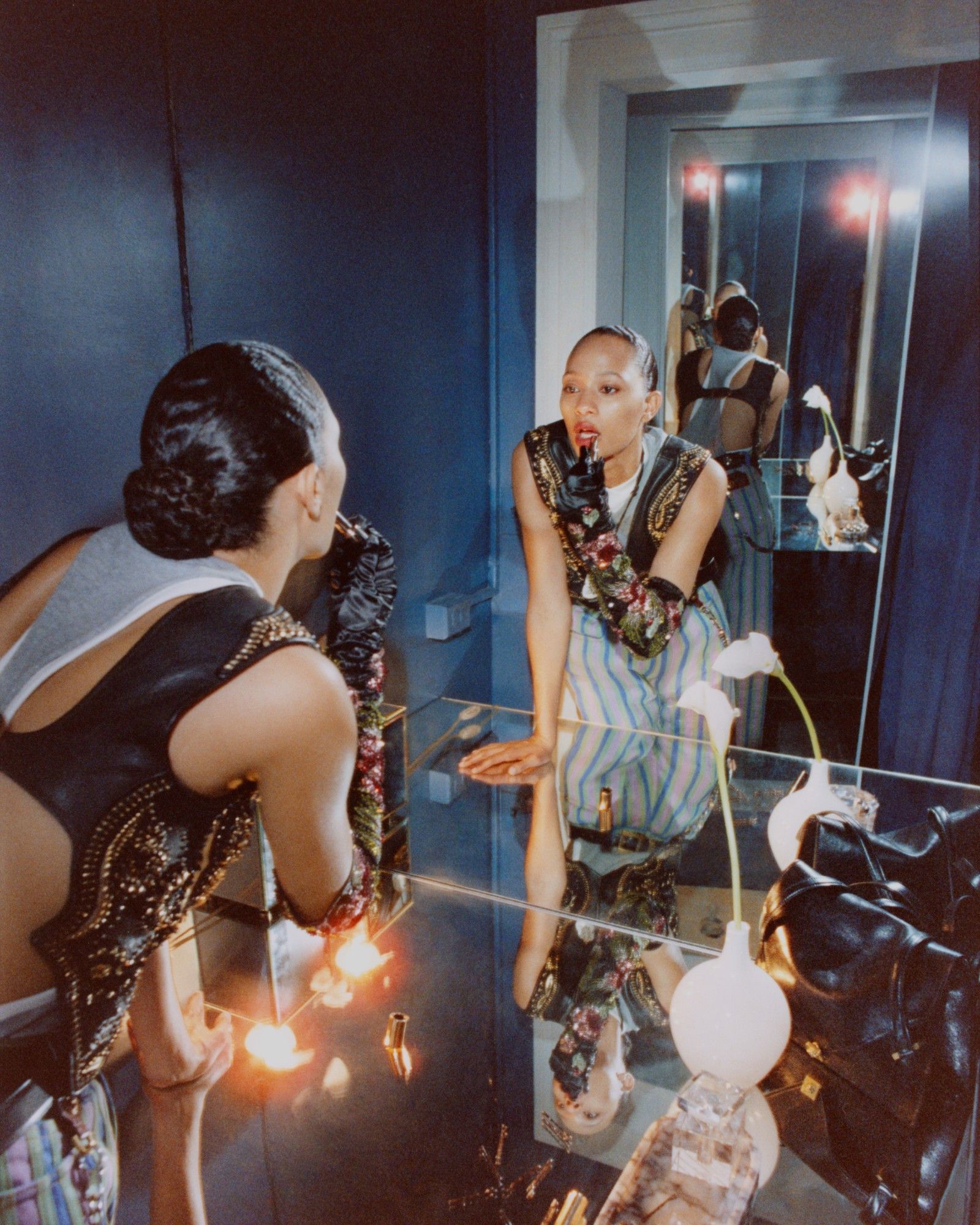 The campaign continues the Versace Embodied project presented before Vitale’s fashion week debut. The project was conceived as an ongoing “container” for artistic collaborations between the brand and various international artists and creatives across a wide range of disciplines. The goal was to create a unified image of the Versace spirit through a “polyphony” of viewpoints—and here that idea has been fully honored.