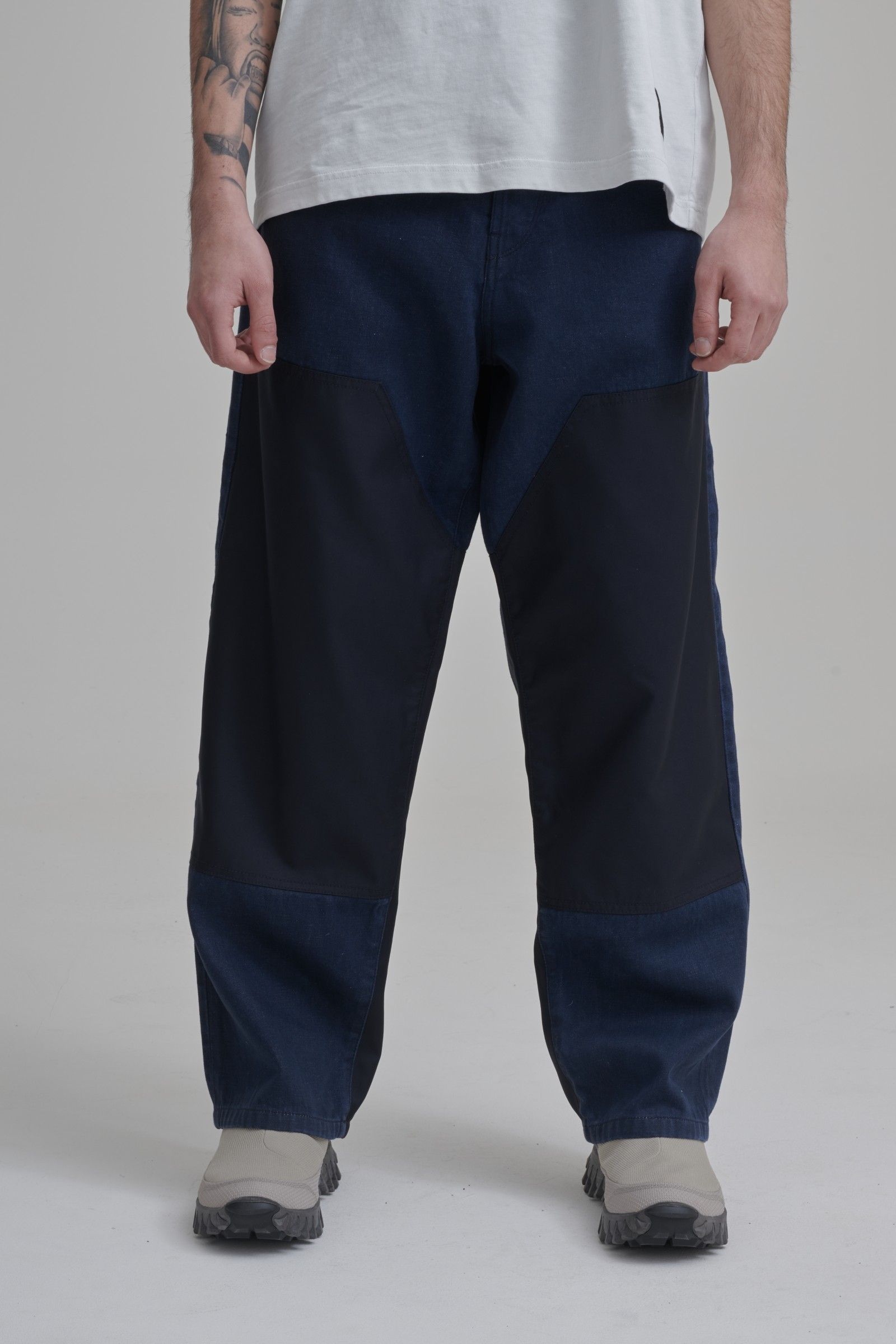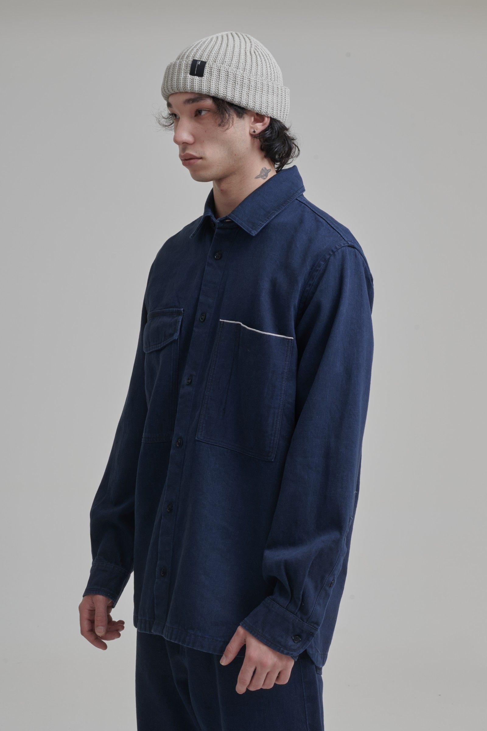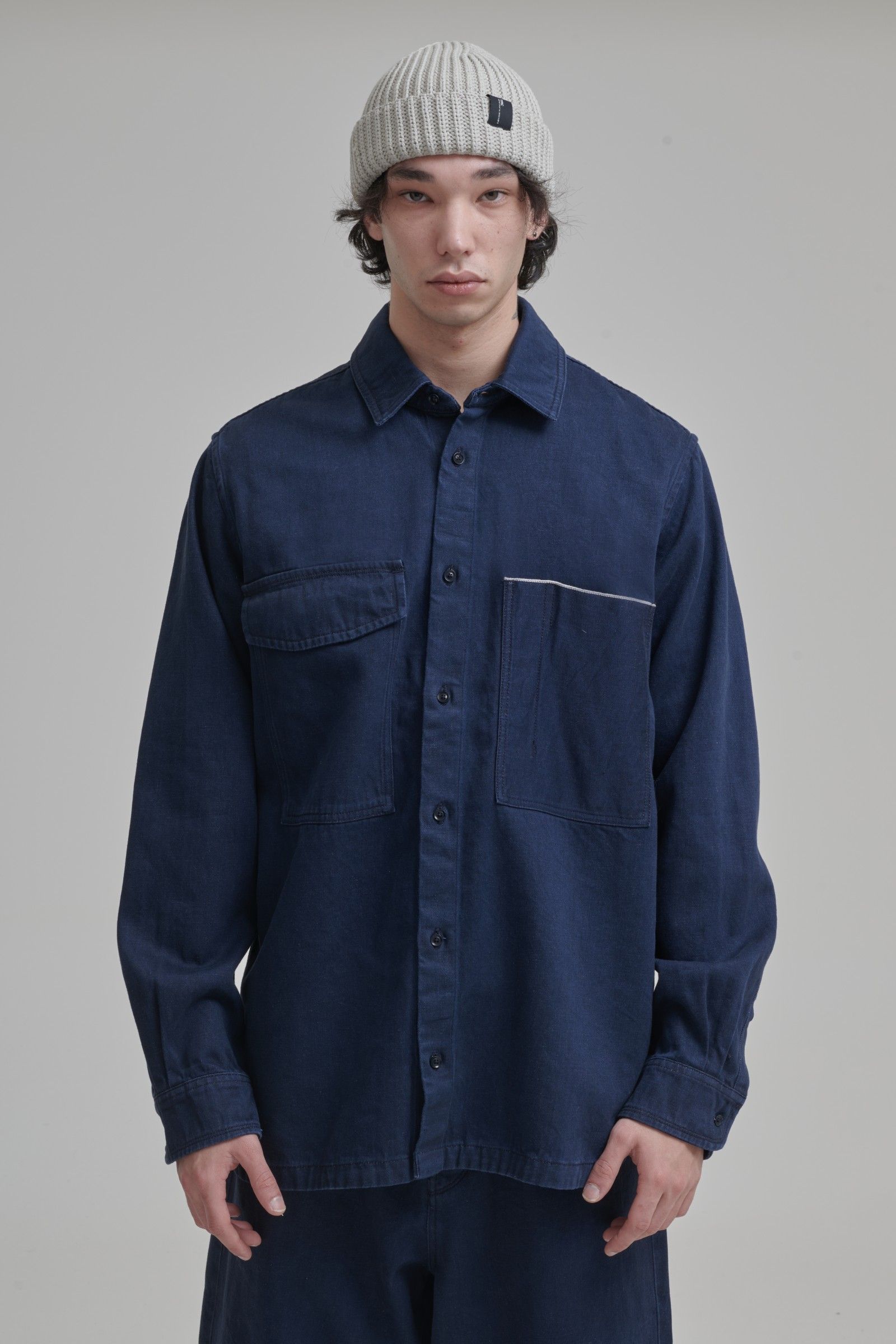 The collection is divided into two parts: an autumnal one, with warmer and more reassuring colors; and one inspired by winter. The first stands out particularly for the use of materials that envelop the wearer with an emphasis on comfort and the tactile aspect of the garments. The protagonist is heavy regenerative cotton in broken twill together with robust selvedge denim. On this base are layered vibrant oranges, earthy browns and indigo, all obtained with natural dyes.