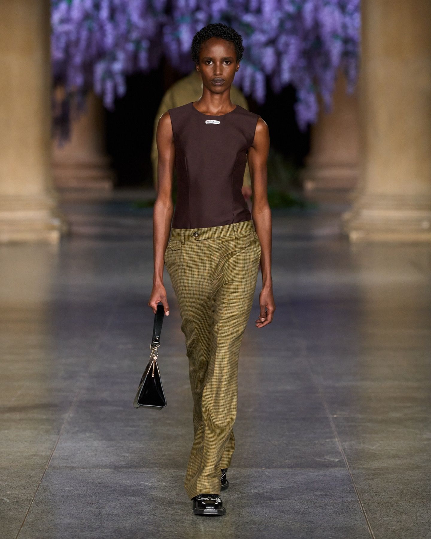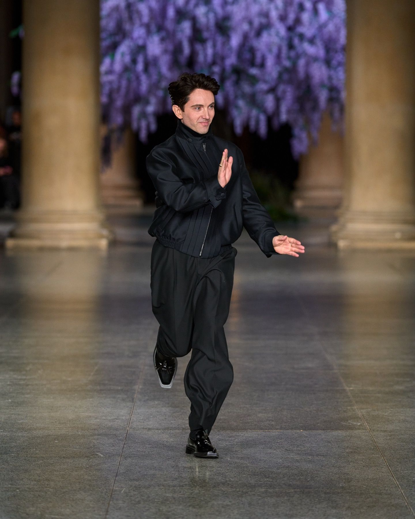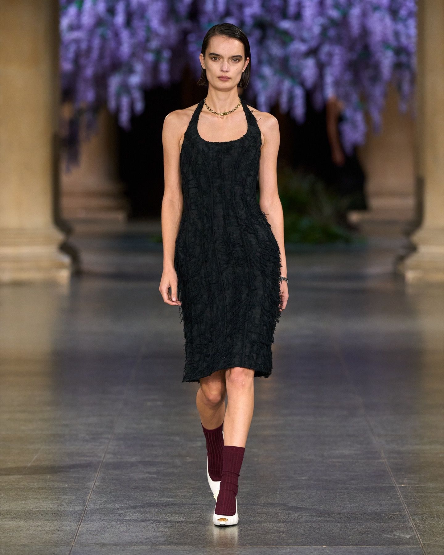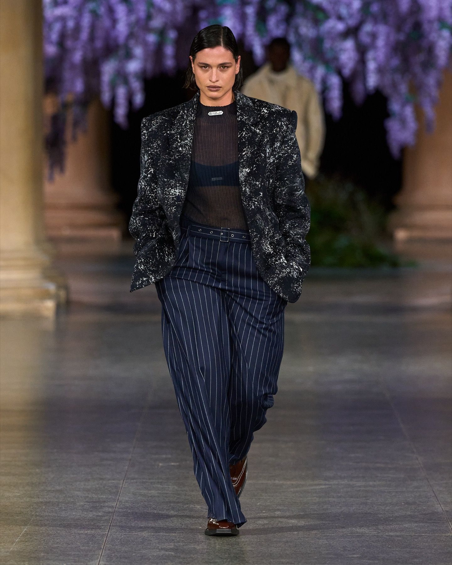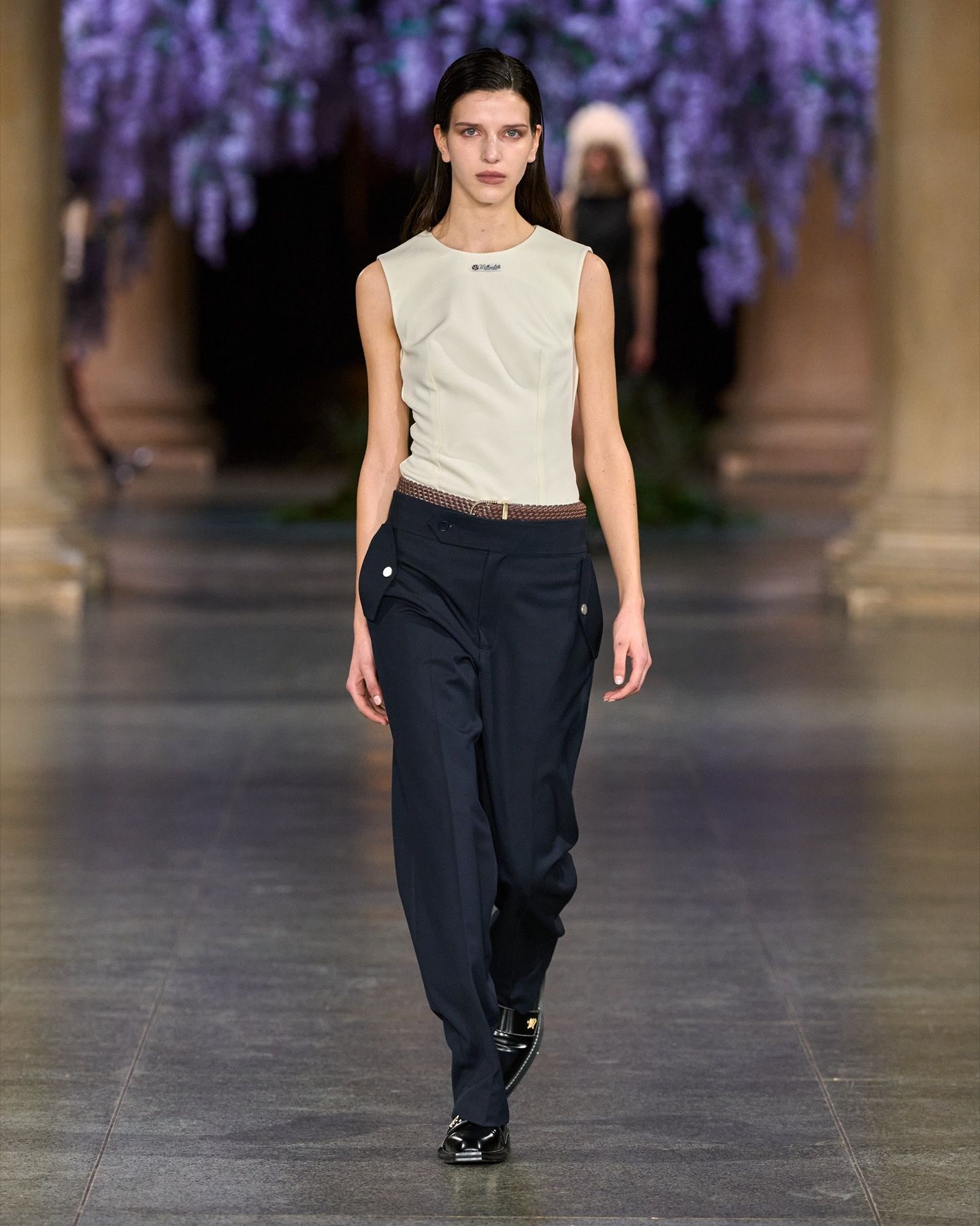 «Being in London for Fashion Week feels like a continuation of a journey», Fletcher explains. The city’s individuality and experimental spirit allow him to explore the language of Mithridate in a confident way, proving how heritage and contemporary influences can coexist as the brand settles into Borough. For Fletcher, the venue carried emotional weight. «Showing at Tate Britain felt like the right place to mark this chapter». Its quiet grandeur mirrored the story he wanted to tell. At the centre of the show space stood a wisteria installation, echoing motifs throughout the collection. «The wisteria symbolised roots taking hold» he says, framing the collection as a metaphor for establishment and growth.