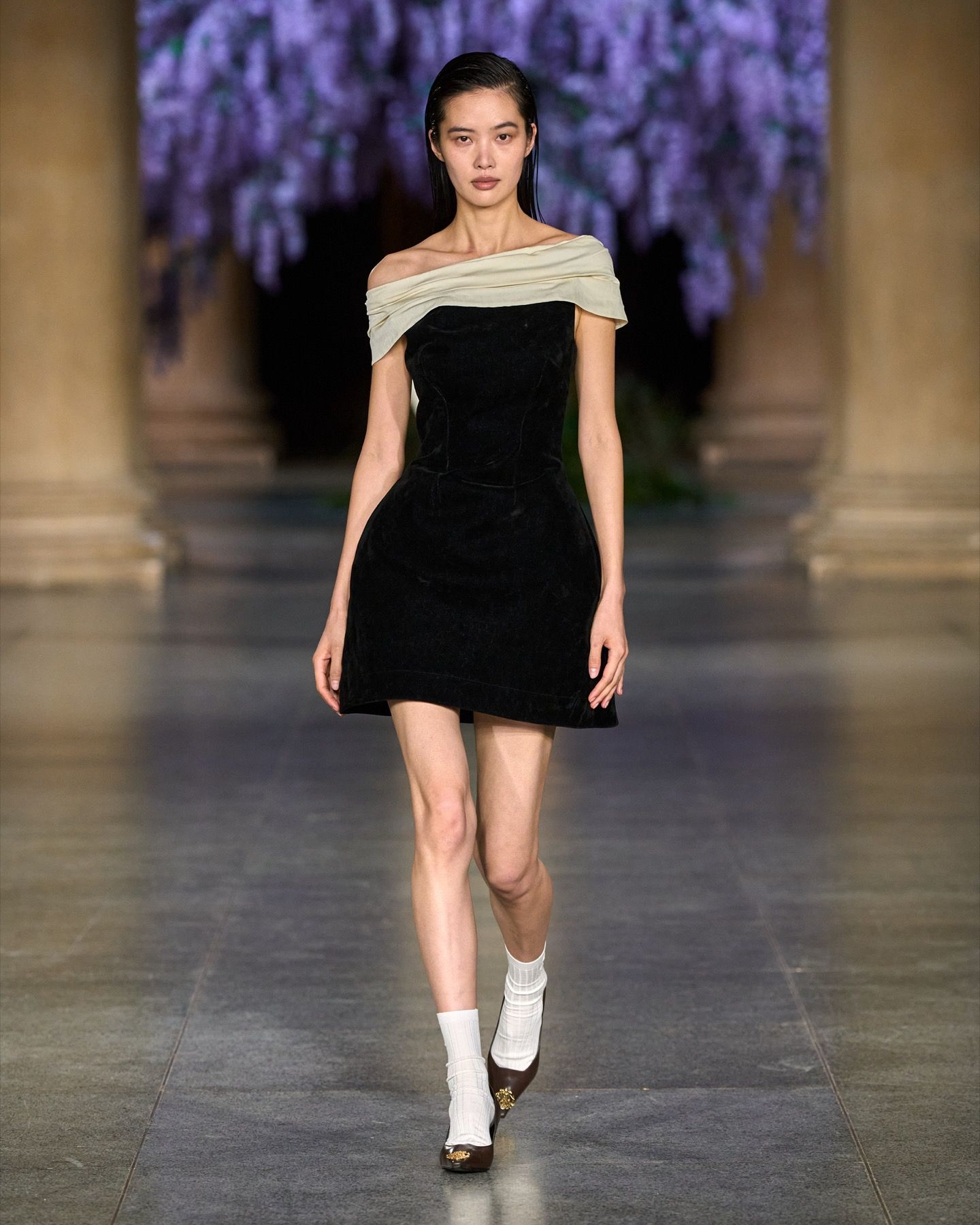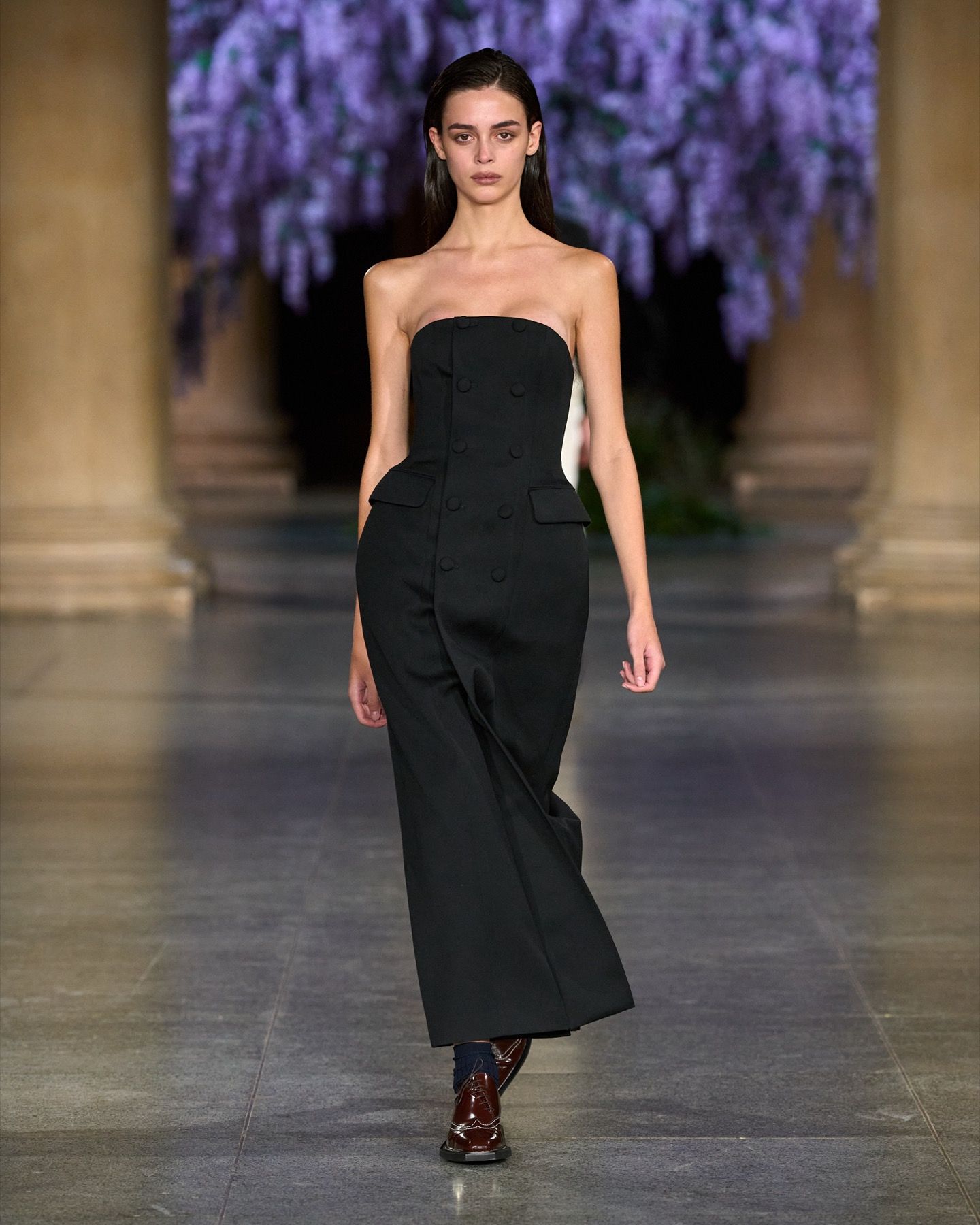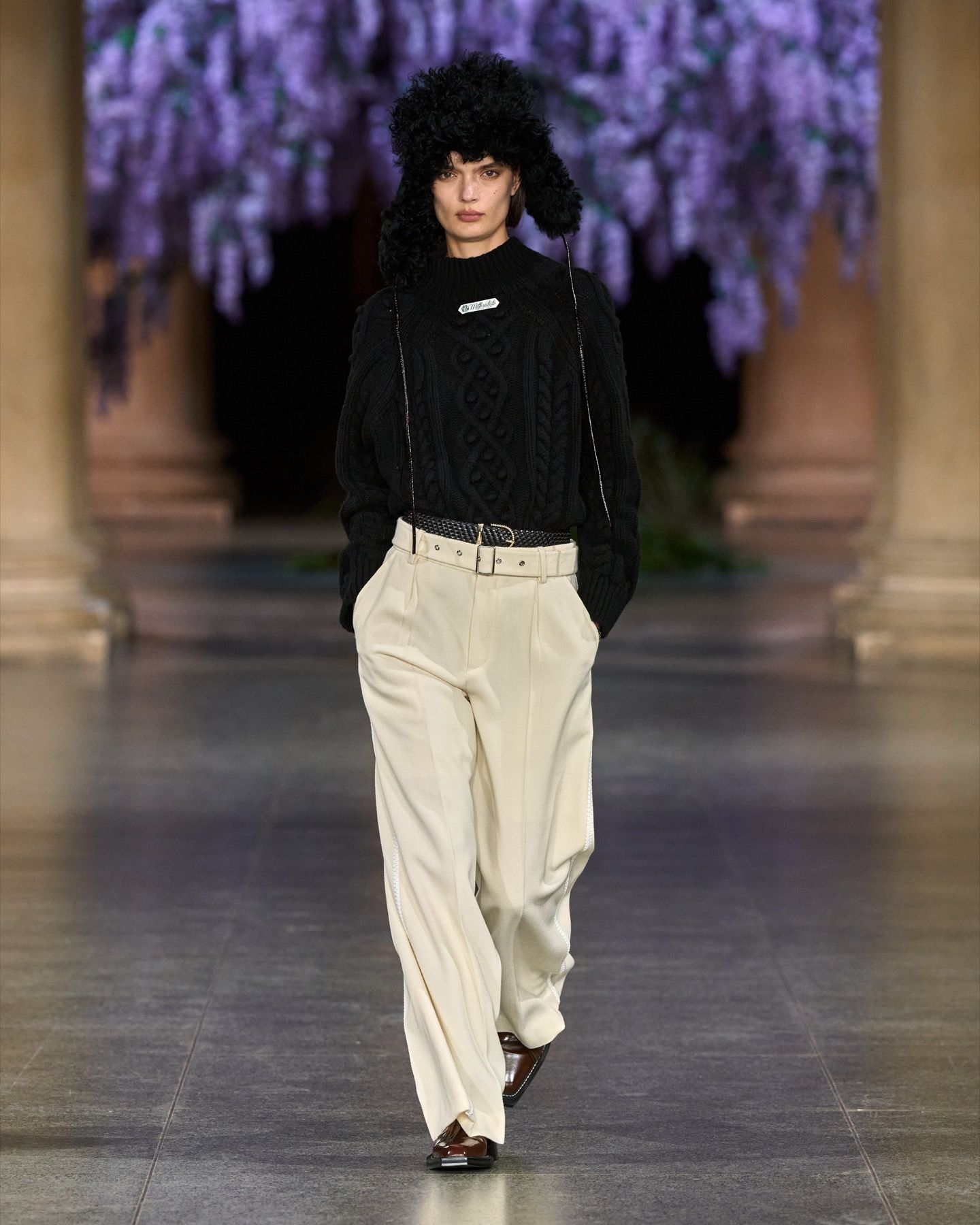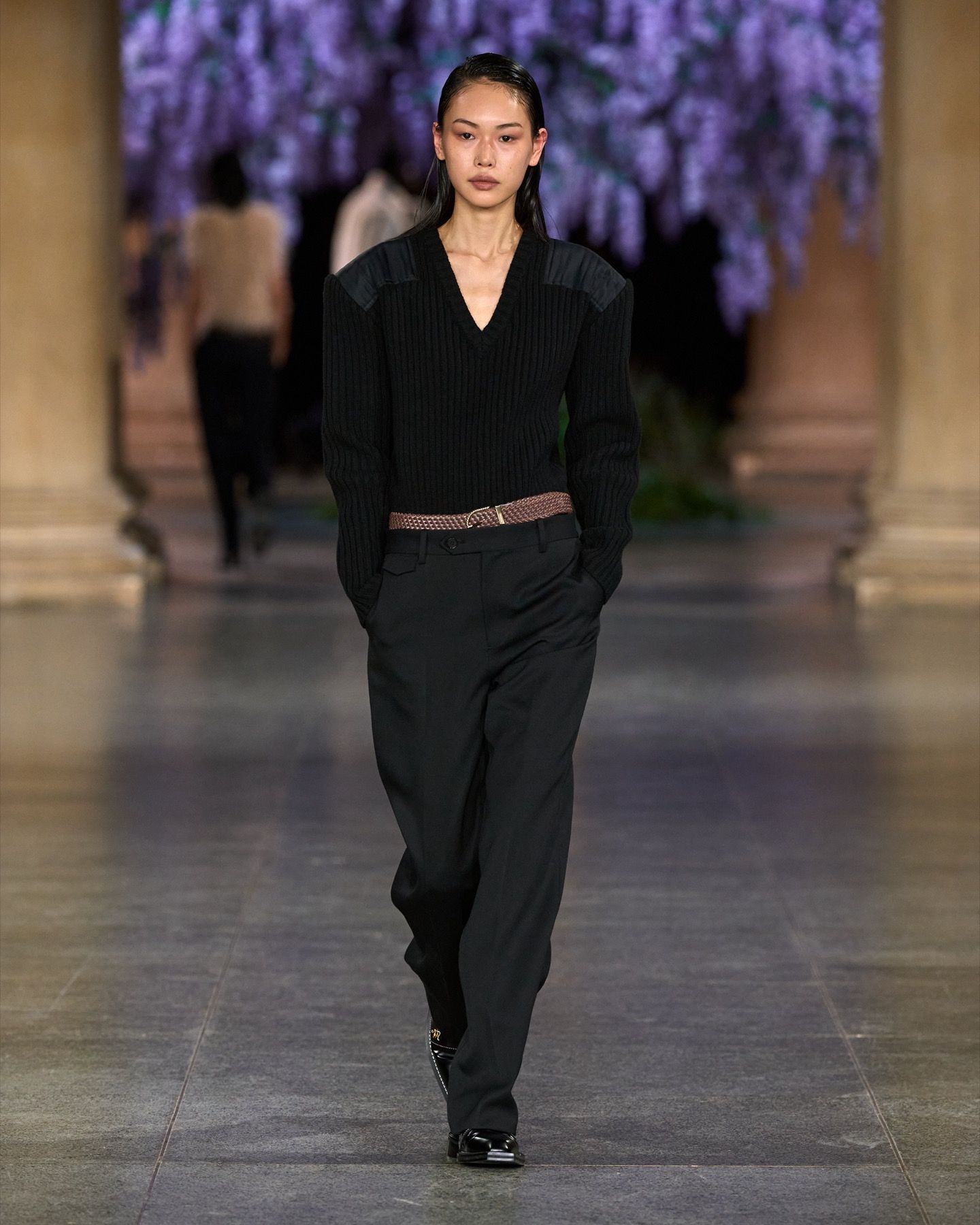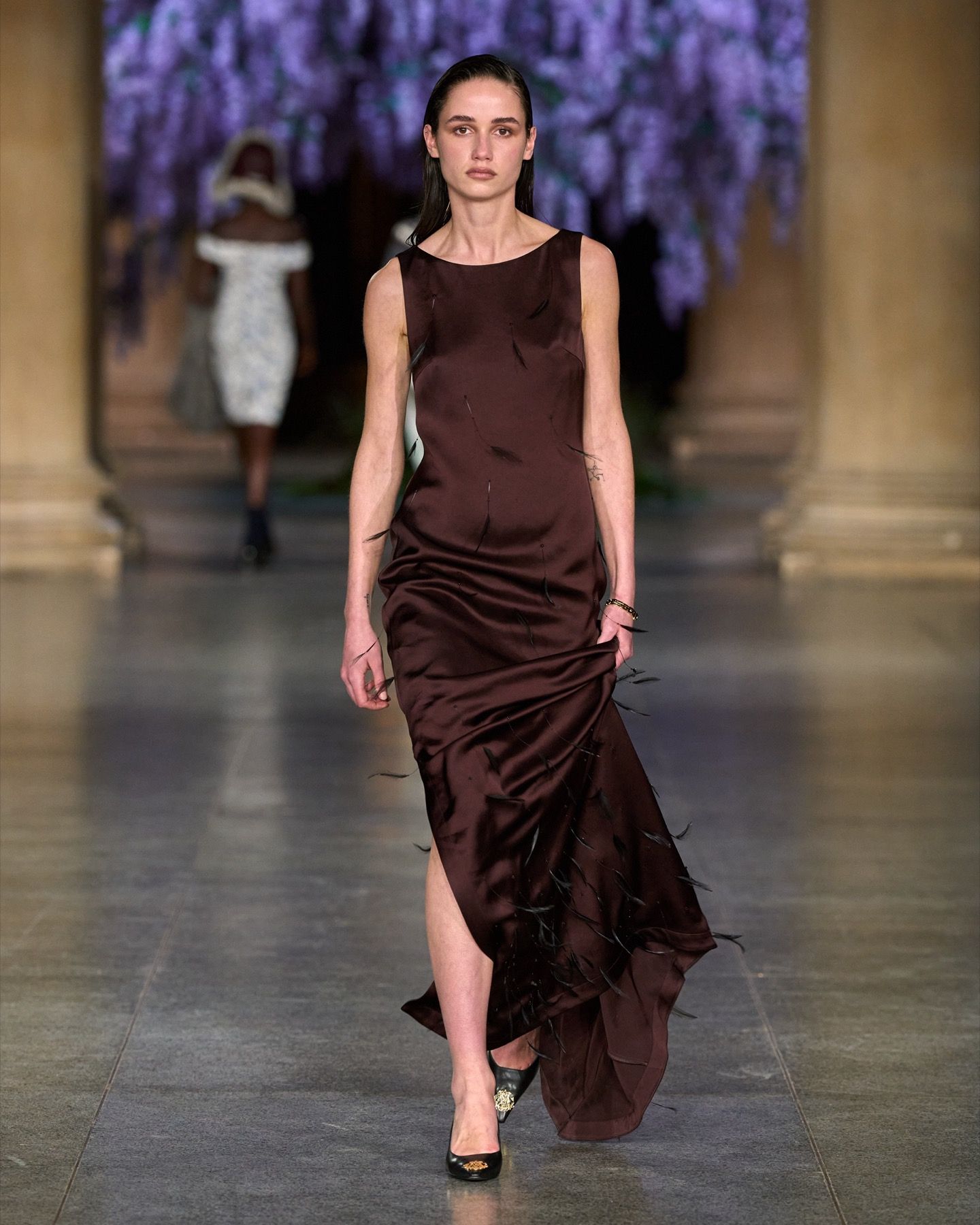 «Being in London for Fashion Week feels like a continuation of a journey», Fletcher explains. The city’s individuality and experimental spirit allow him to explore the language of Mithridate in a confident way, proving how heritage and contemporary influences can coexist as the brand settles into Borough. For Fletcher, the venue carried emotional weight. «Showing at Tate Britain felt like the right place to mark this chapter». Its quiet grandeur mirrored the story he wanted to tell. At the centre of the show space stood a wisteria installation, echoing motifs throughout the collection. «The wisteria symbolised roots taking hold» he says, framing the collection as a metaphor for establishment and growth.