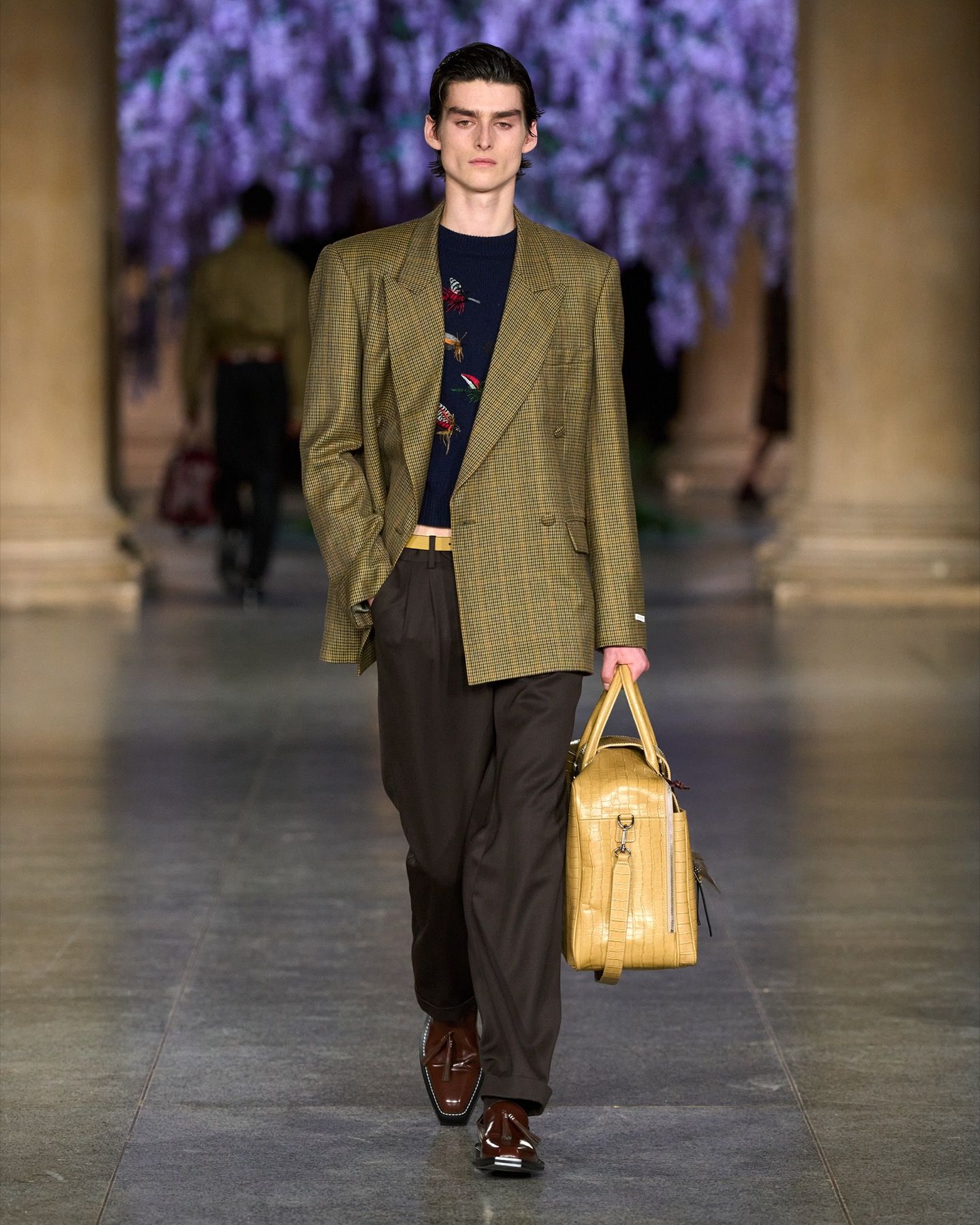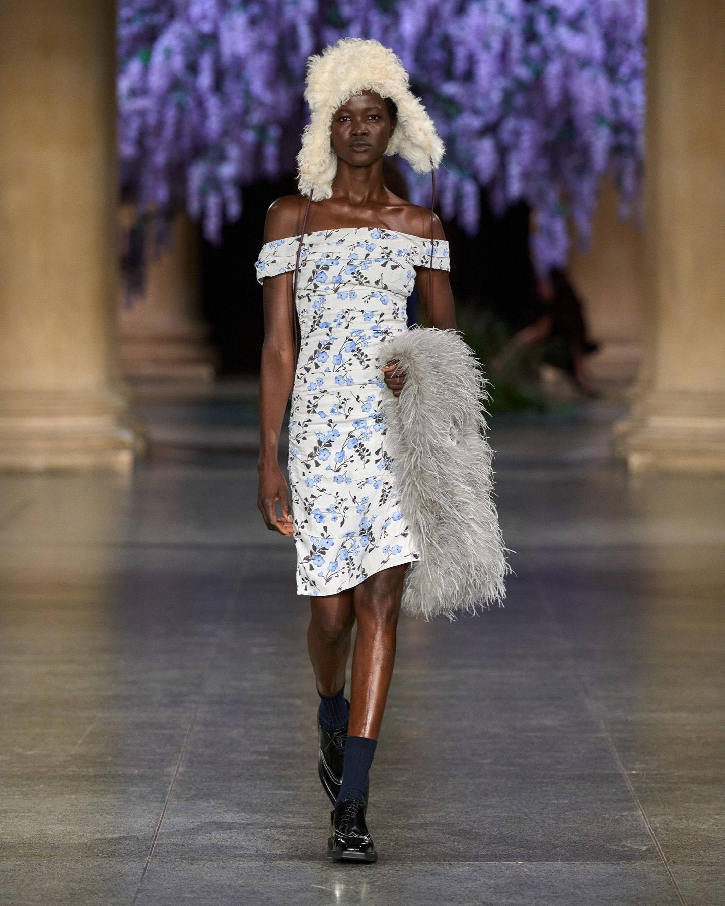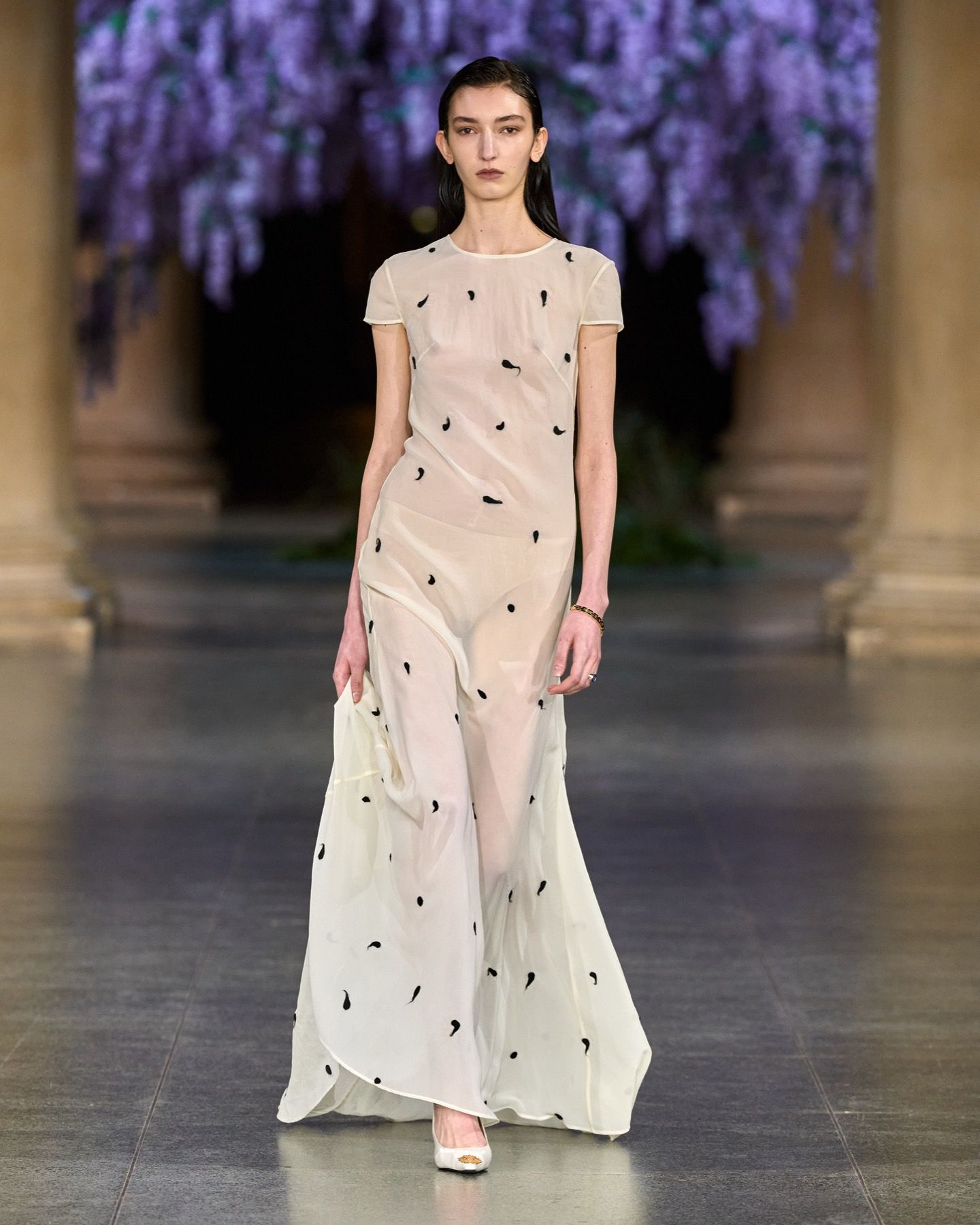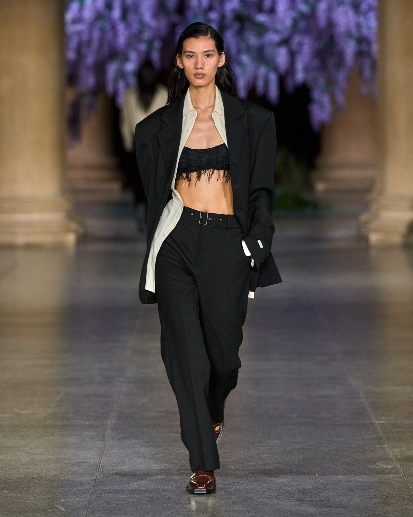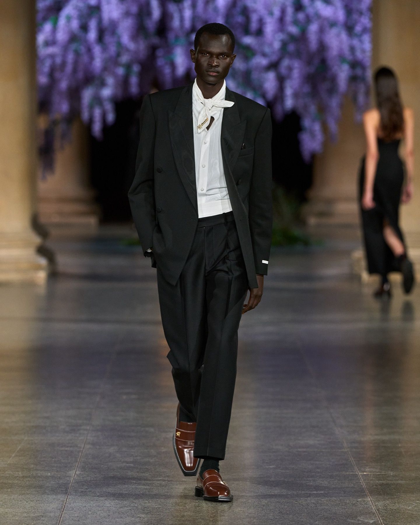 «Being in London for Fashion Week feels like a continuation of a journey», Fletcher explains. The city’s individuality and experimental spirit allow him to explore the language of Mithridate in a confident way, proving how heritage and contemporary influences can coexist as the brand settles into Borough. For Fletcher, the venue carried emotional weight. «Showing at Tate Britain felt like the right place to mark this chapter». Its quiet grandeur mirrored the story he wanted to tell. At the centre of the show space stood a wisteria installation, echoing motifs throughout the collection. «The wisteria symbolised roots taking hold» he says, framing the collection as a metaphor for establishment and growth.