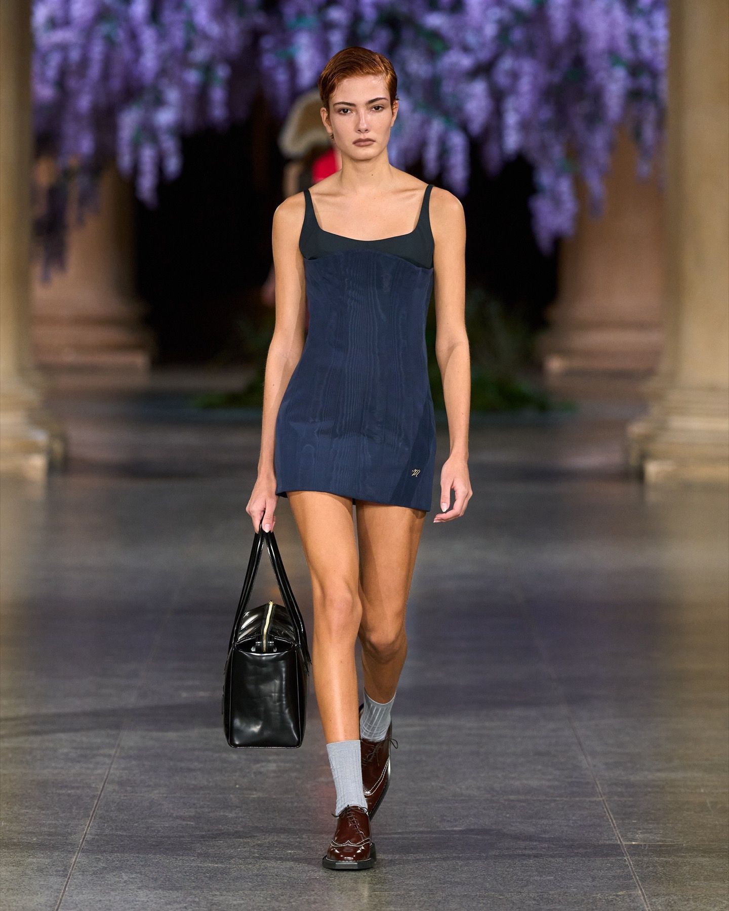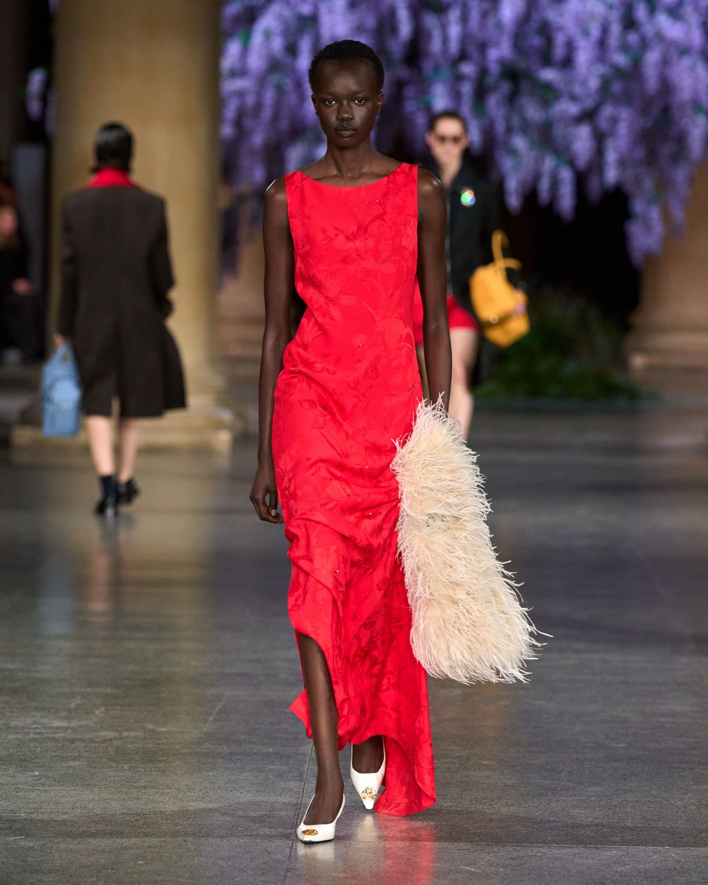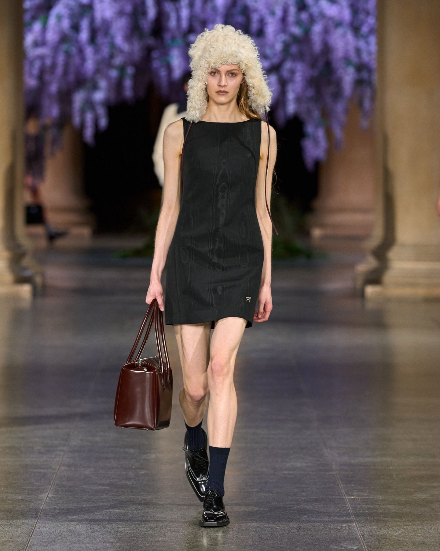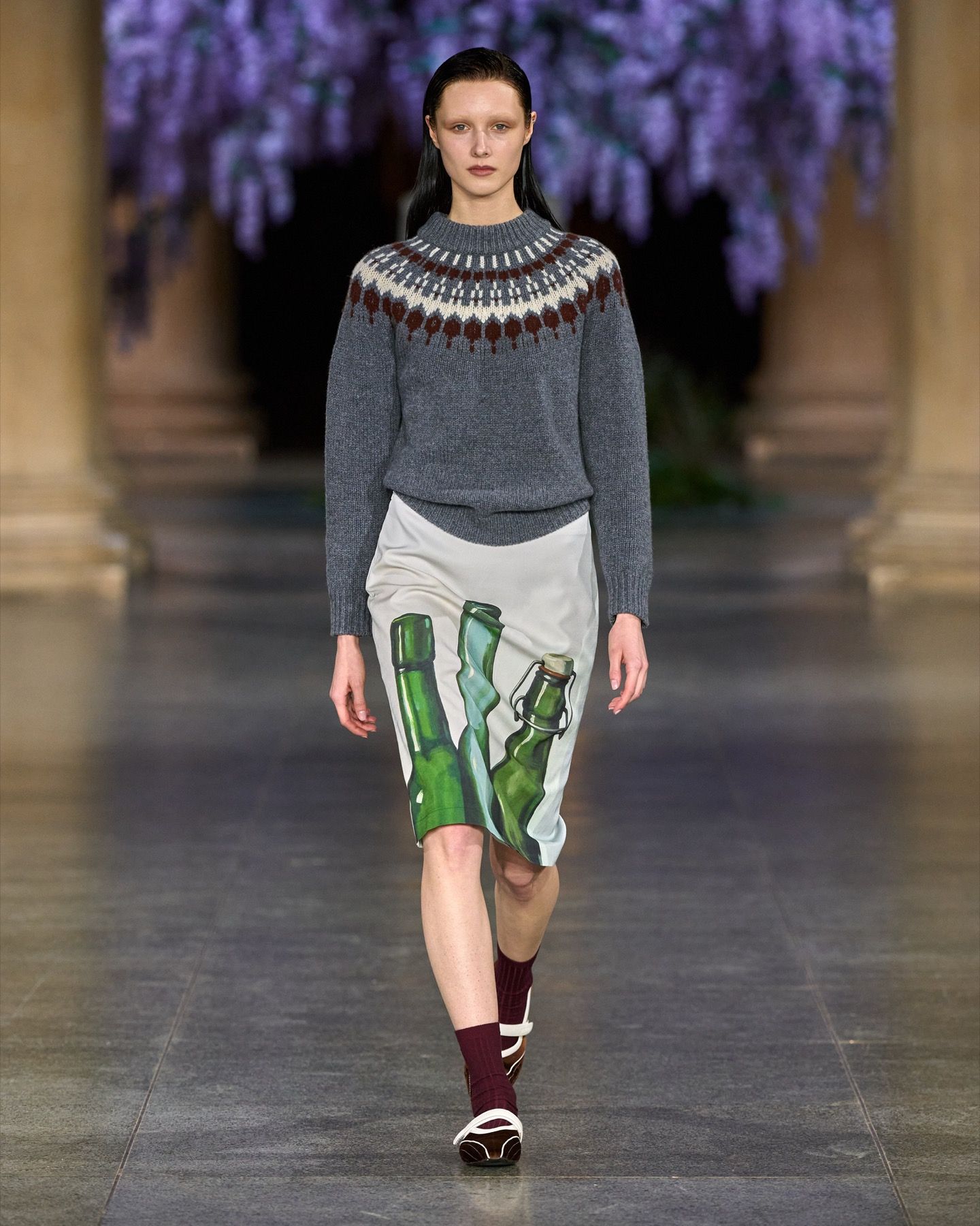 «This collection has been about growth and laying the foundations for something special at Mithridate». Inspired by the Thames, the local markets and the rhythms of Borough, Fletcher revisits house codes through the lens of Savile Row, but in a relaxed, undone way. British tailoring meets layered knitwear, broad shouldered tweed coats sit over sharp suiting, and eveningwear is deconstructed into mini two piece dresses worn under duffle coats. «I wanted to create a balance between structure and ease», Fletcher notes. Knitwear and appliqué add texture, hand beading introduces movement, and the silhouettes reflect a personal approach that also «resonates with how the industry is embracing individuality and hybrid influences».