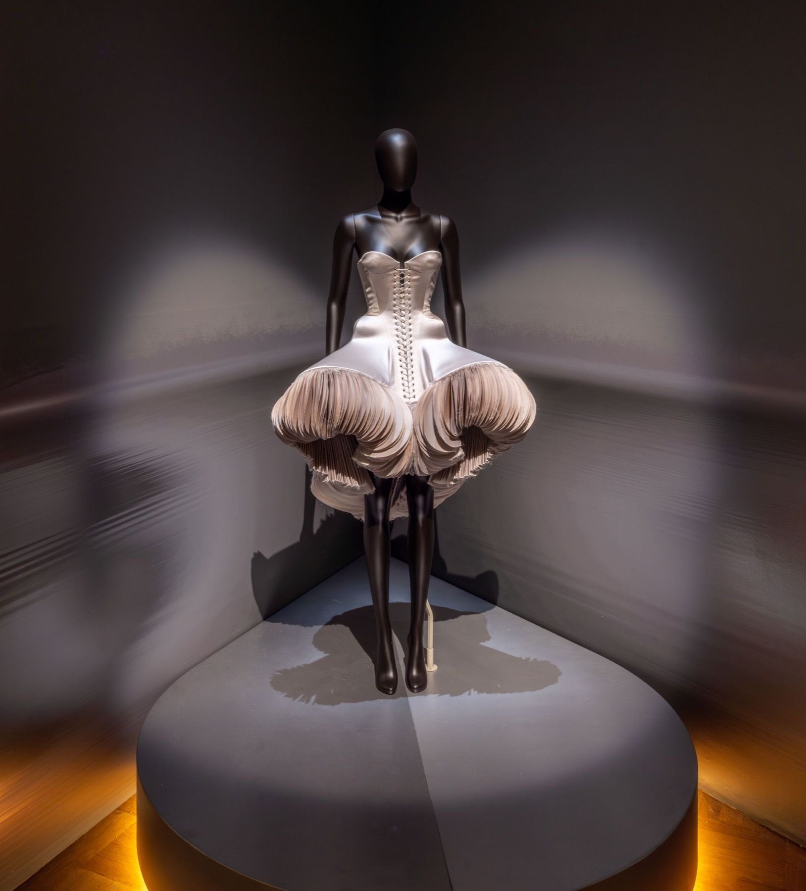 Among the most important pieces are the Skeleton Dress from 1938, the only example in the world (part of the V&A’s permanent collection), and the Tears Dress from the same year, together with the iconic upside-down shoe hat, all created in collaboration with Salvador Dalí. Works by Pablo Picasso, Jean Cocteau, Man Ray and Eileen Agar will also be on display, alongside several costumes designed by Schiaparelli for cinema and theatre. Closing the exhibition are the spectacular creations of Daniel Roseberry, worn by stars such as Ariana Grande and Dua Lipa.