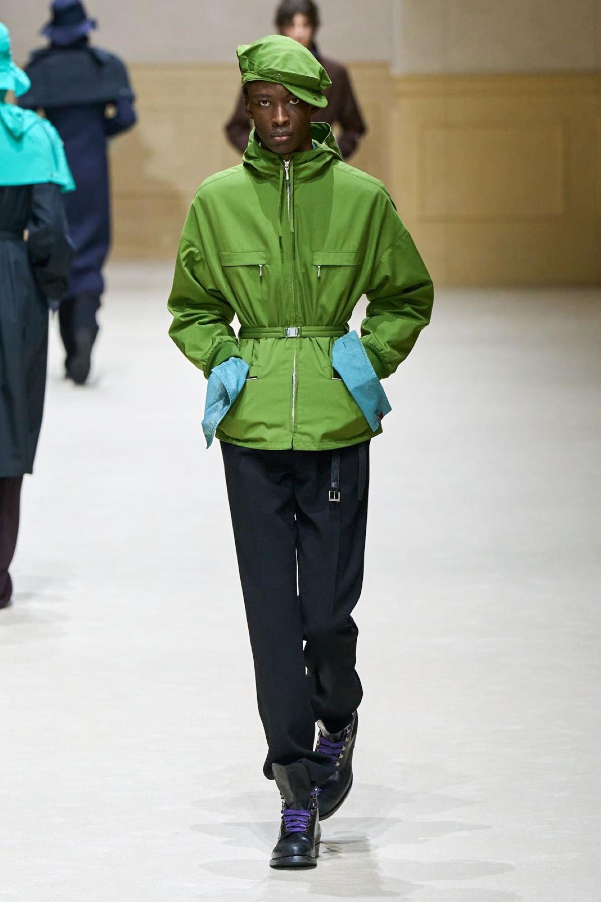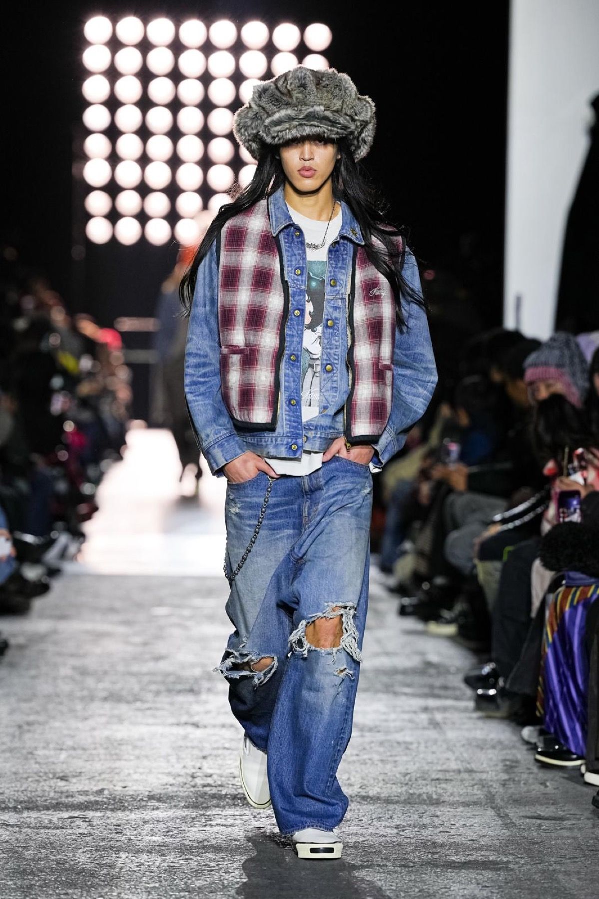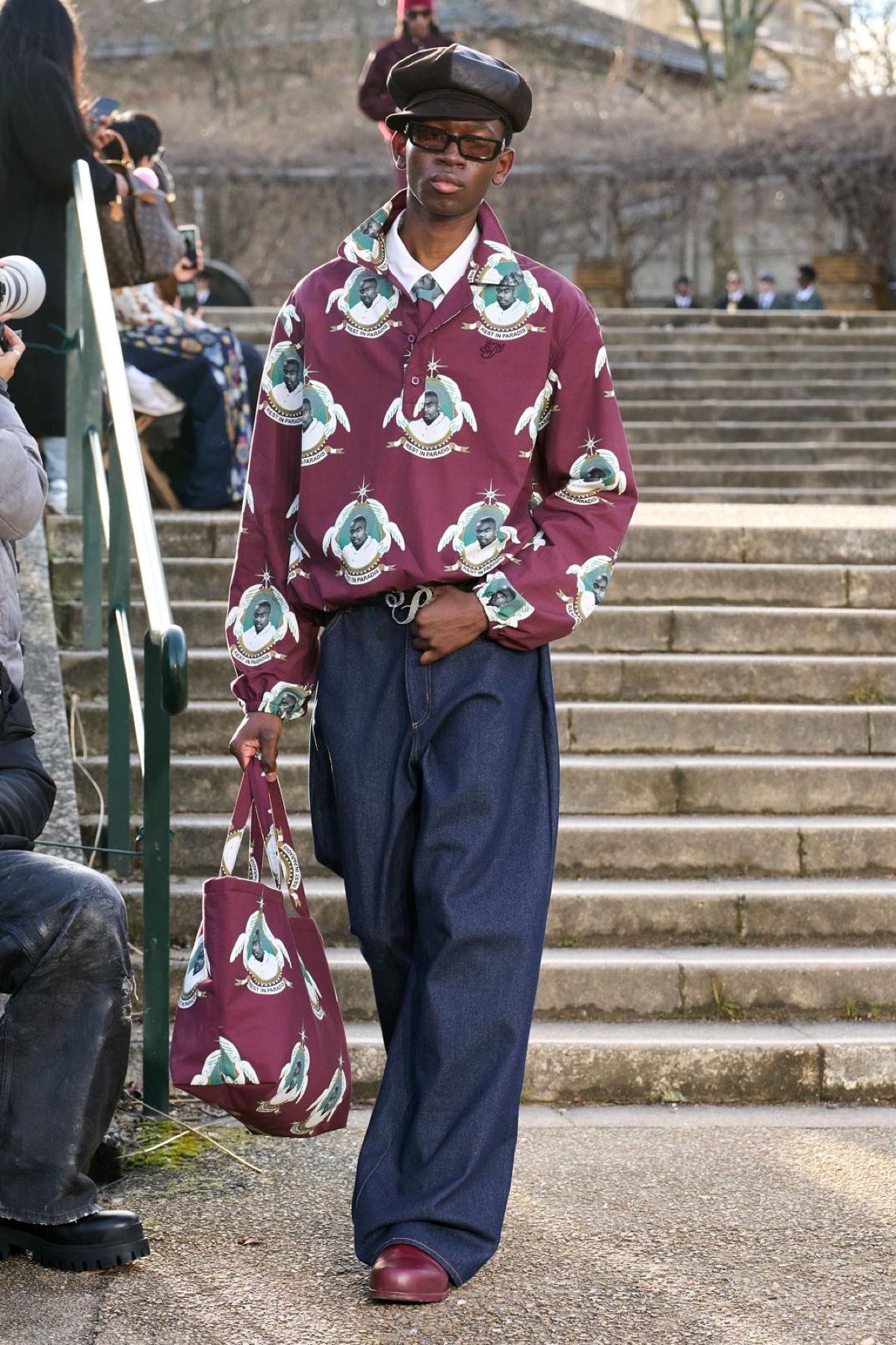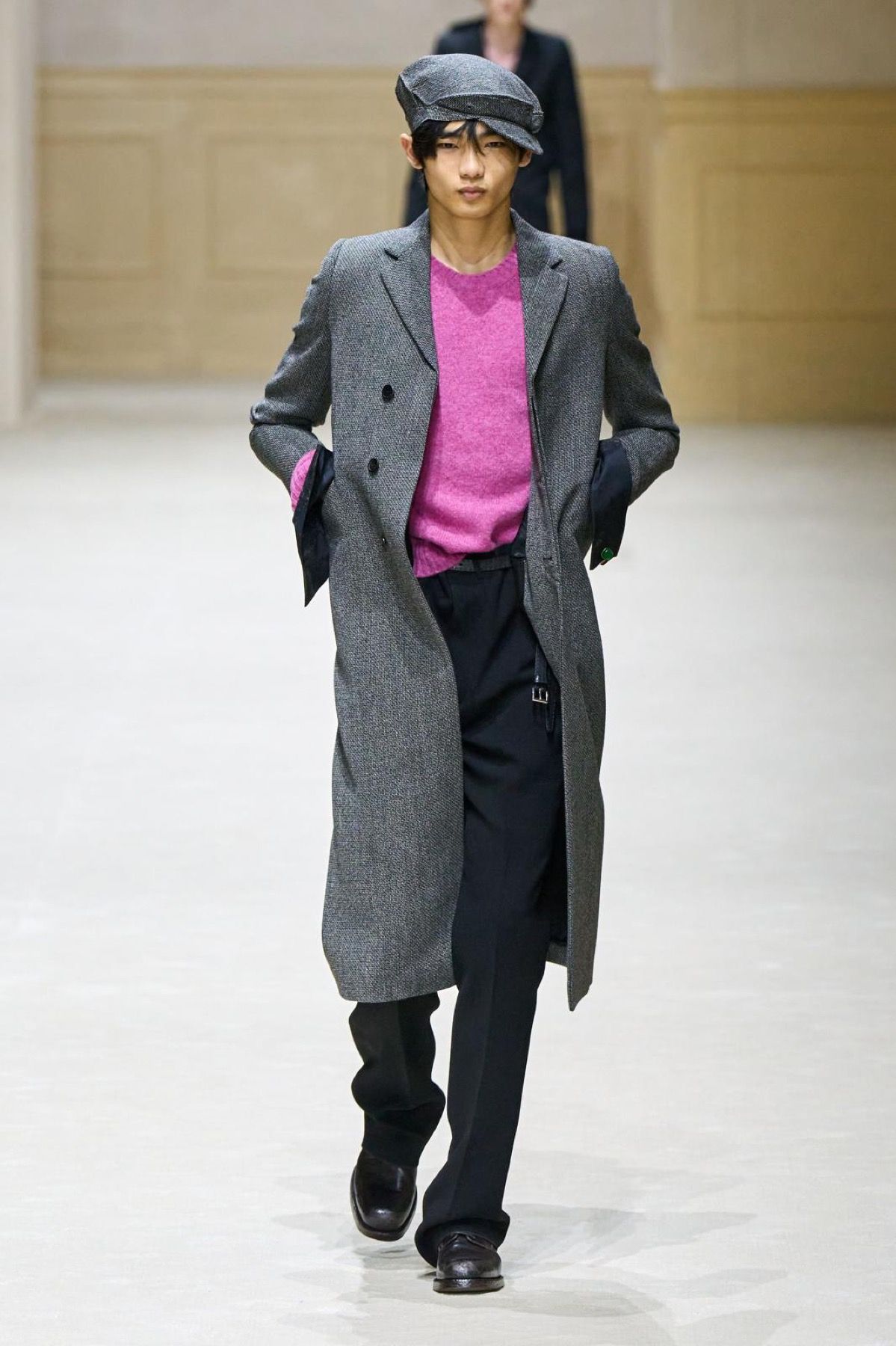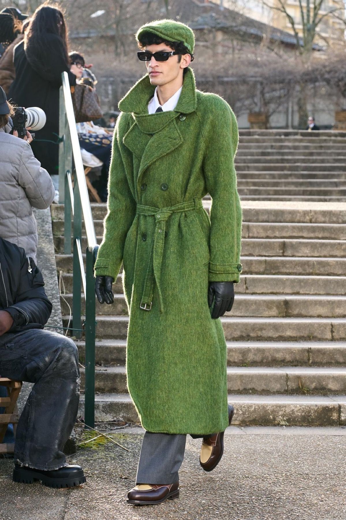 While at Ralph Lauren the flat cap returns in full old money style with explicit references to John-John America looks, MSGM proposes a tweed version that nods to bouclé caps worn by Anne Hathaway in The Devil Wears Prada and to the evil gay stylist trend of the 2000s revived by creator Samuel Lejon. Zadig & Voltaire and Public School instead presented a hybrid between a flat cap and a beret, while Officine Générale makes the piece more sophisticated, pairing it with duffle coats and Prince of Wales patterns.