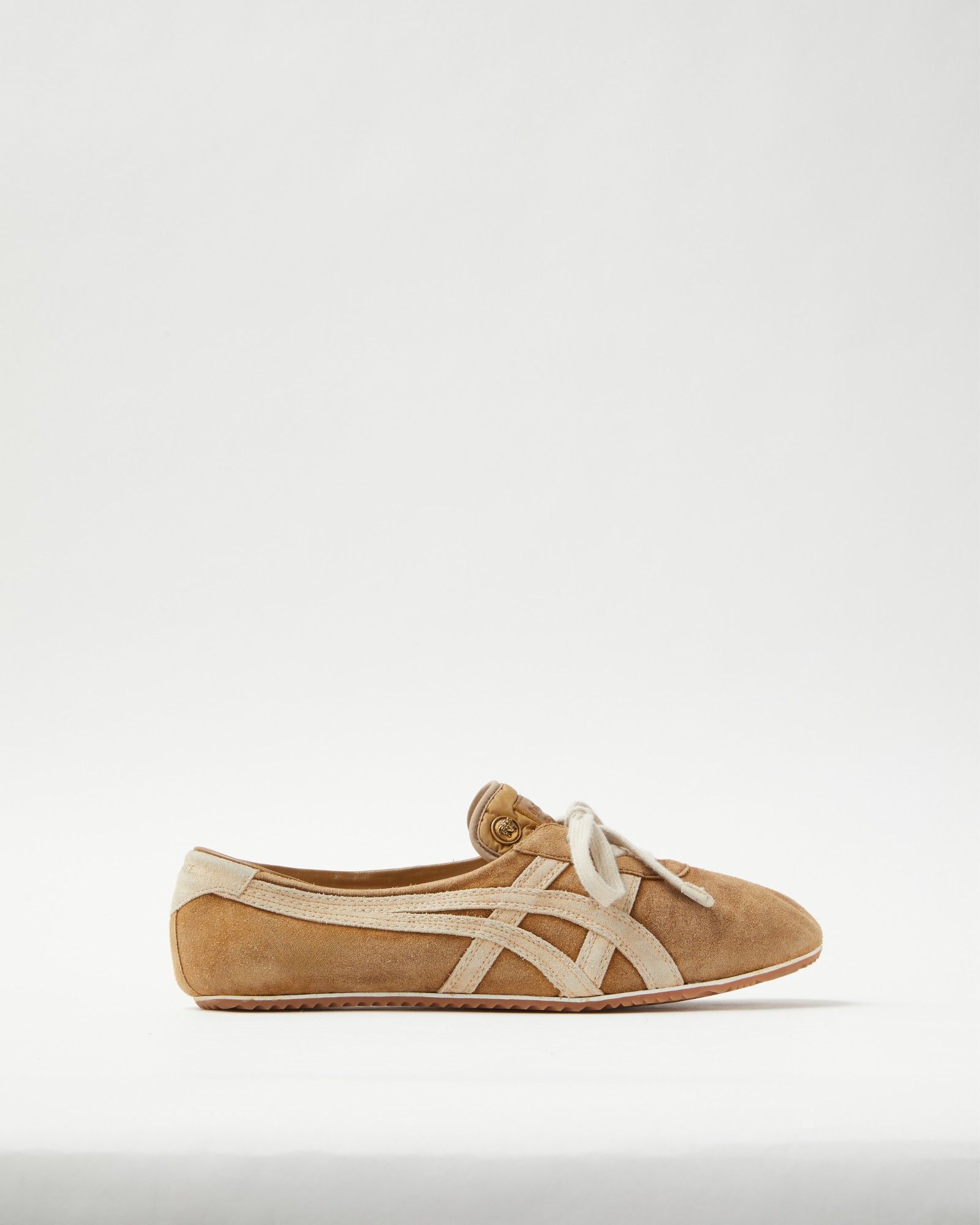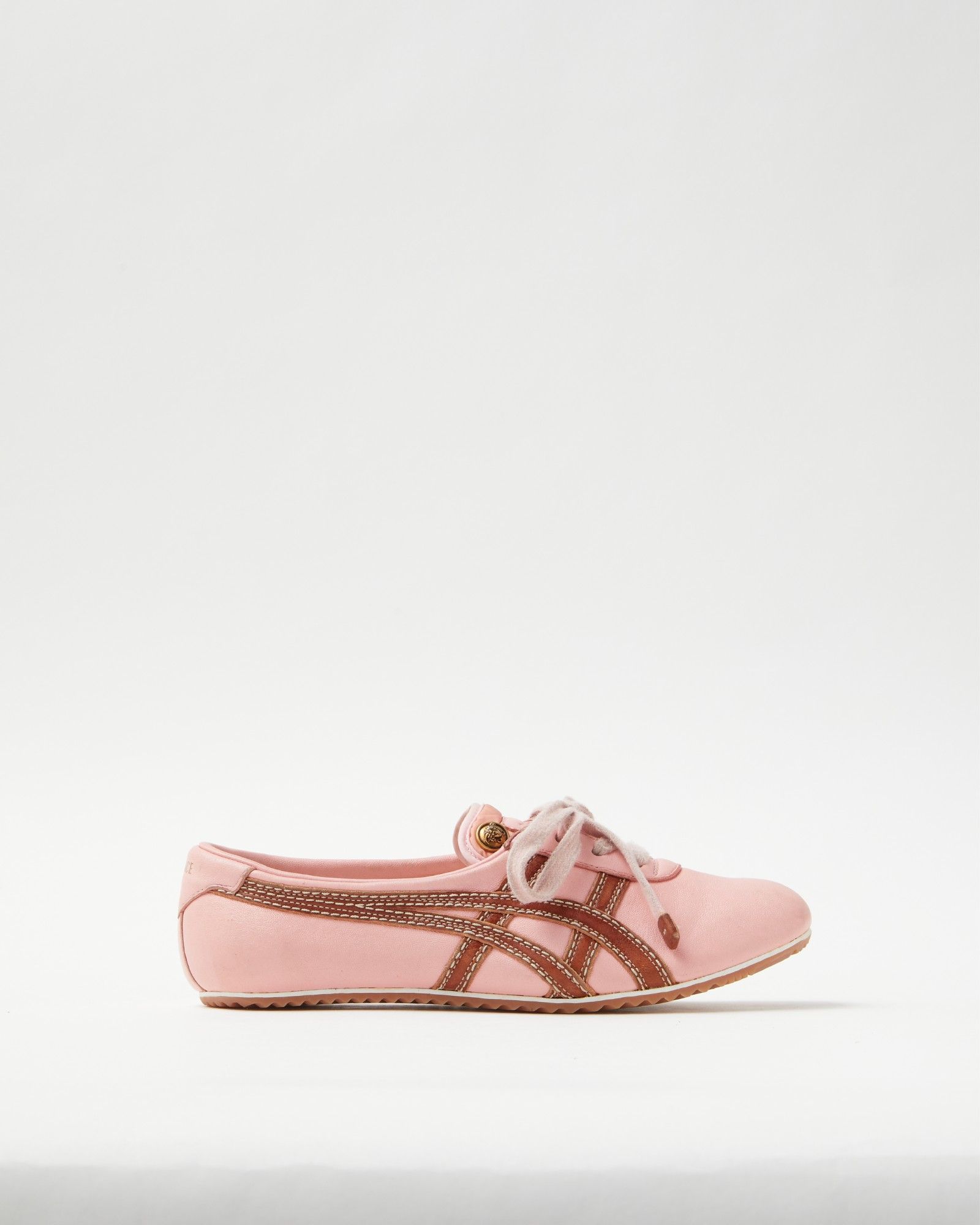 The main model is the TAI-CHI Sakura, a reinterpretation of the classic tai-chi trainers from the Japanese brand. Produced at Onitsuka Tiger’s factory in Sanin, in Tottori Prefecture, the sneaker is born from the union of the meticulous precision typical of Japan and Versace’s bold sense of color and style. The upper has been treated with washing and buffing processes that give it a soft, lived-in vintage effect, as if the shoe already carries its own story.