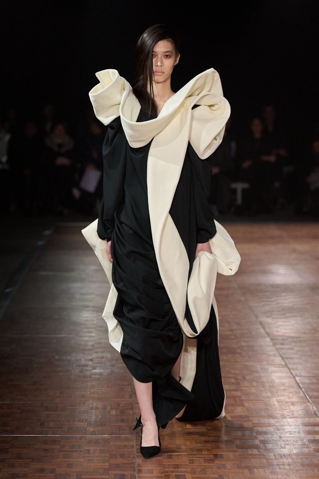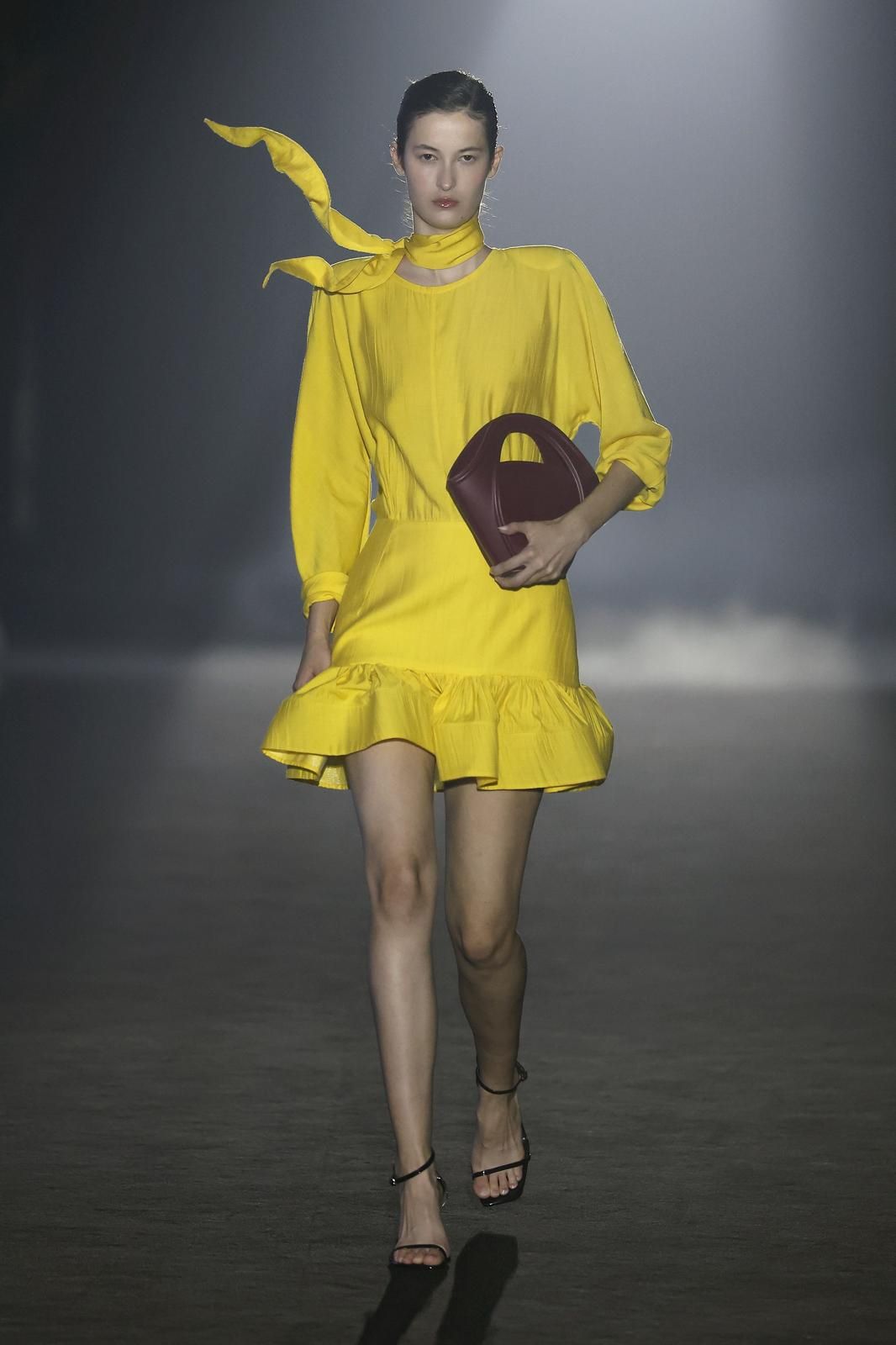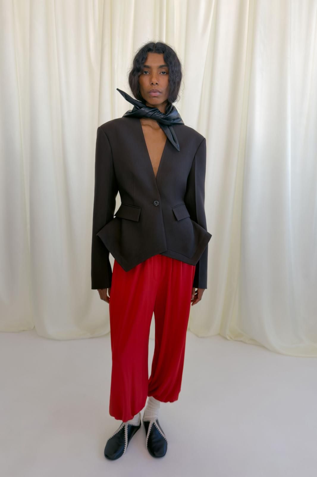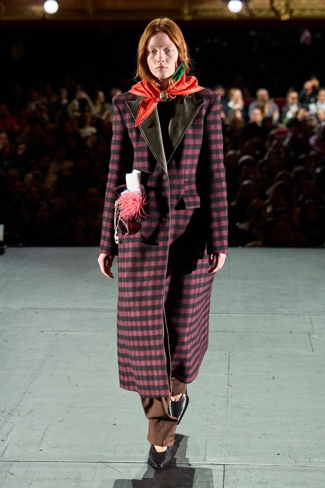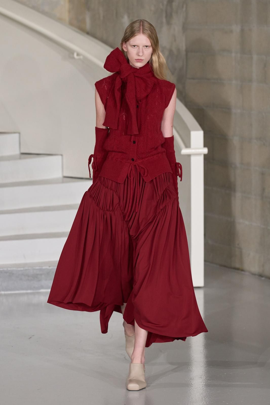 Nicolas Ghesquière also adopts a similar trick at Louis Vuitton, incorporating shawls of the same fabric into his jackets, while Magliano chooses a more poetic and disheveled path: his crumpled scarves emerge from side slits in duffle coats, as if they wanted to escape control and hide rebelliously inside the outerwear. Uniting mimicry and architectural transformation of the piece is the New York brand Area: here some garments are entirely made of scarves that frame the body while defying gravity.