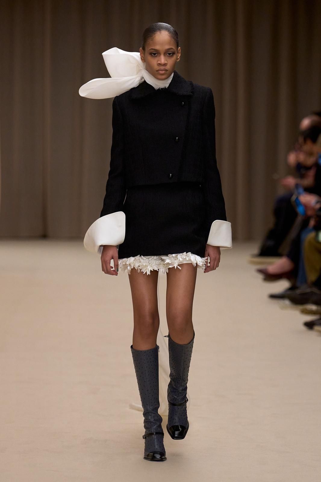 Among the undisputed protagonists of the latest runways stands out the bow scarf. Brands like Alain Paul and McQueen choose to preserve the bon ton soul of the scarf, while transfiguring it: in the first case, the accessory is born from a soft coquette-style pullover; for McQueen, instead, Seán McGirr creates architectural knots that seem to reference both the foulards knotted on the side by the cursed poets of the Romantic period and Victorian lavallière ties. For Gabriela Hearst and Toteme, on the other hand, the scarf is the pivot of metropolitan minimalism: worked in dense textures such as leather and velvet, it is worn high and enveloping around the neck, creating a sculptural focal point on monochromatic bases.