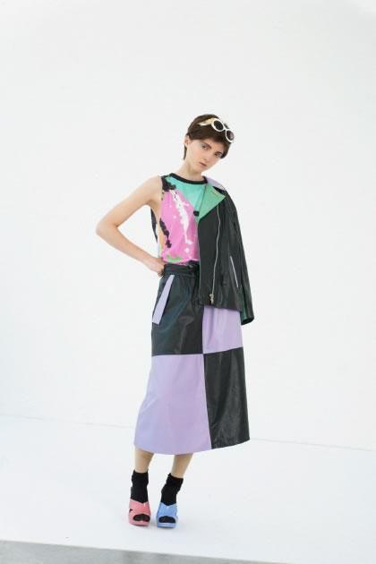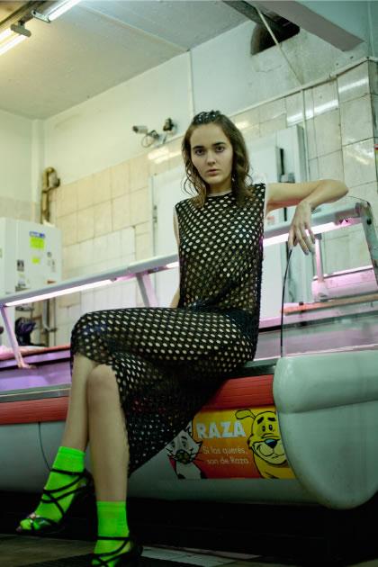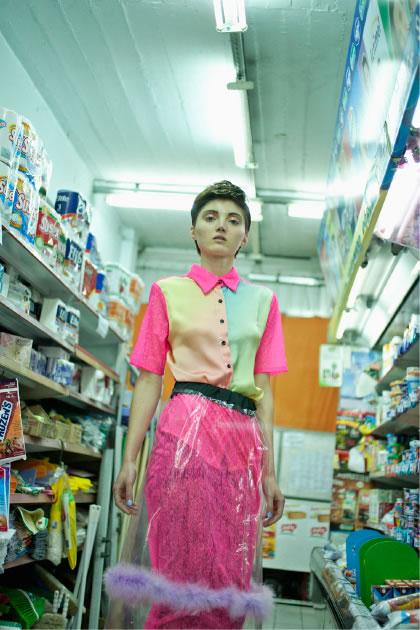 Vanesa Krongold, a girl from Argentina born in 1988, loves all the visual arts, especially photography applied to fabrics’ prints. For the designer it’s important capturing present times through images , for this reason in her creations prints are a key role. Also in Supermercado, spring-summer collection, there are holographic patterns combined with bright fluo colors, fuchsia, green, sky blue. It’s a young, street, urban, boisterous fashion. It’s a perfect mix of skirts, shirts, tops and dresses, mesh fabrics and other slipped. The inspiration is a little bit techno, a little bit 90s, in the balance between modernity and the recent past.