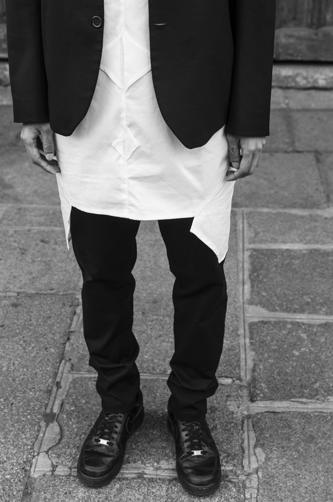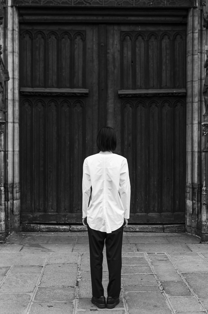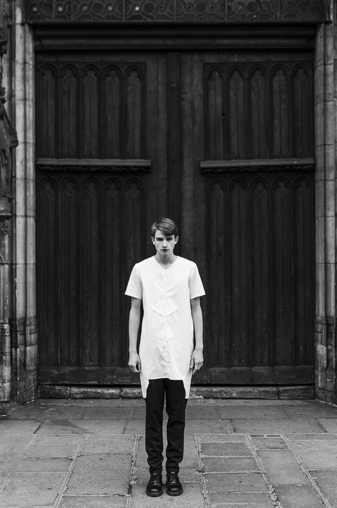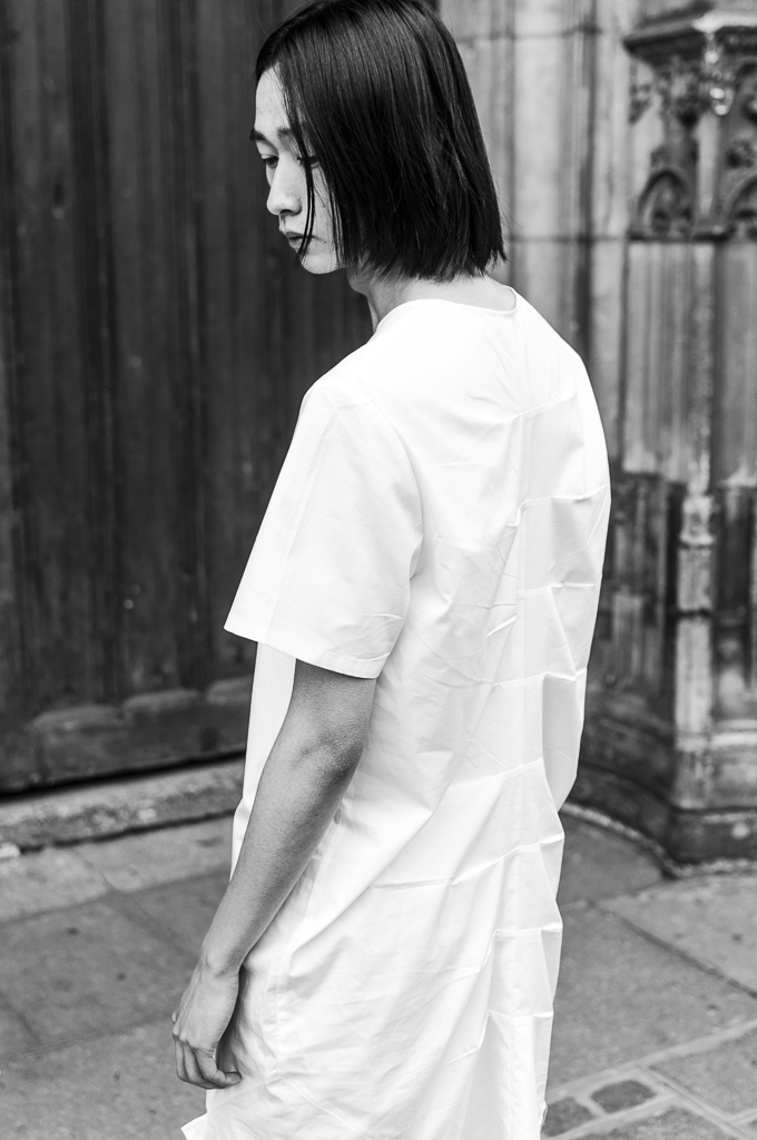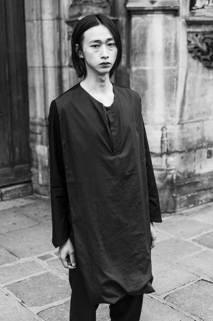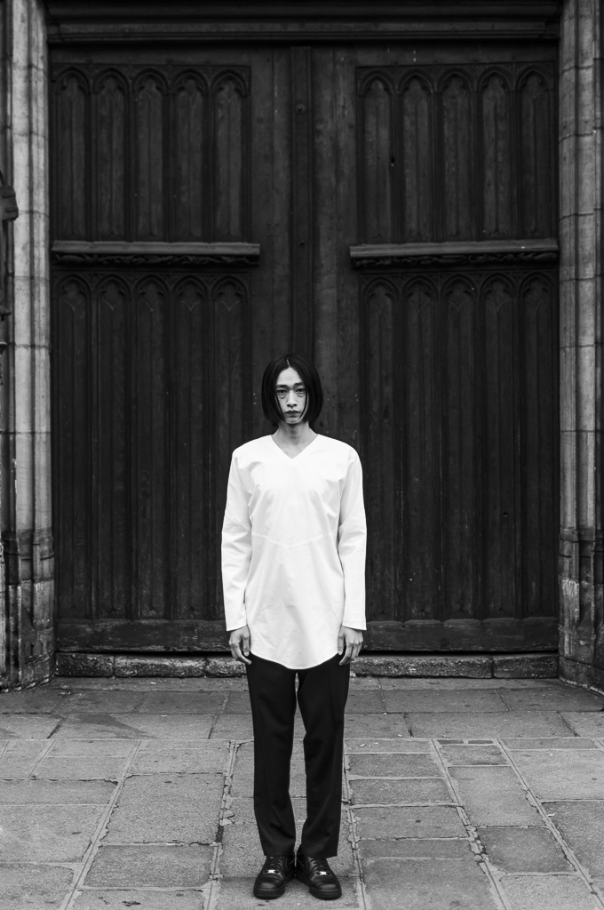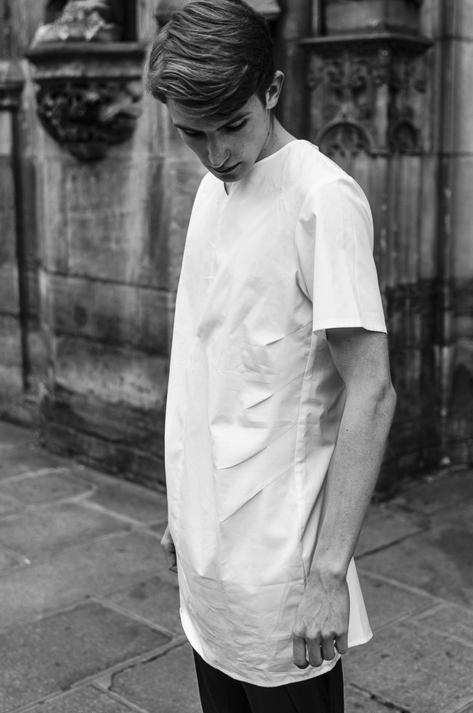 For the Spring Summer 2014, the melancholic pureness of Christian priests, combined with the dark lightness of their Cathedrals, give the base for all the ROOM I Collection the line and the curve defined by the architecture are perfectly transcribed into the cotton pieces whose materials are based on this subtlety. Whilst remaining very comfortable each piece of the collection gives a visual presence. The polyvalent aspect of SAD WALLI is still very present in the choice of materials, with their shape memory which gives each individual wearer a personal view of the collection.